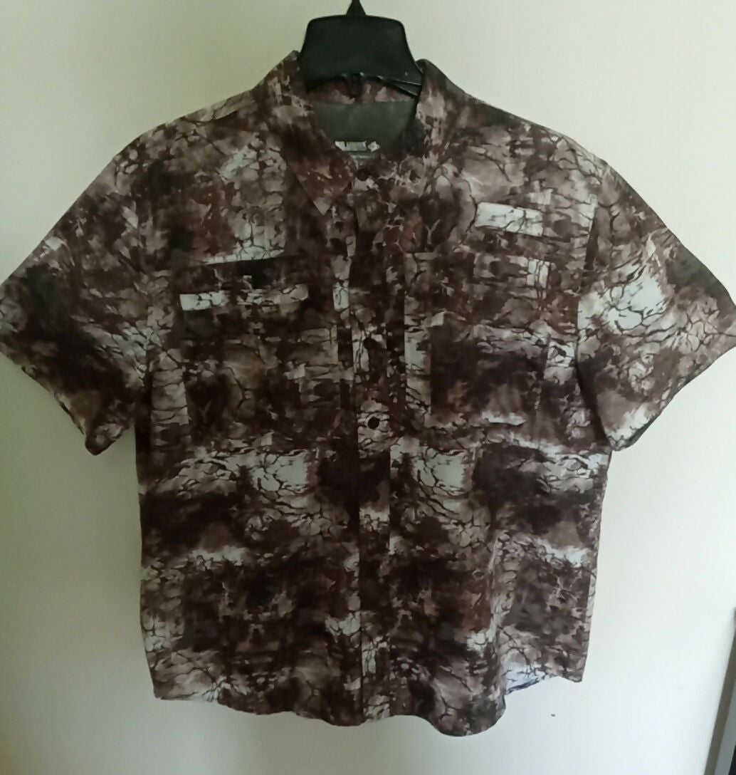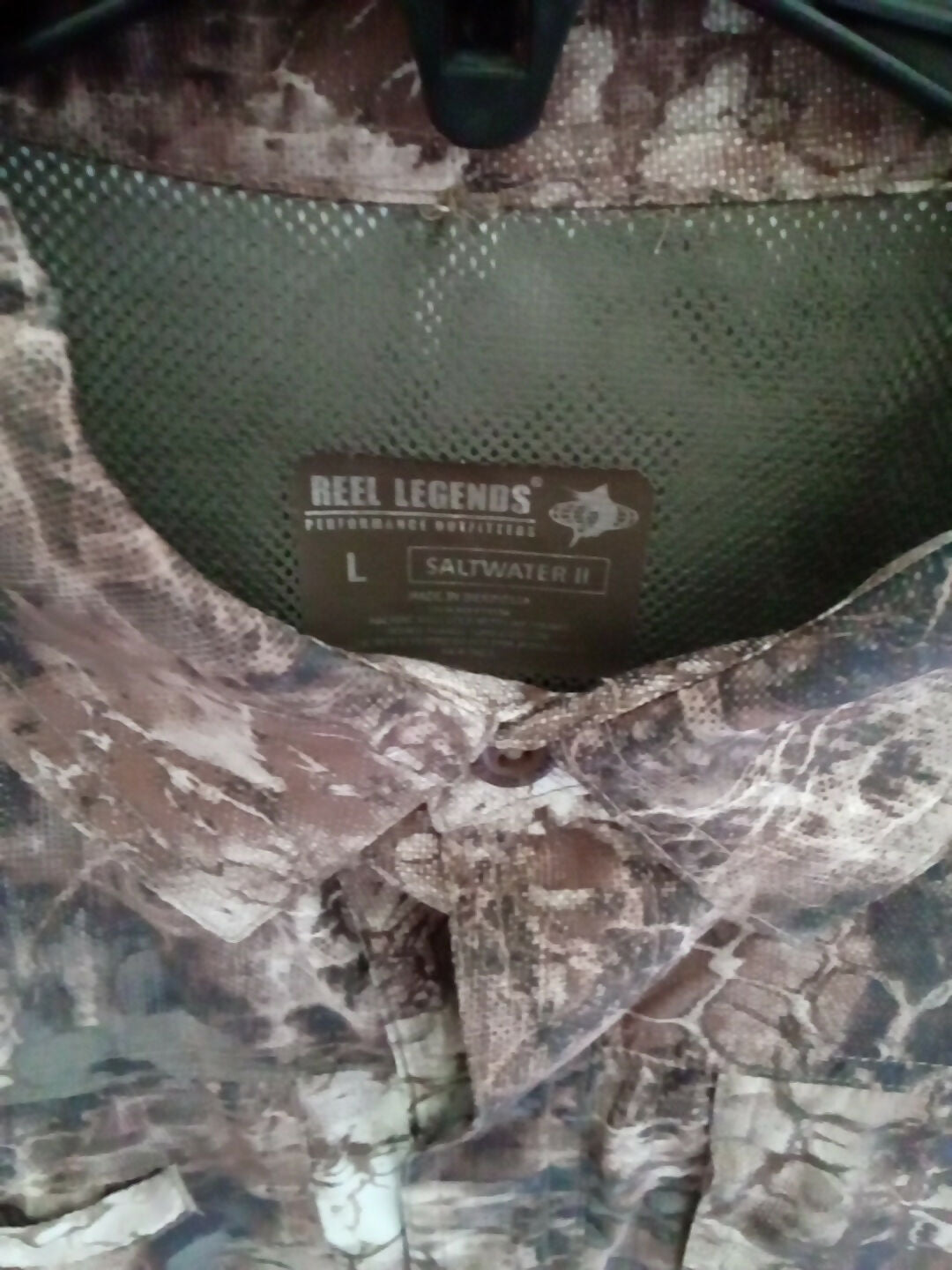 Pre-owned Mens REEL Legends Saltwater II fishing shirt. Size Large, runs true to size. Great breatheability and is very comfortable polyester material.