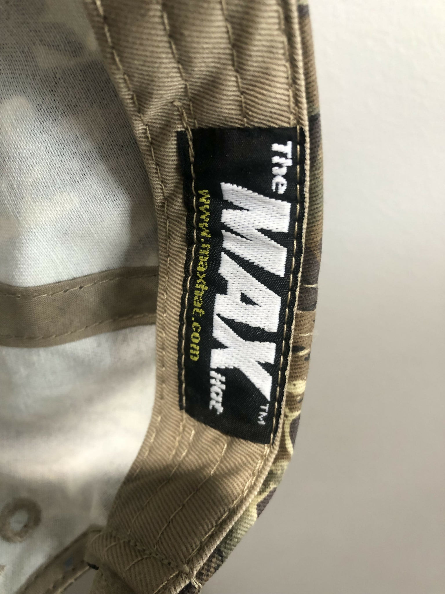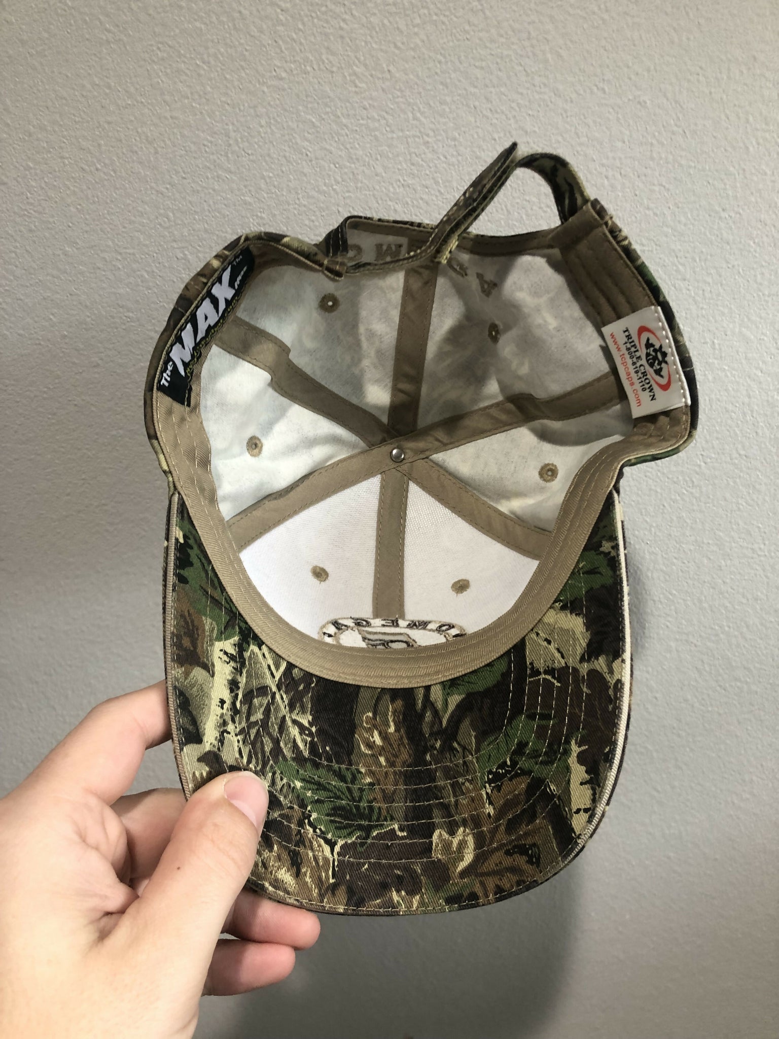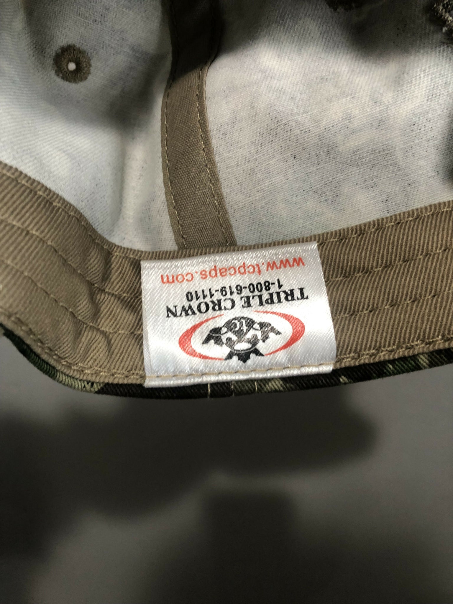 Velcro strap back. Logo on front and stitching on strap on back. The Max and Tripple Crown tags on interior.