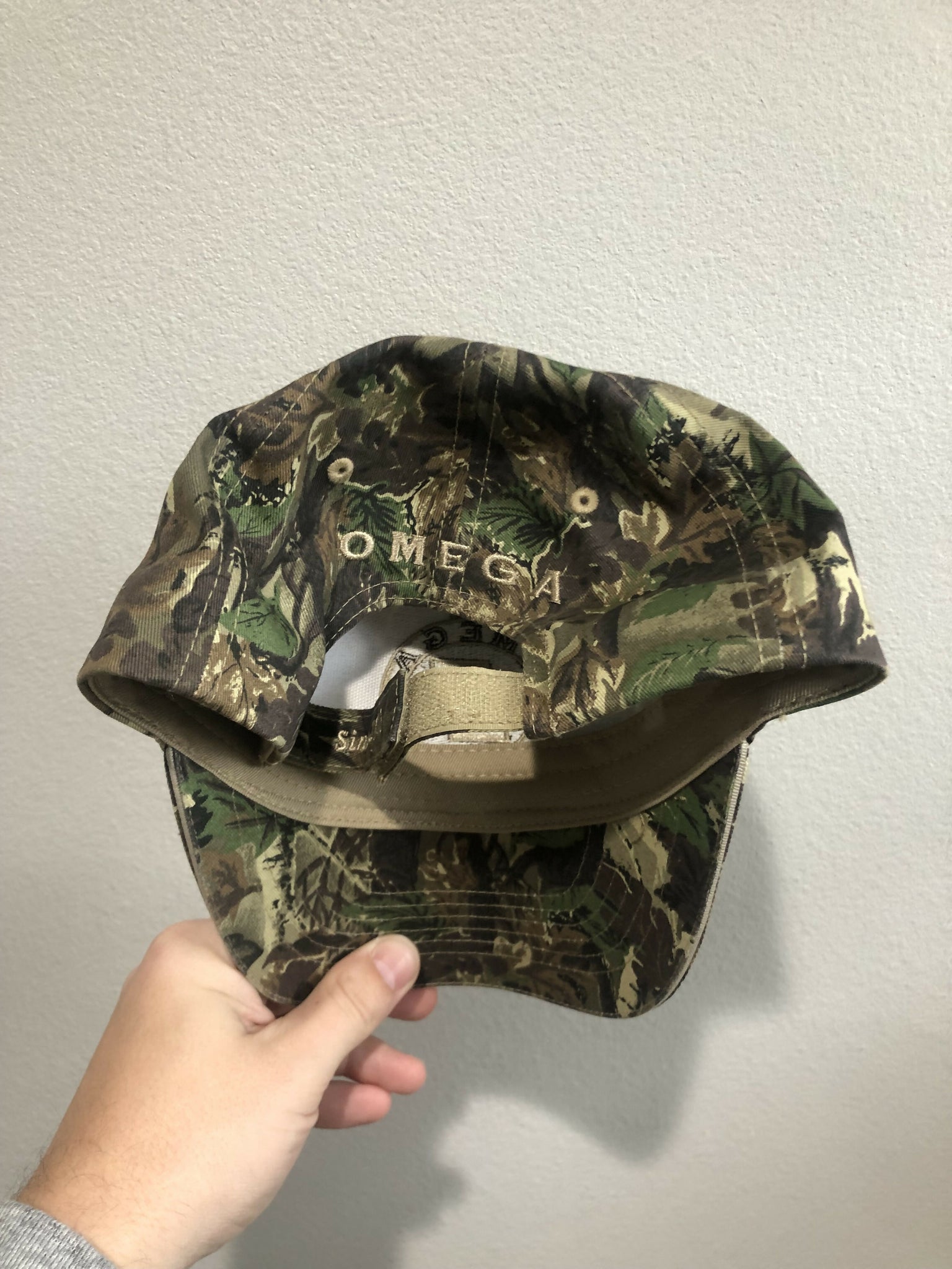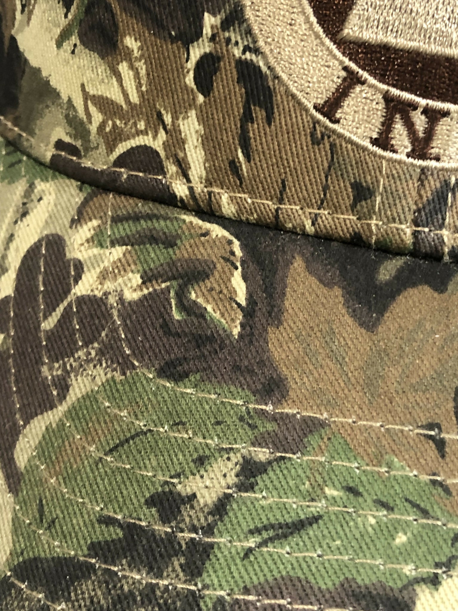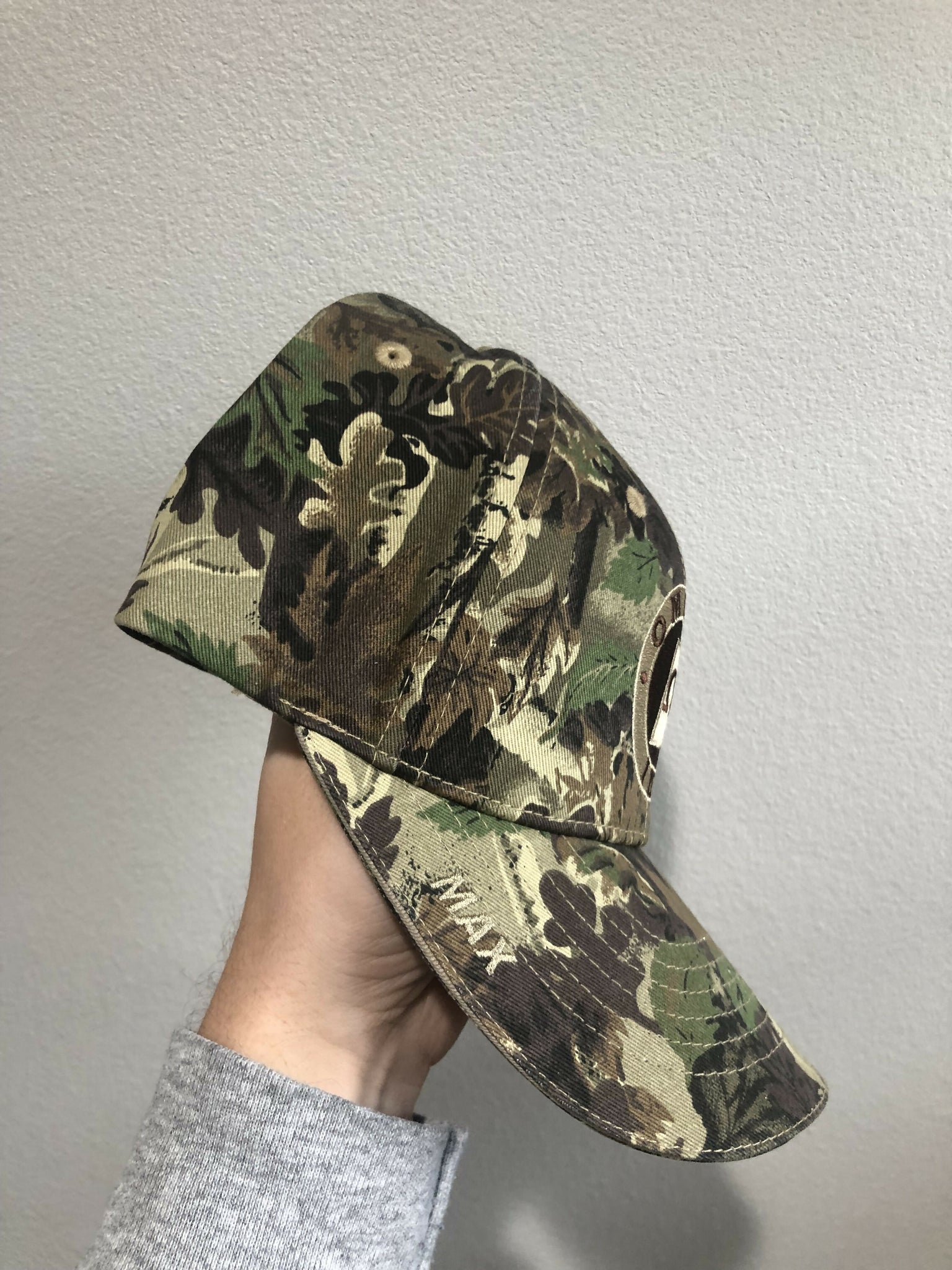 Velcro strap back. Logo on front and stitching on strap on back. The Max and Tripple Crown tags on interior.
