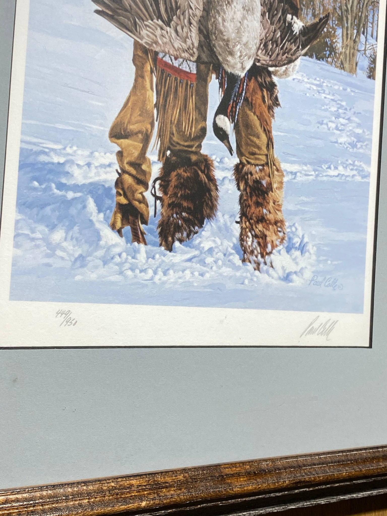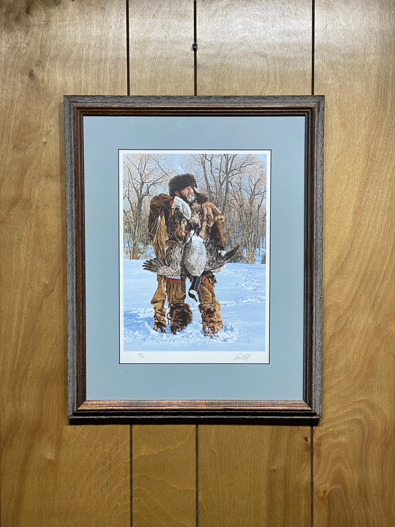 1992 Paul Calle Hunter of Geese Signed #449/950 Framed Print (15.25”x19.25”)