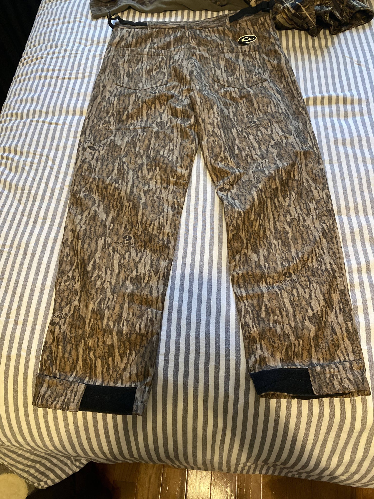 Drake MST pants in mossy oak bottomland. Waterproof and wind proof. Never worn