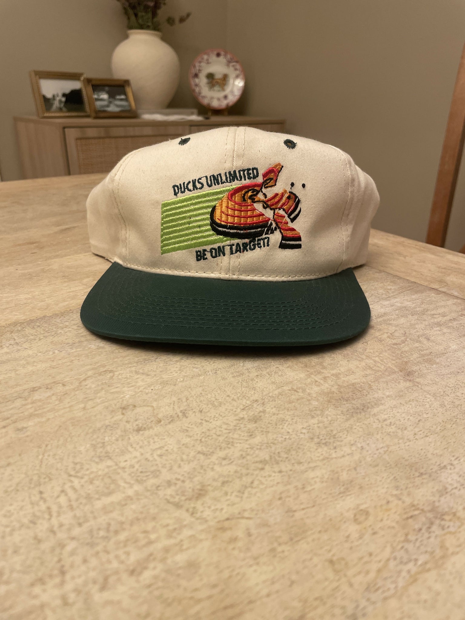Green/White vintage DU “BE ON TARGET!” clays Snap back. Looks like it has never been worn.