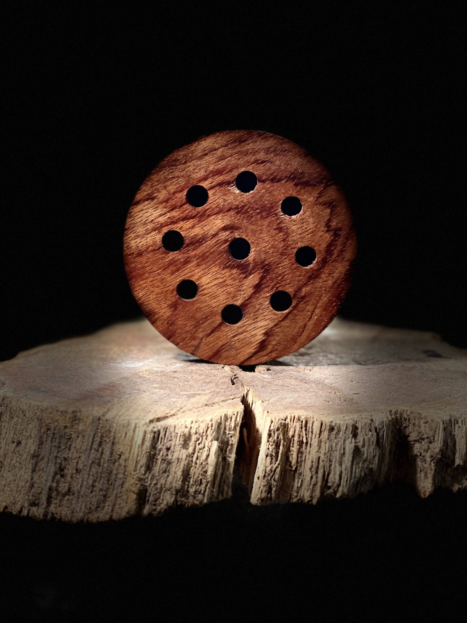 Bocote pot with crystal striking surface over slate sound board.