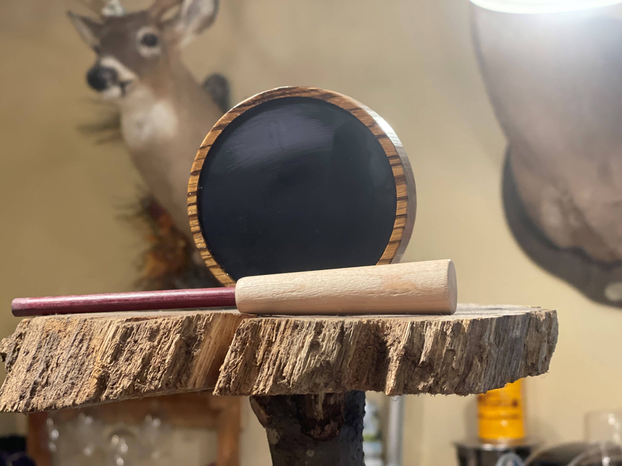 Zebra wood pot with a black anodized aluminum over slate striking surface.