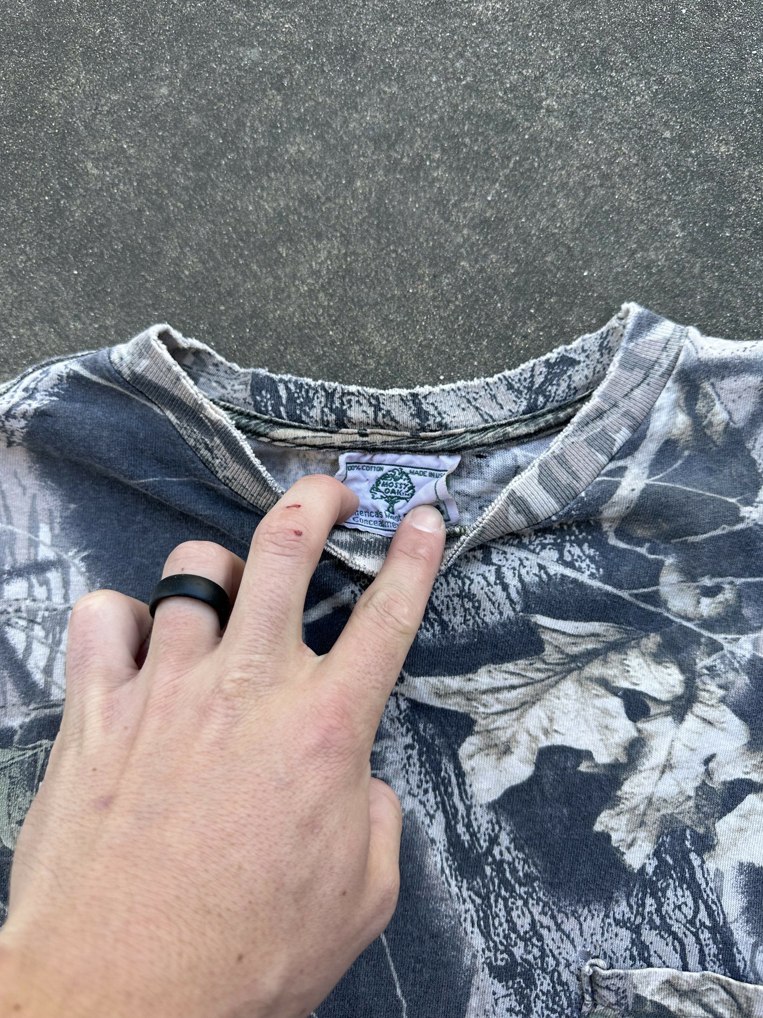 Vintage Distressed Mossy Oak Breakup Camo T-Shirt (L)
