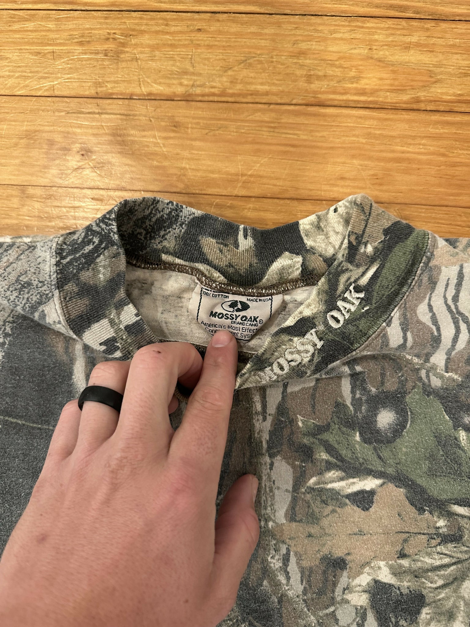 Vintage Mossy Oak Breakup Camo Mock Neck Shirt (L/XL)