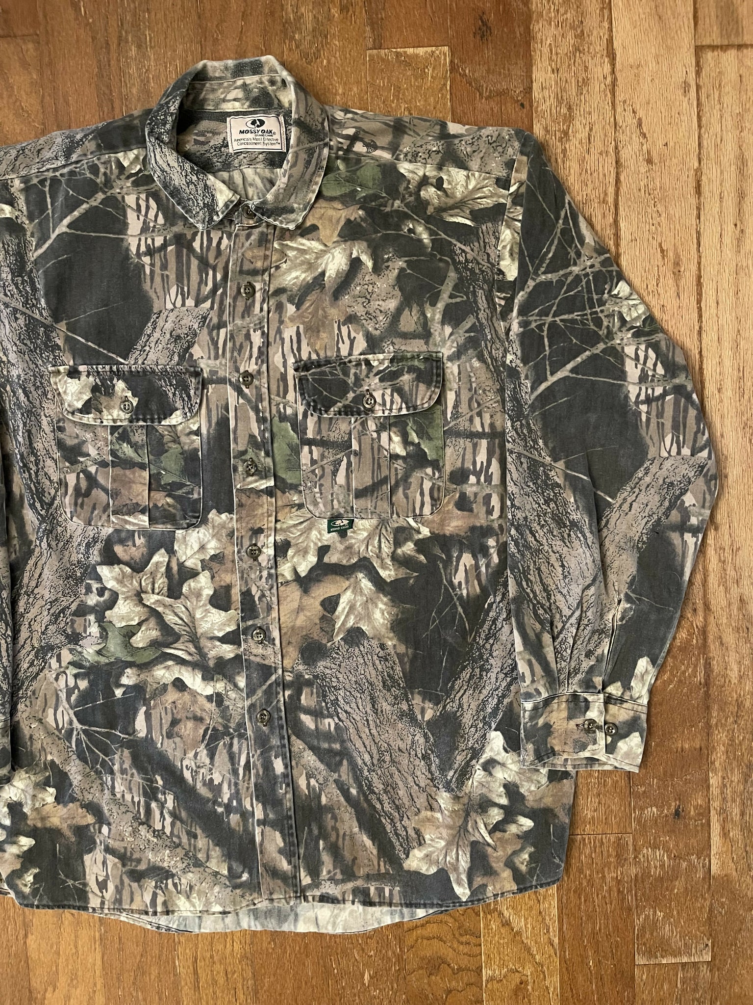Vintage Mossy Oak Gen 1 Breakup Camo Button-Up (XL/2XL)