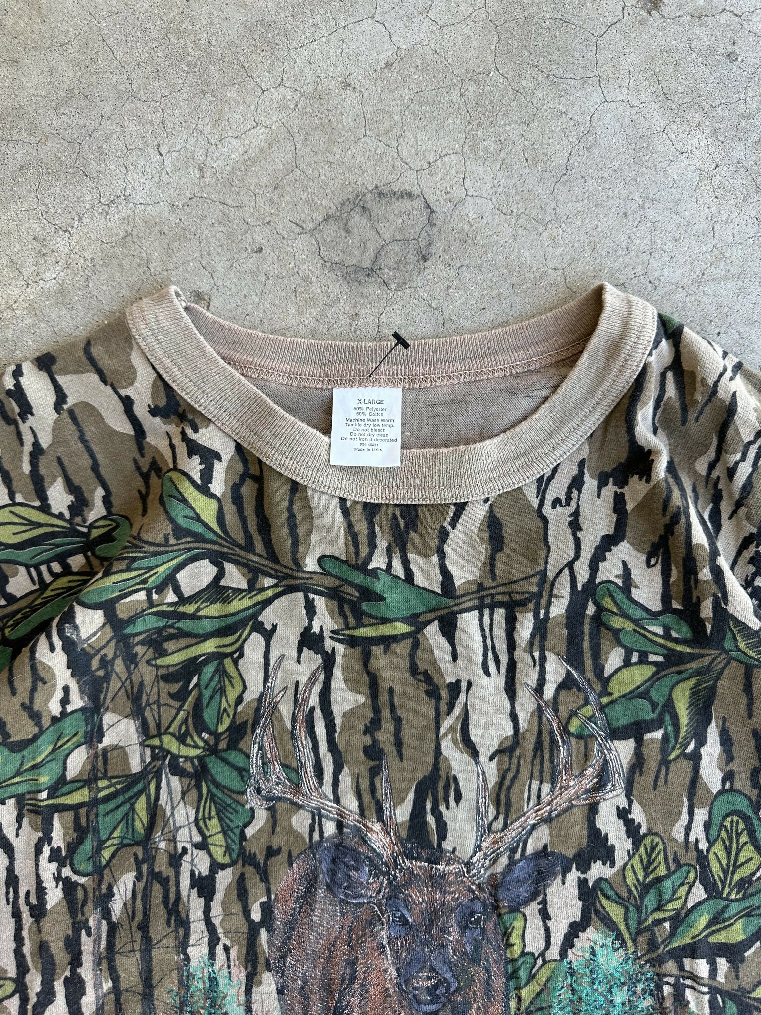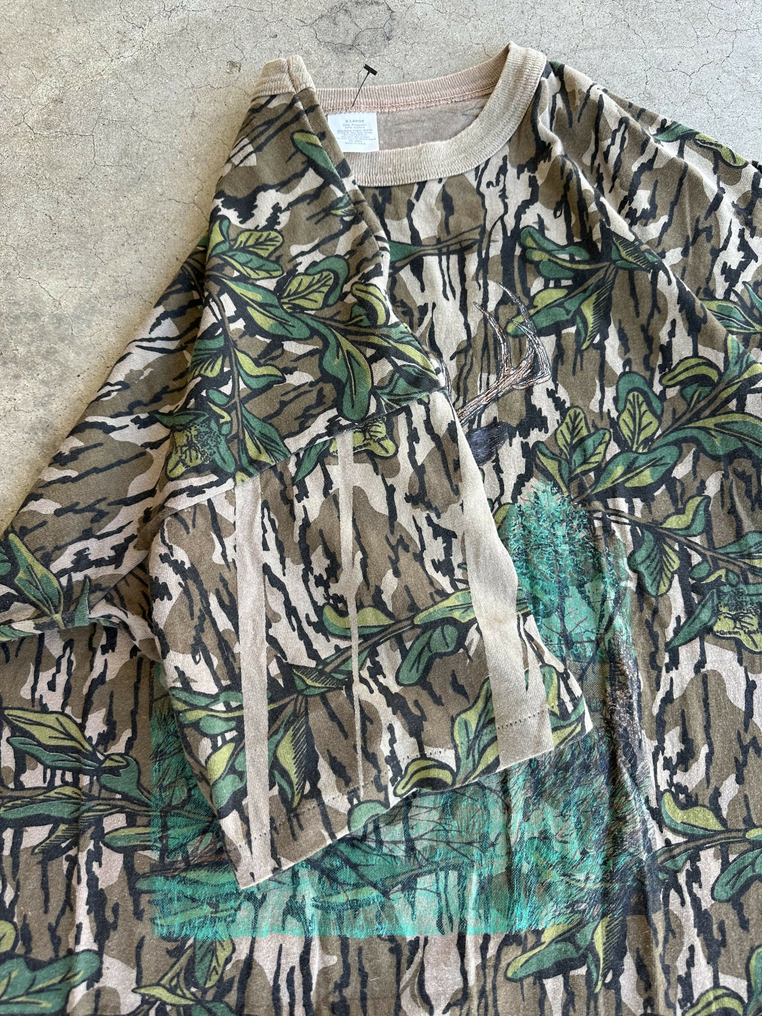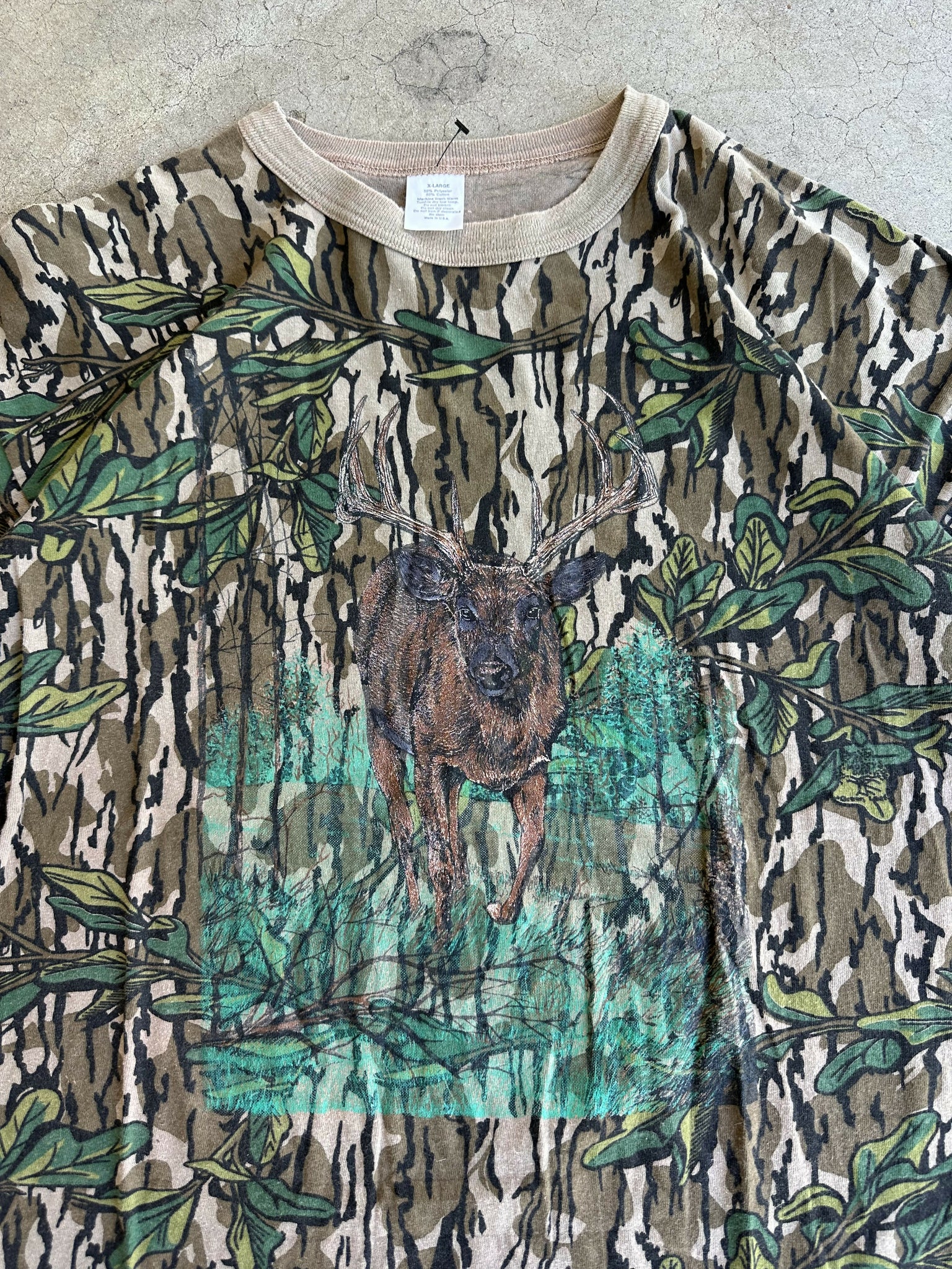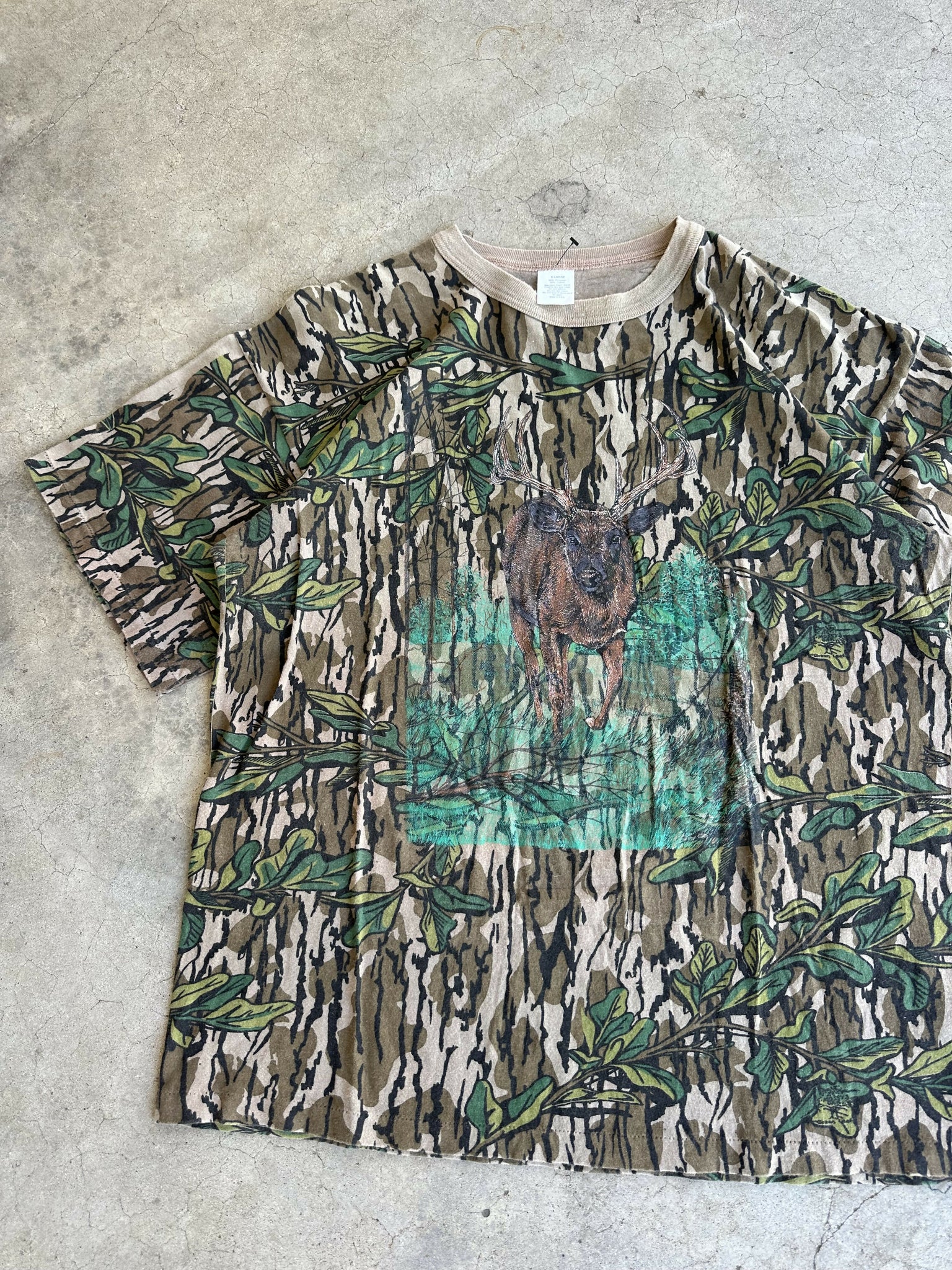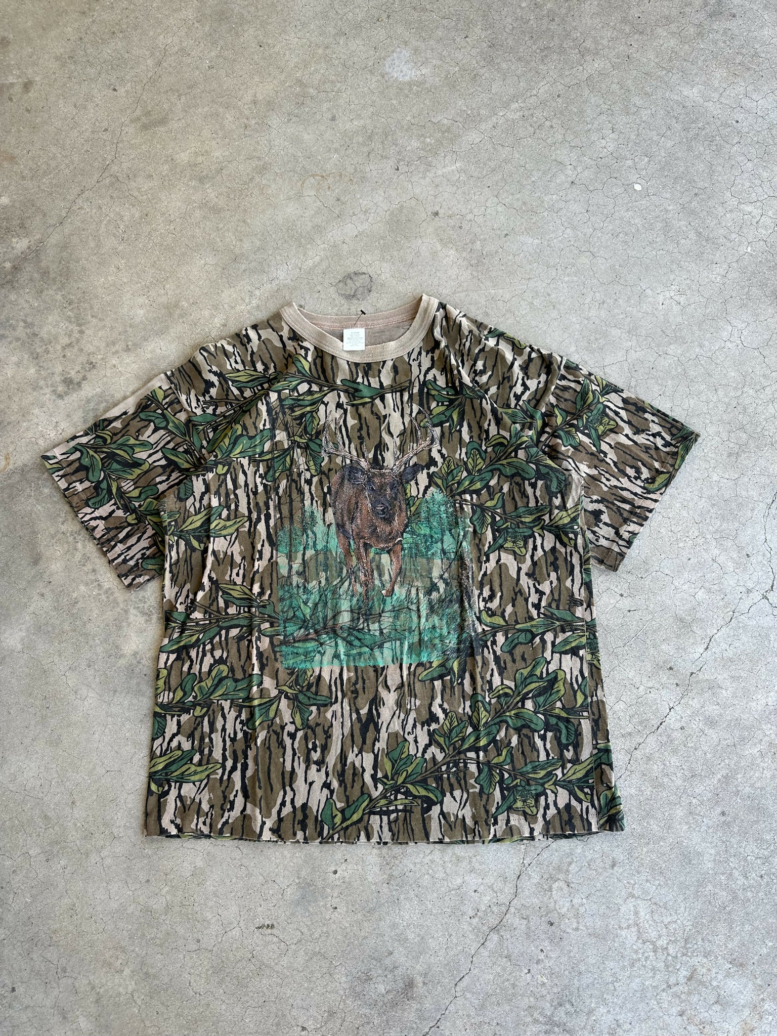 Vintage Mossy Oak Greenleaf Camo Deer Print T-Shirt (XL)