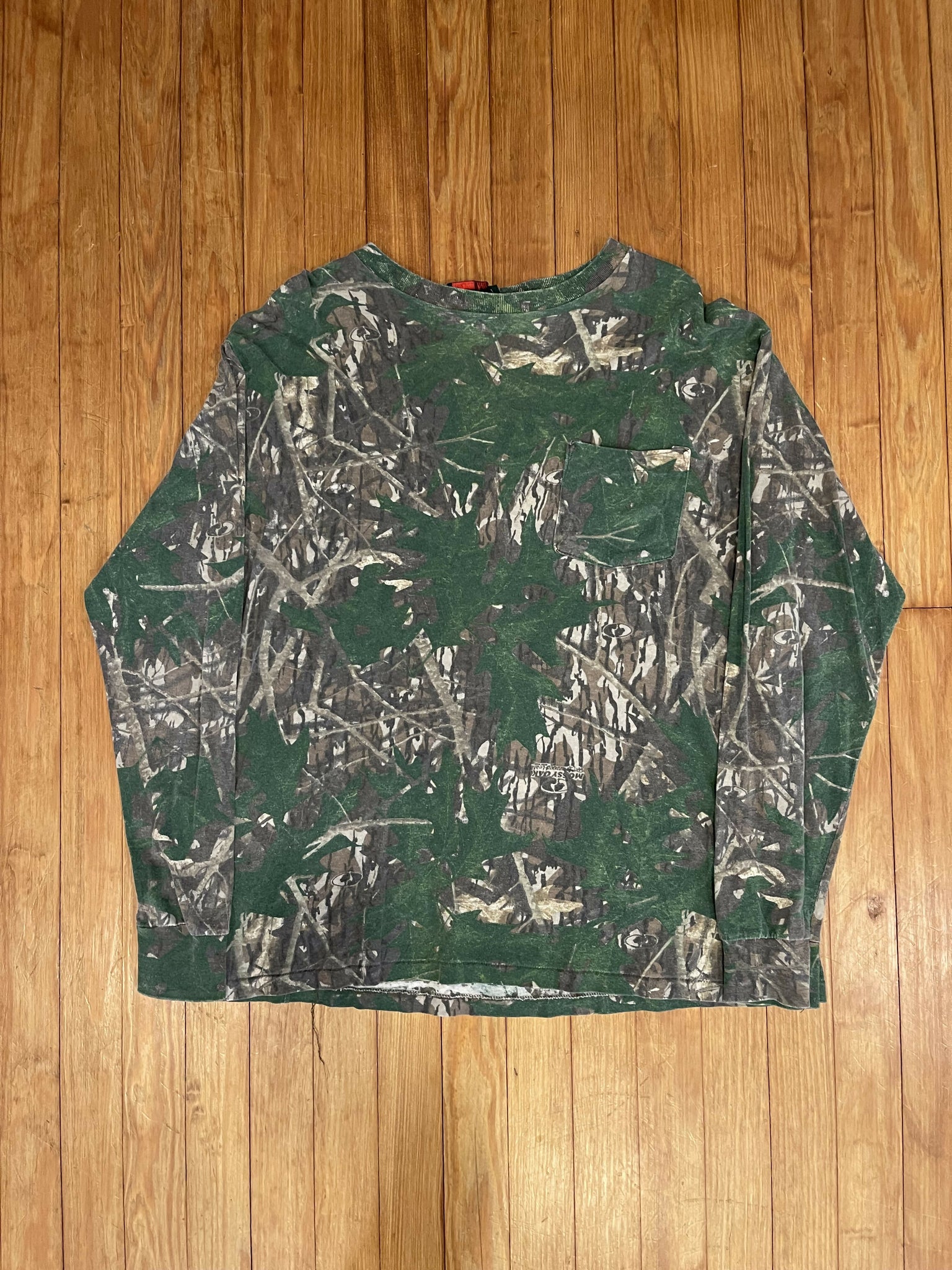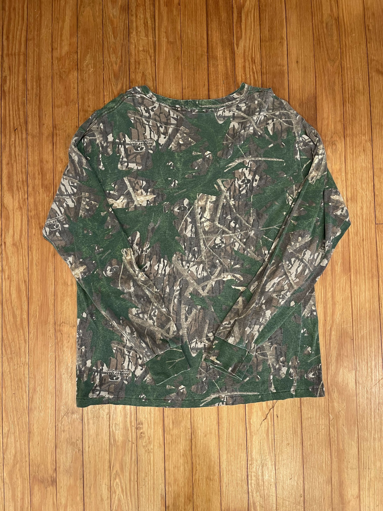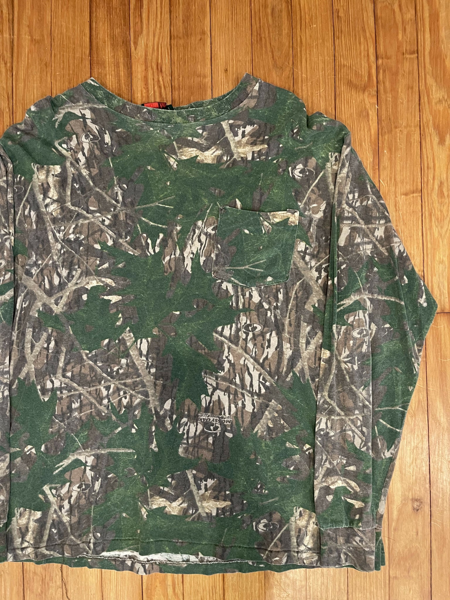 Vintage Mossy Oak Shadow Leaf Camo Long Sleeve Pocket Shirt (L)