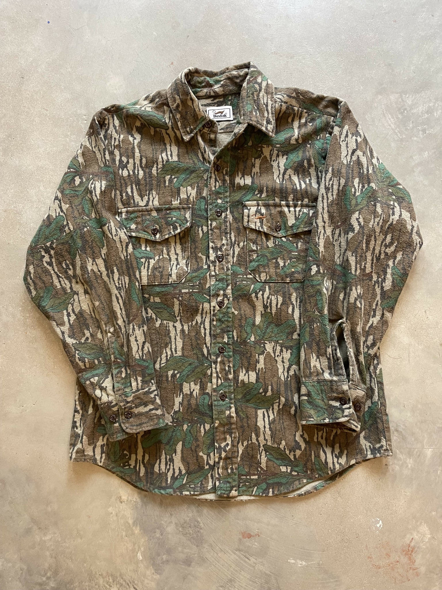 Vintage Duxbak Mossy Oak Greenleaf Camo Chamois Shirt (L)