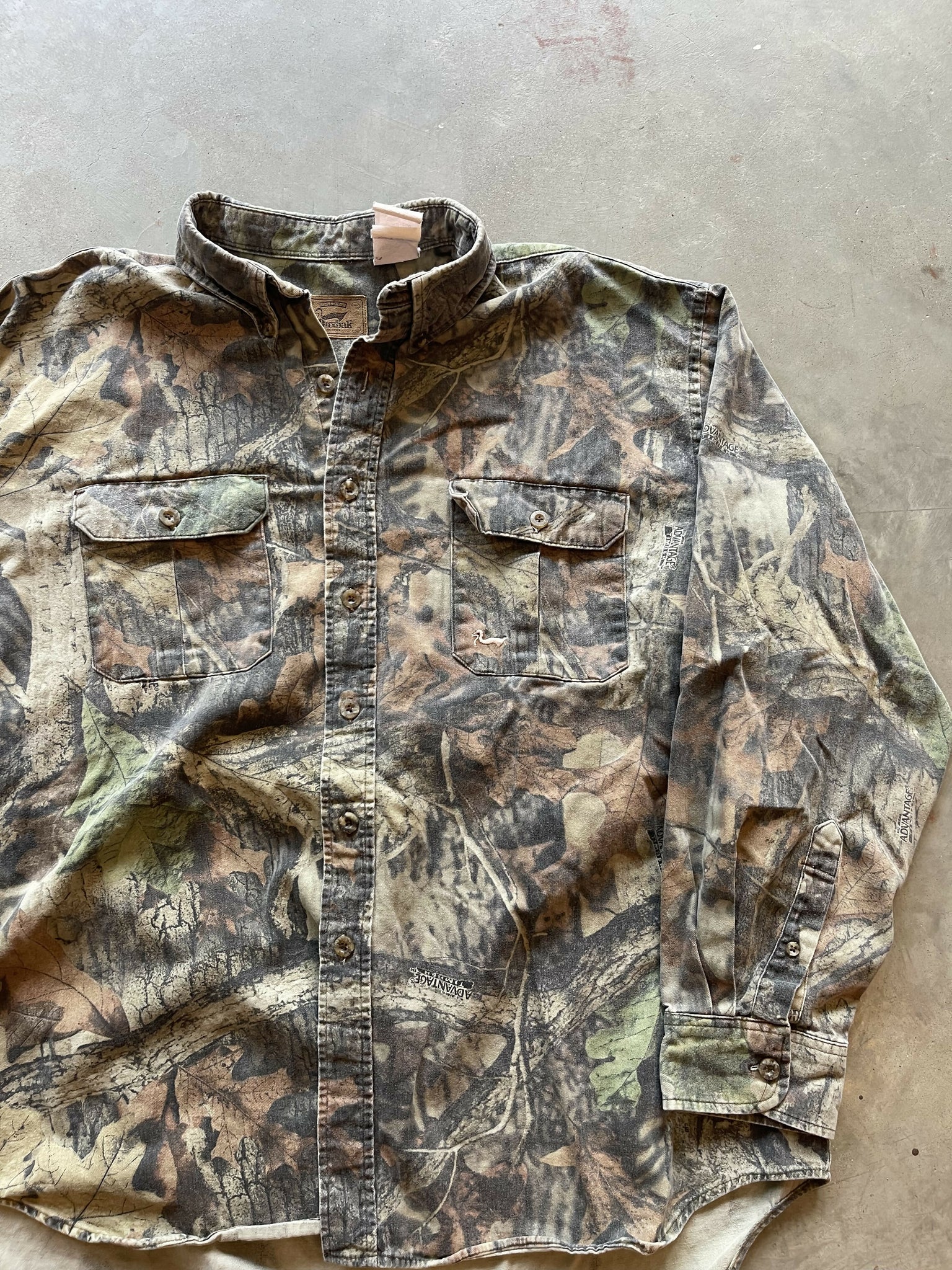 Vintage Duxbak Realtree Advantage Timber Camo Button-Up (XL)