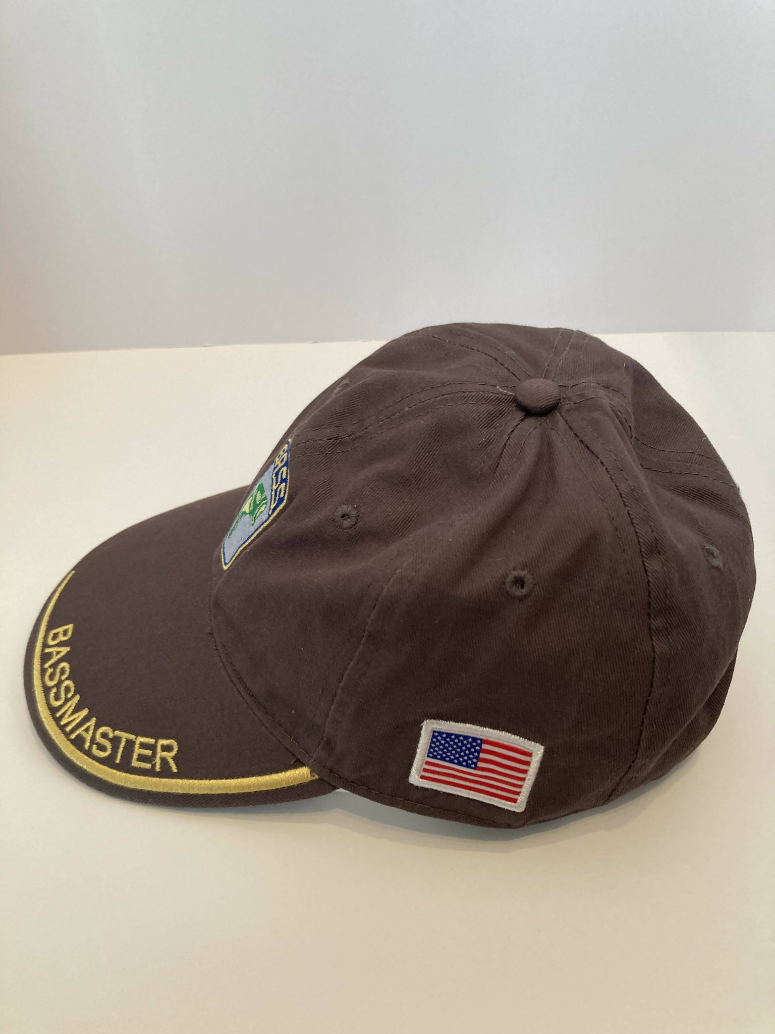 Bassmasters Cap with embroidery on logo, name on brim and with the American flag on the side. A classic cap in excellent condition.