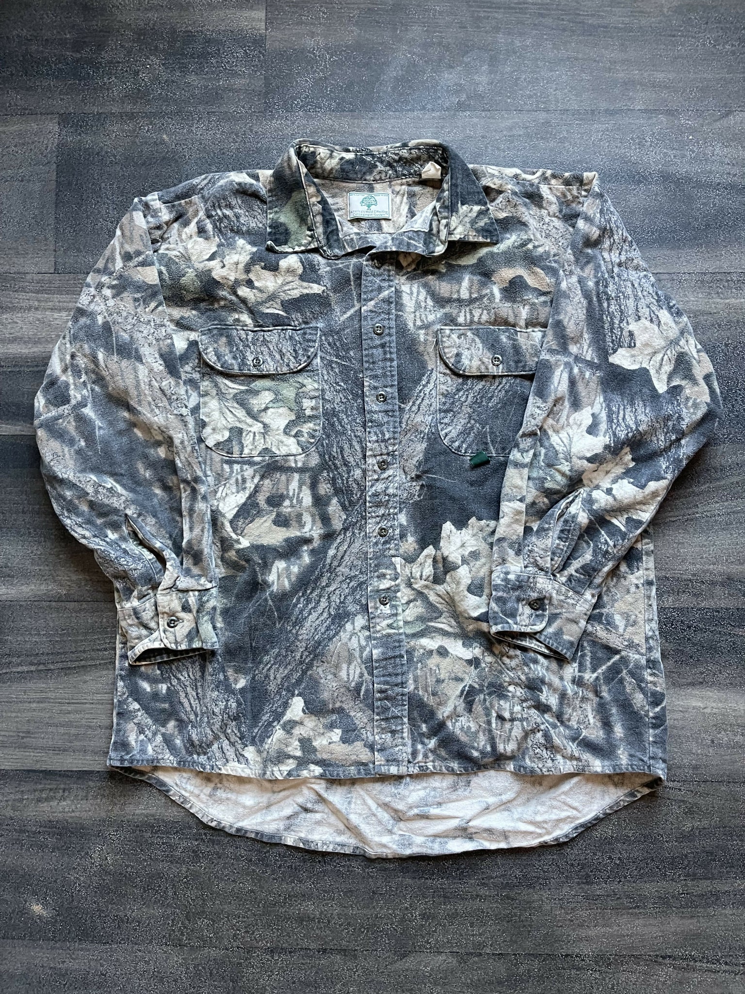 Vintage Mossy Oak Gen 1 Breakup Camo Chamois Shirt (XL)
