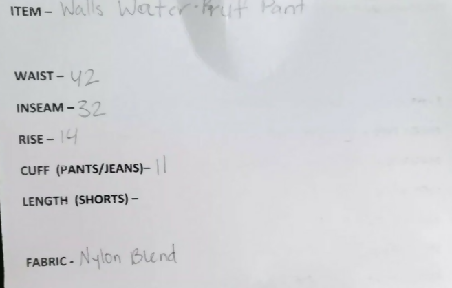 MEASUREMENTS: Waist 42 in Inseam 32 in Rise 14 in Cuff 11 in
