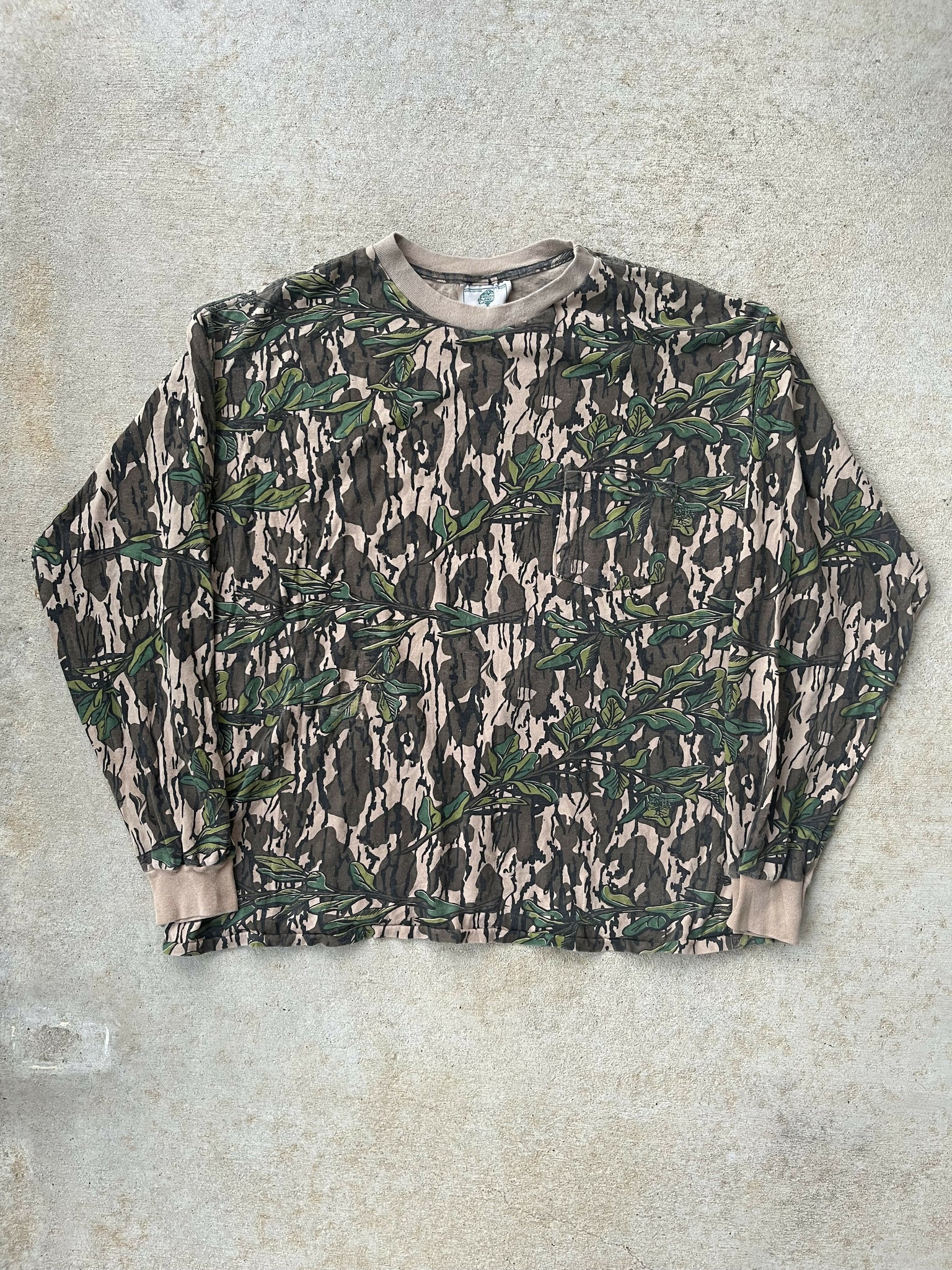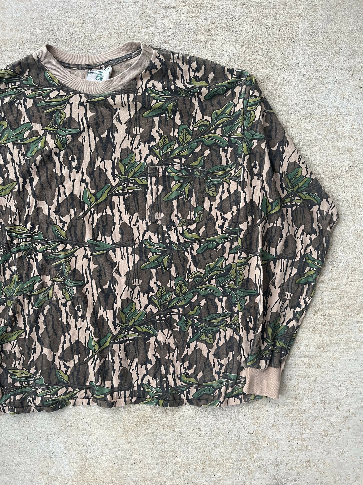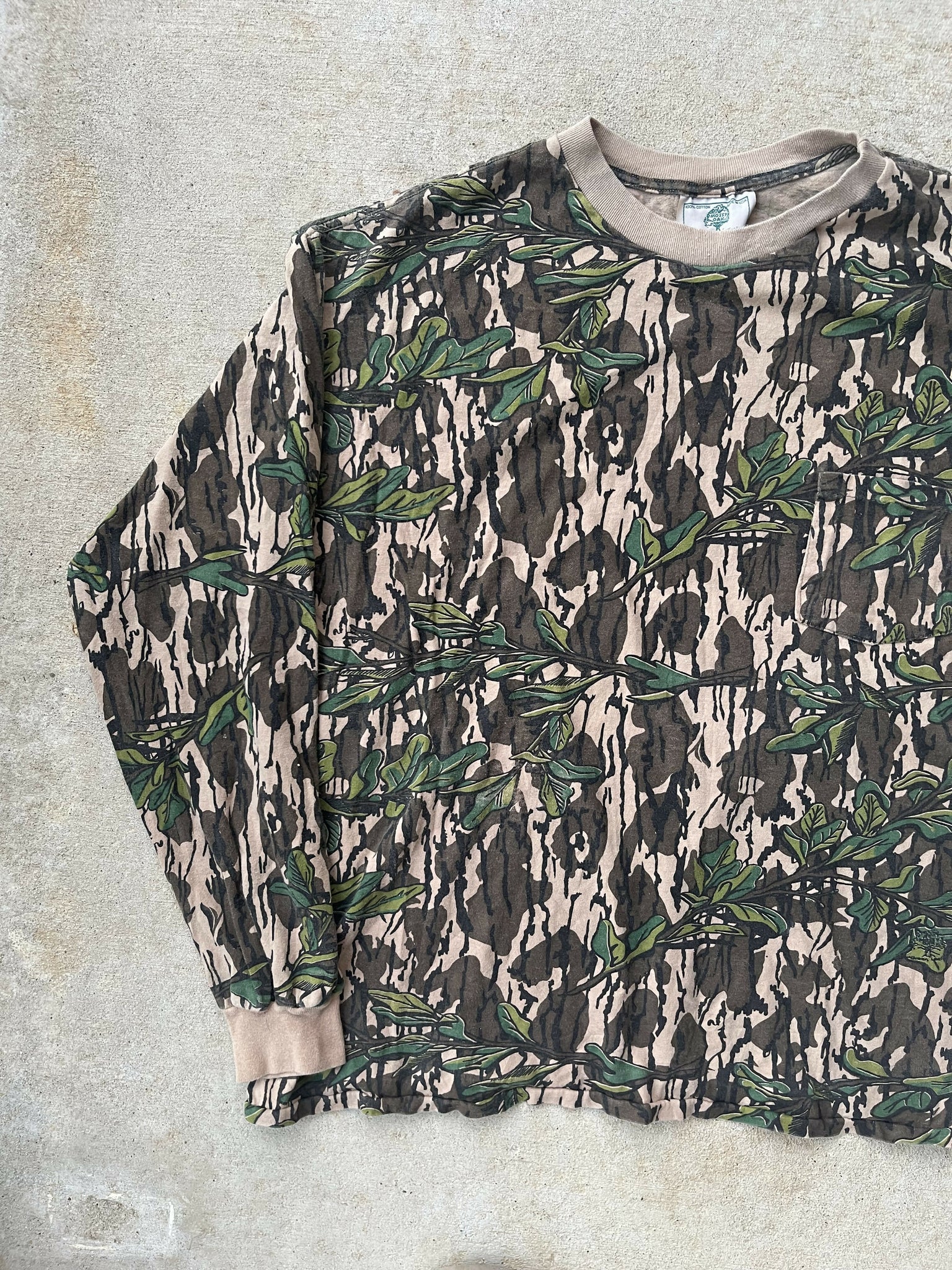 90’s Mossy Oak Green Leaf Camo Long Sleeve Pocket Shirt (2XL)