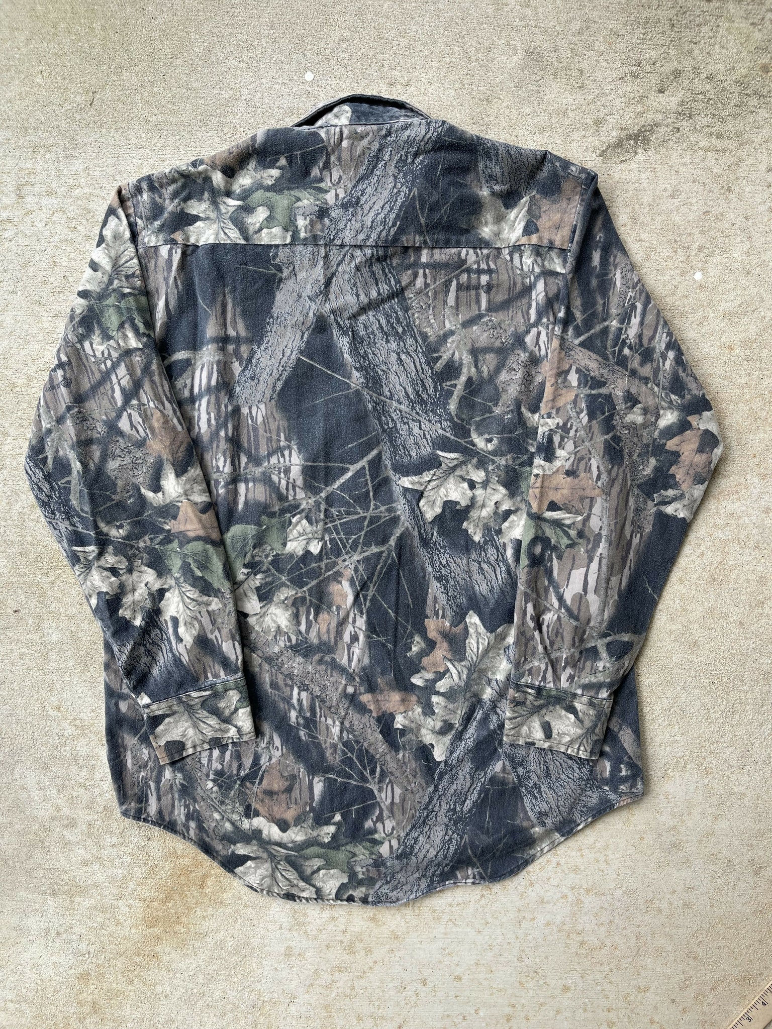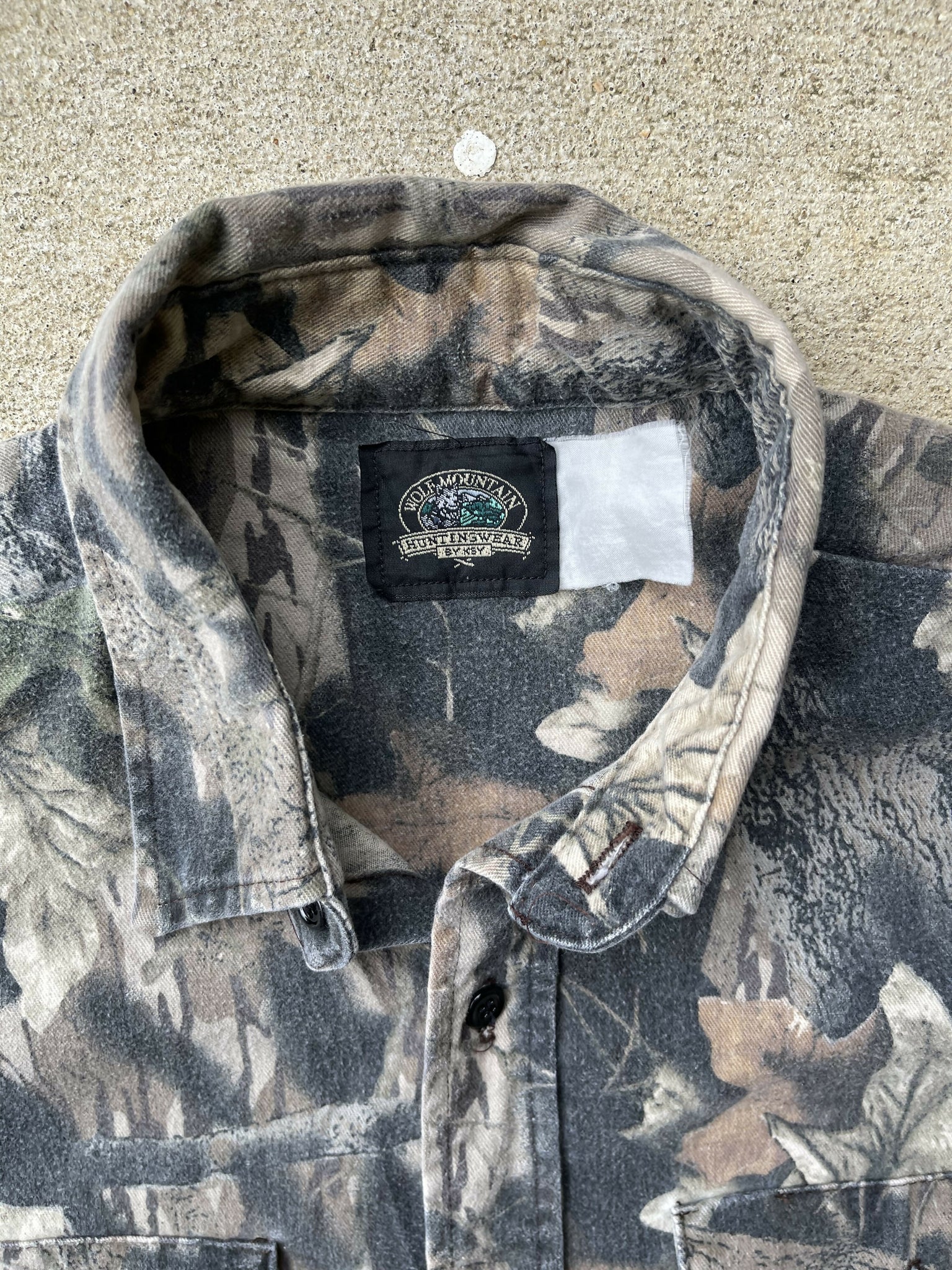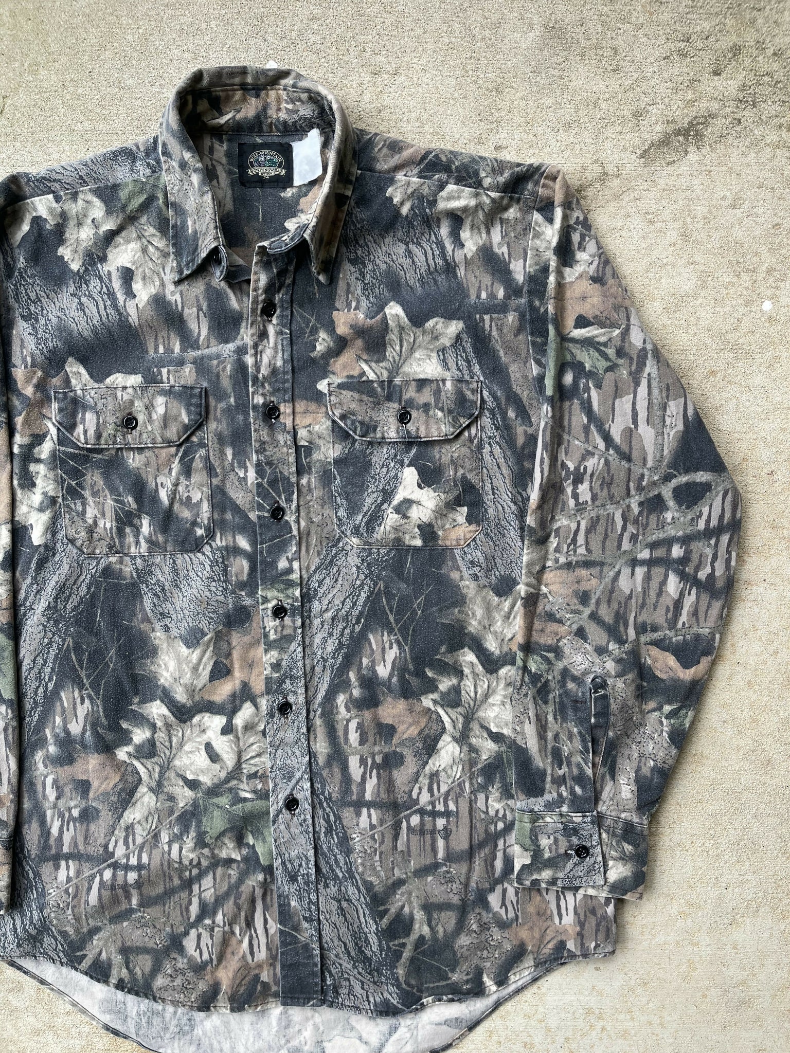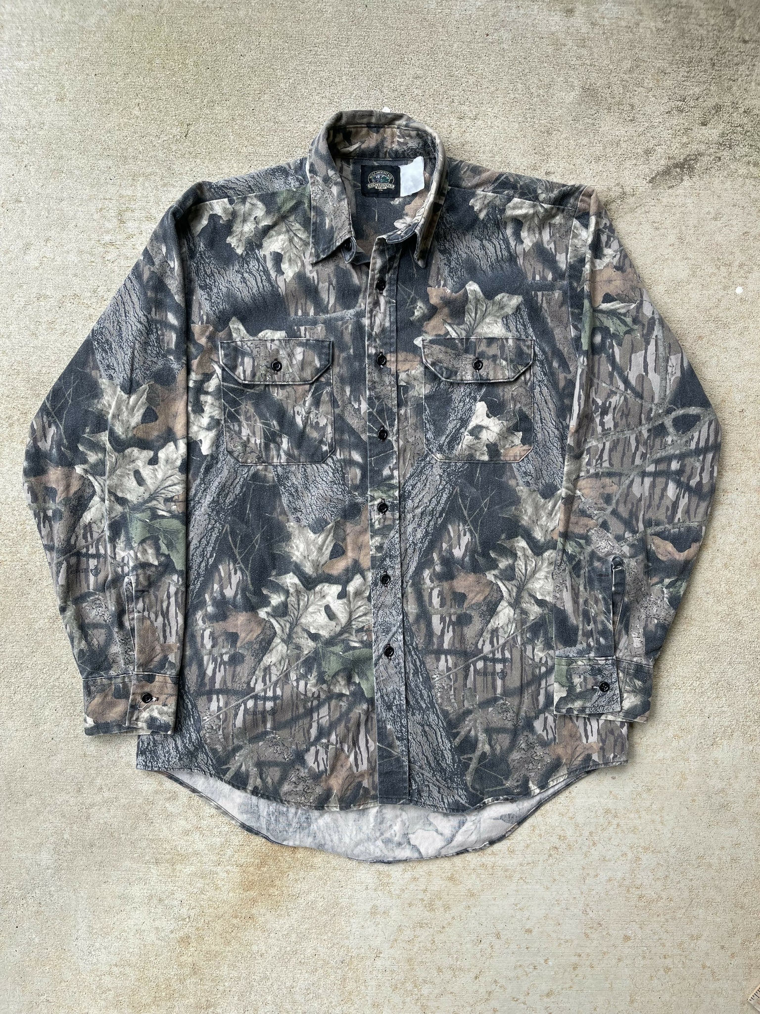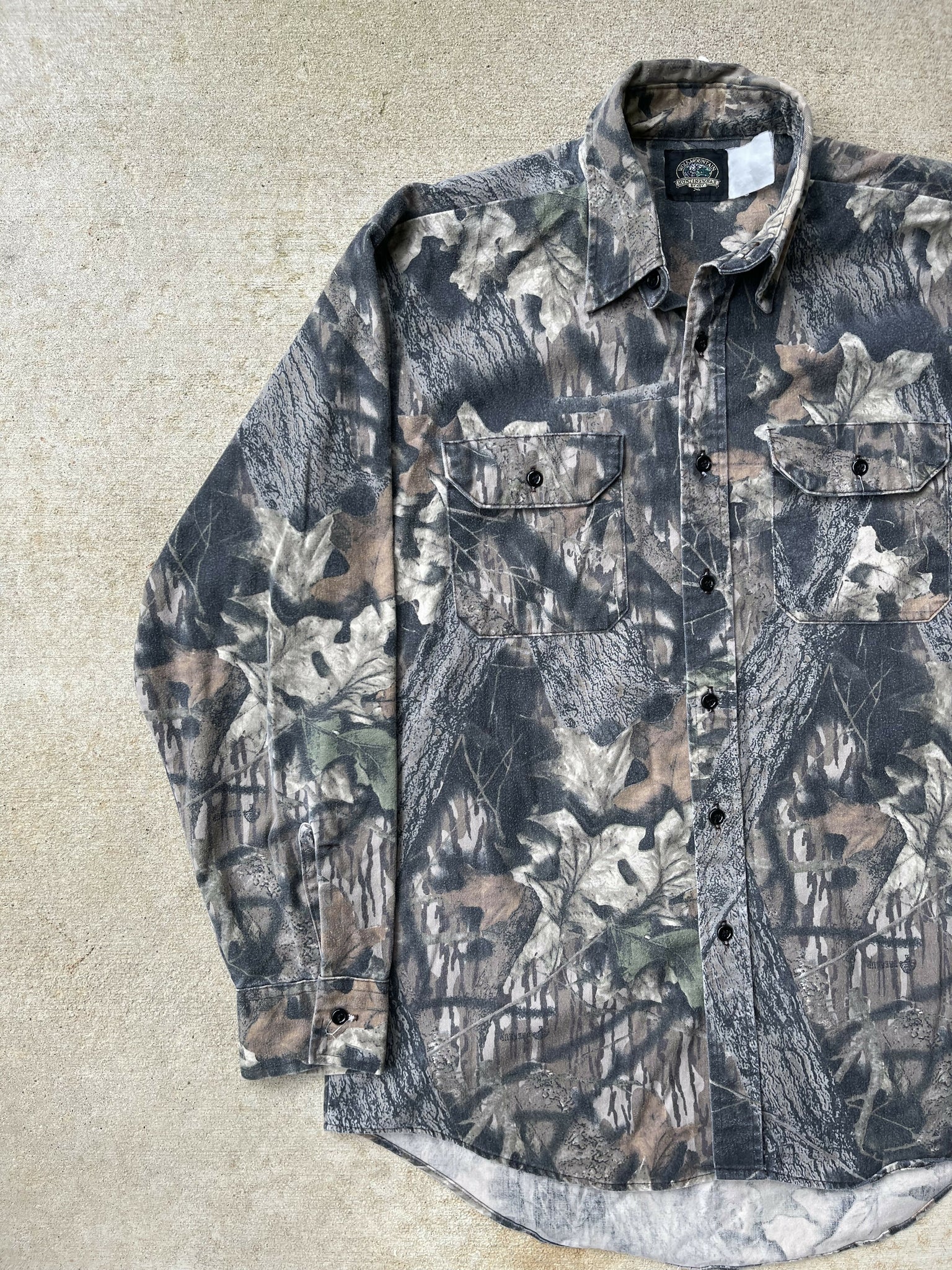 90’s Wolf Mountain Mossy Oak Gen 1 Breakup Camo Chamois Shirt (L/XL)