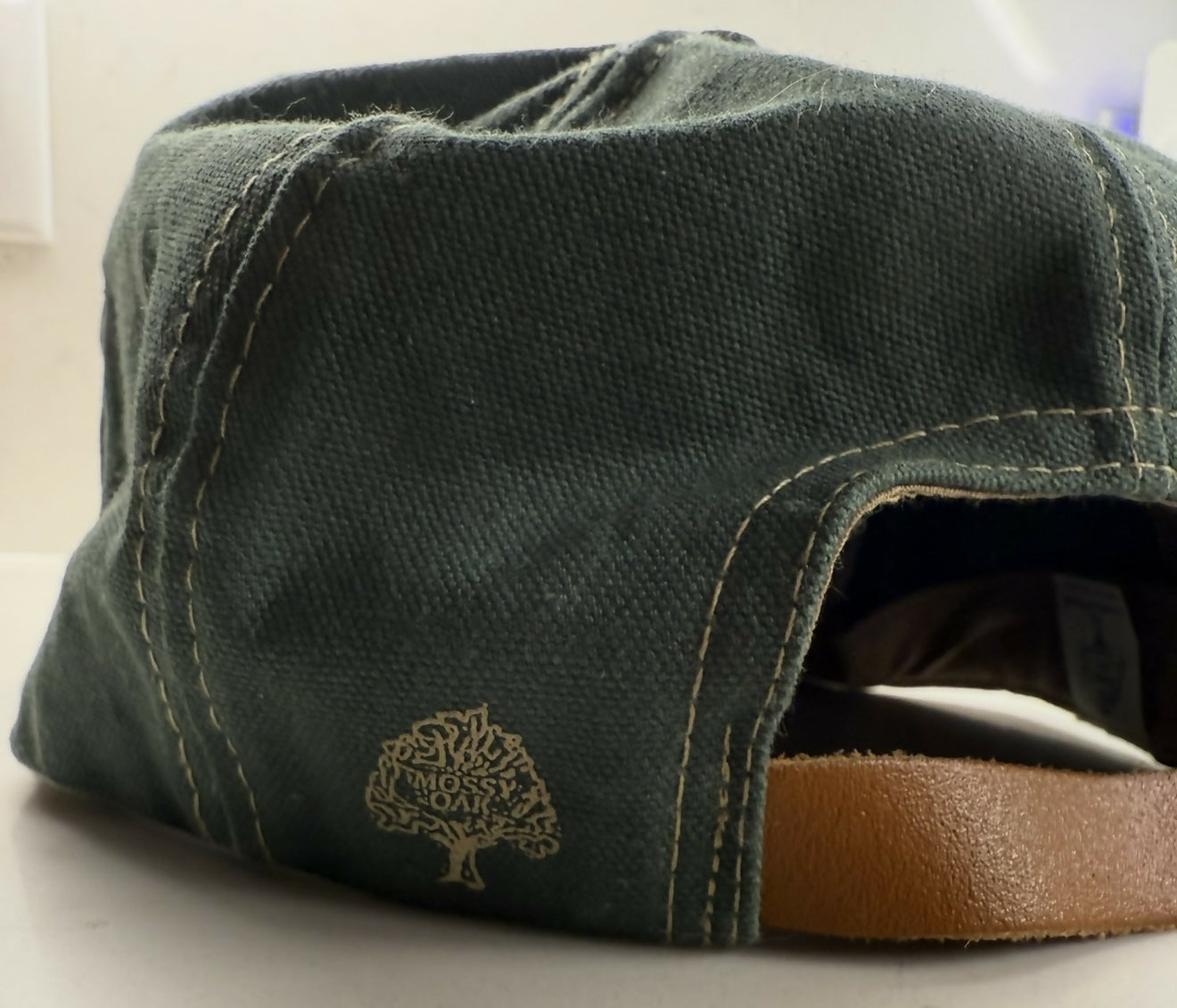 has slight bend brim but still wears well. Would be a good one to put a patch on.
