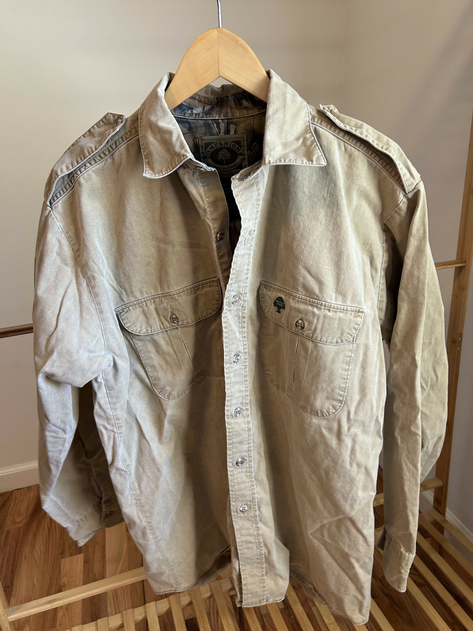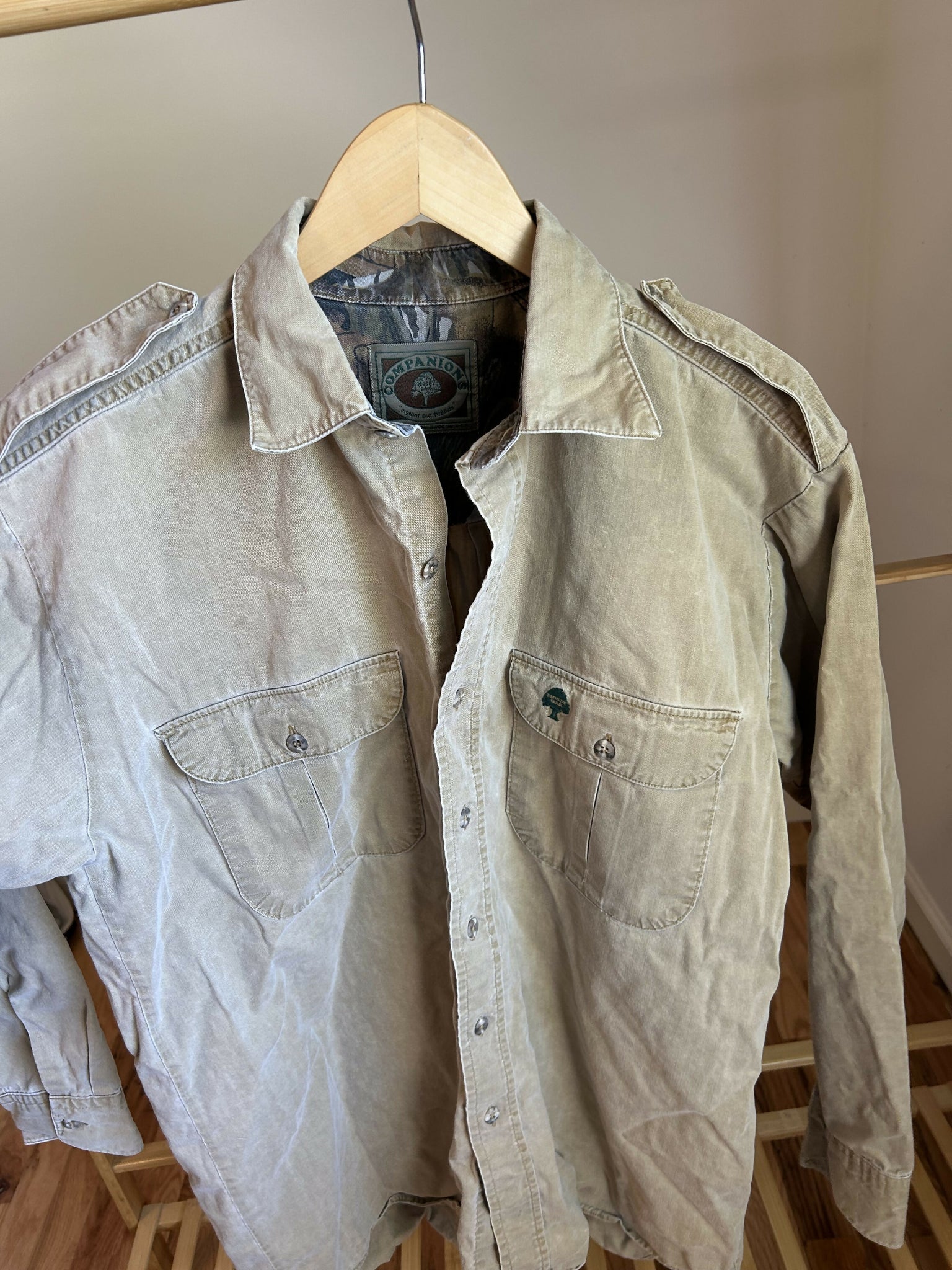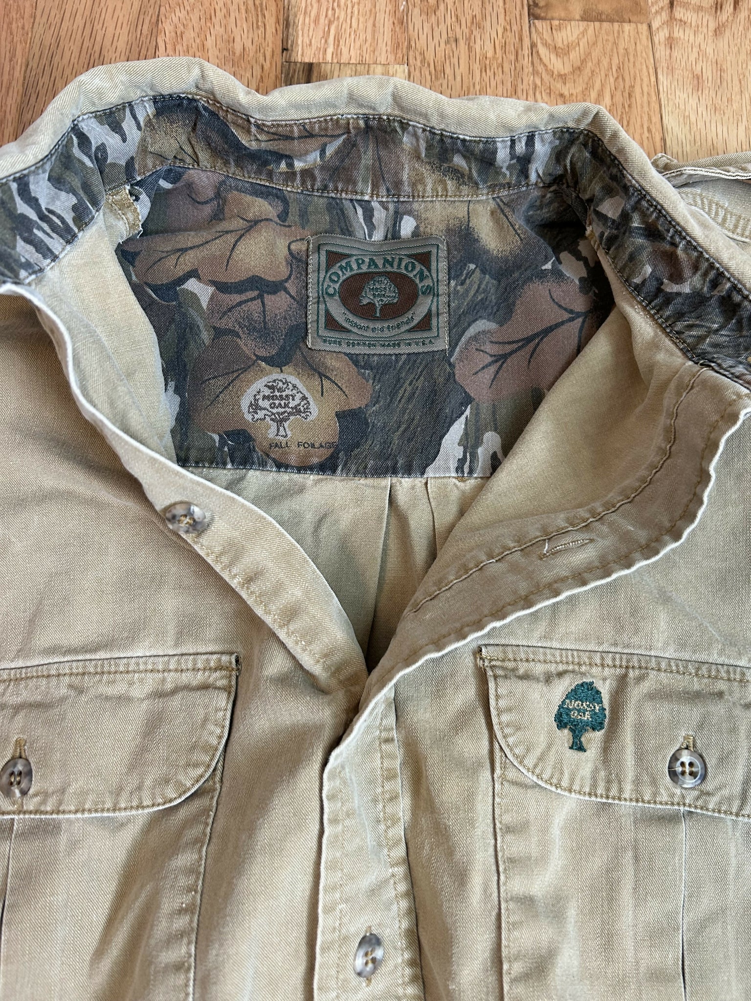RARE Mossy Oak Companions tan/khaki men’s XL shirt hunting shooting outdoor button up long sleeve shirt made in USA