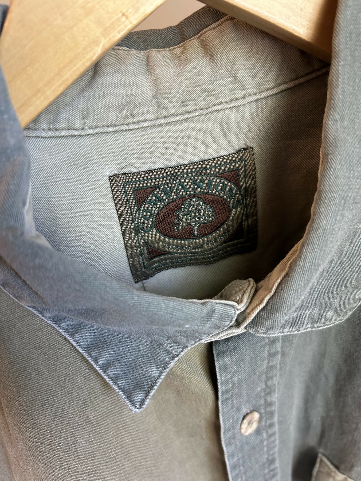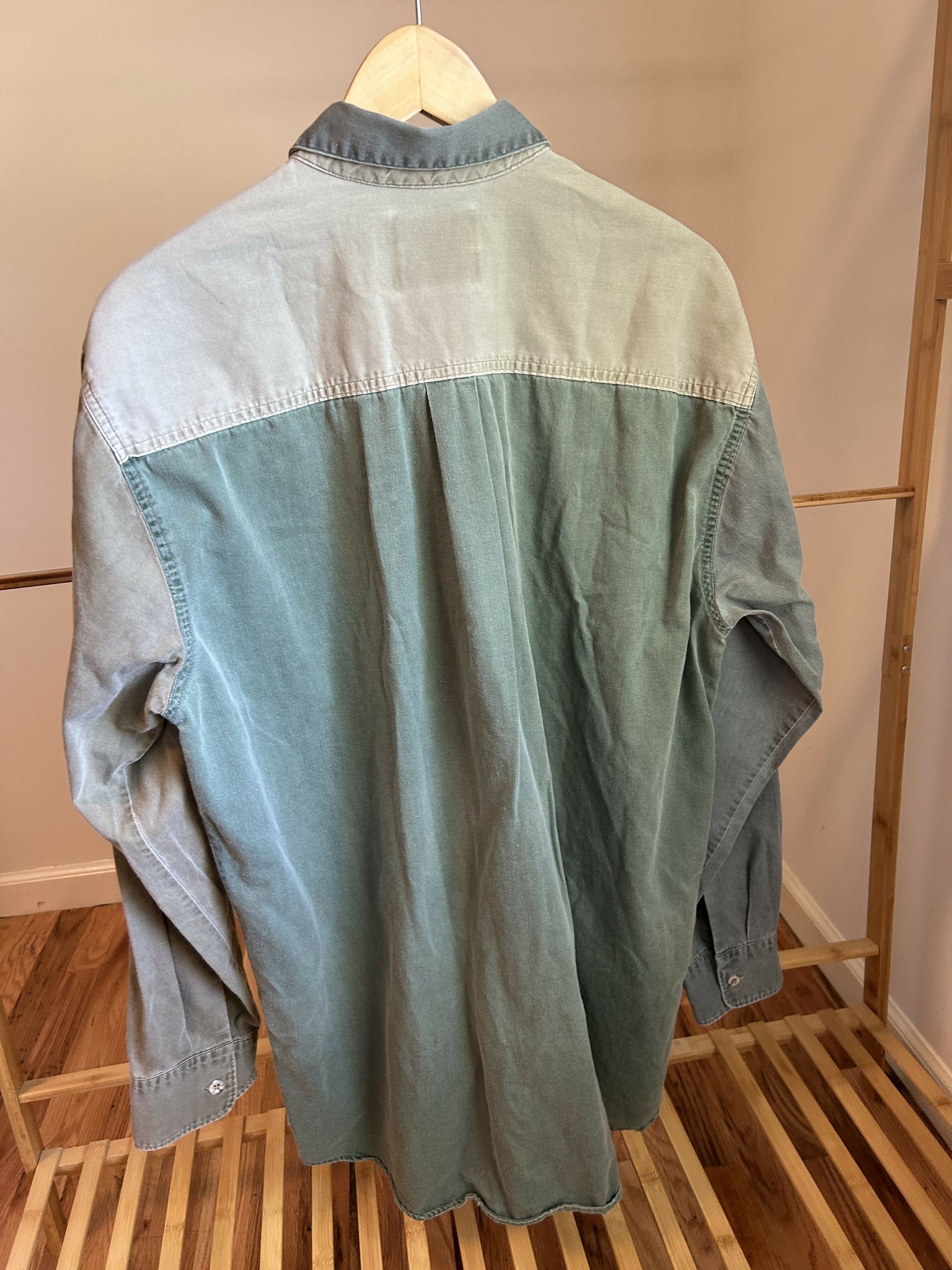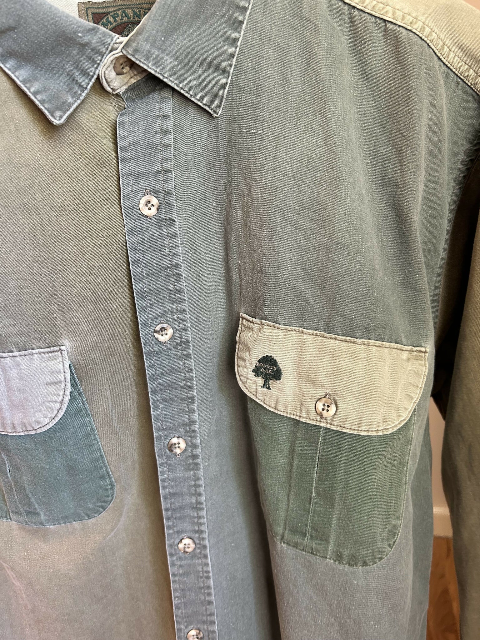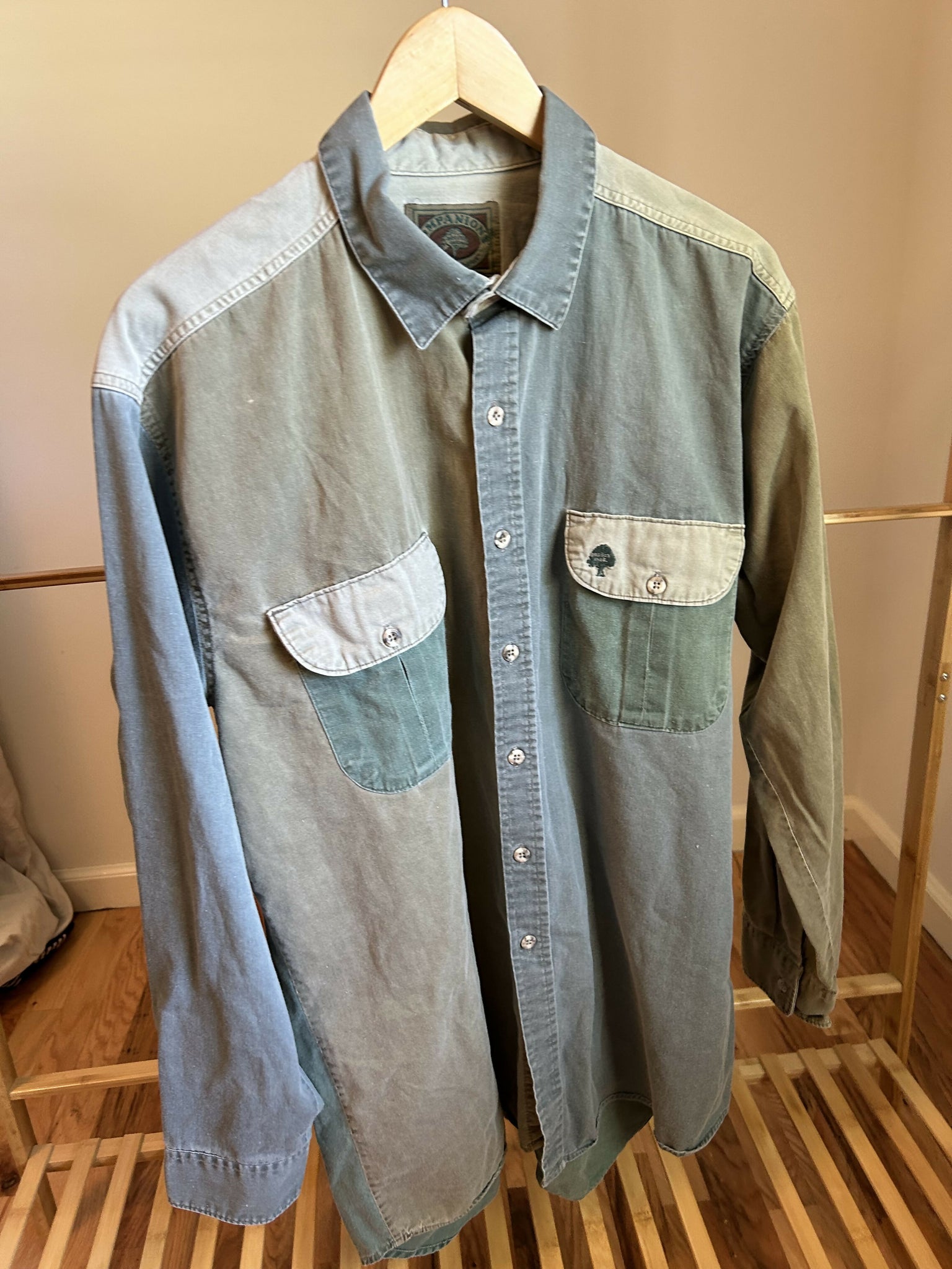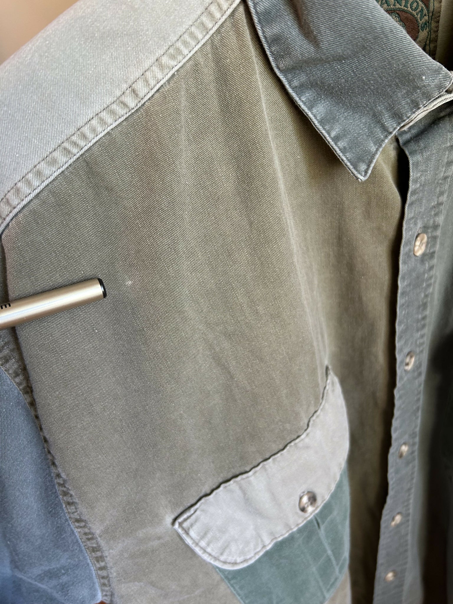 This is one of the best shirts from Mossy Oak in my opinion. Made in the USA. Comfortable shirts with lots of colorblock greens, blues, and tans. This is a rare one for sure.