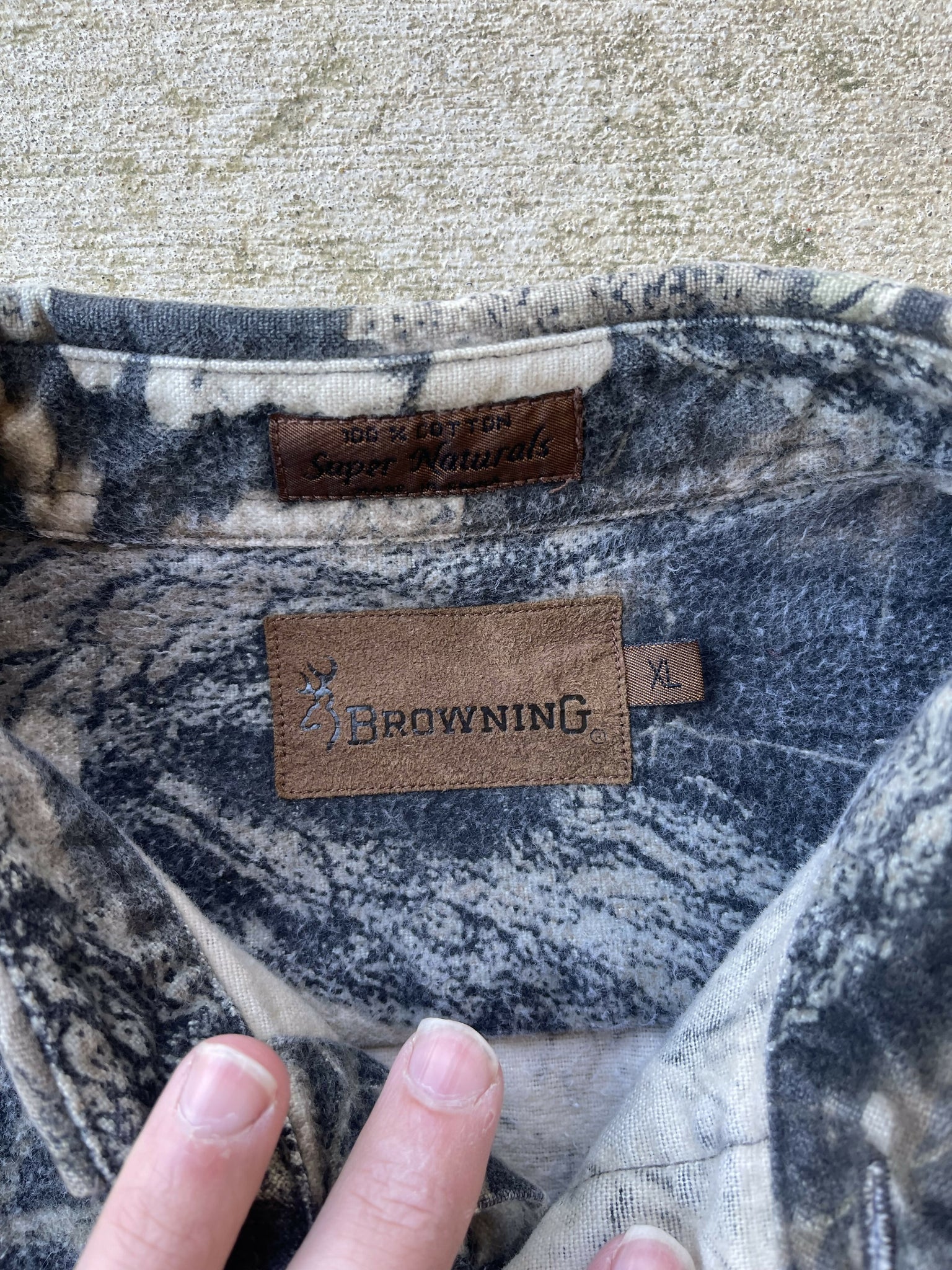 Vintage Browning Mossy Oak Gen 1 Breakup Camo Chamois Shirt (XL)