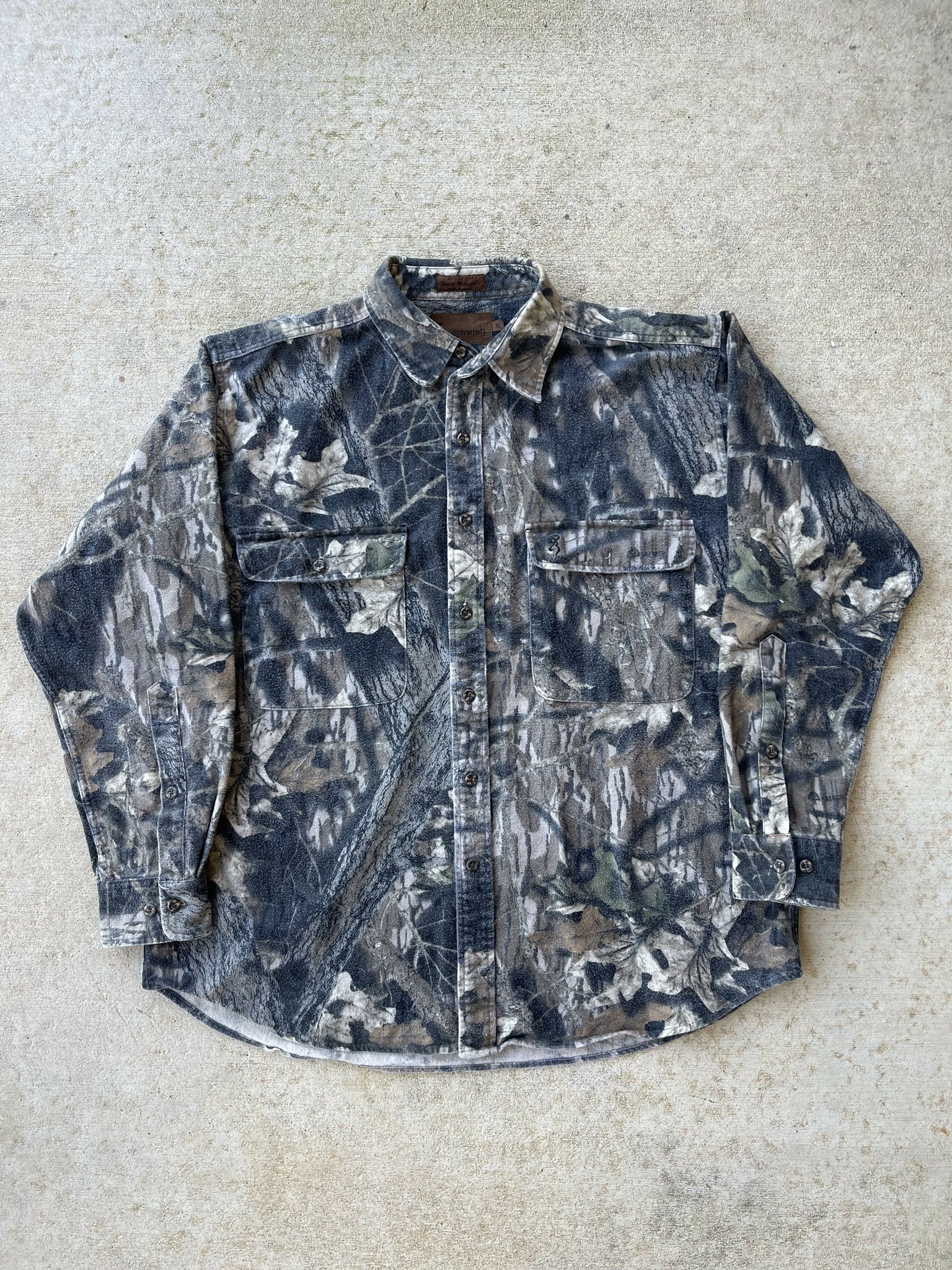 90’s Browning Mossy Oak Gen 1 Breakup Camo Chamois Shirt (XL)