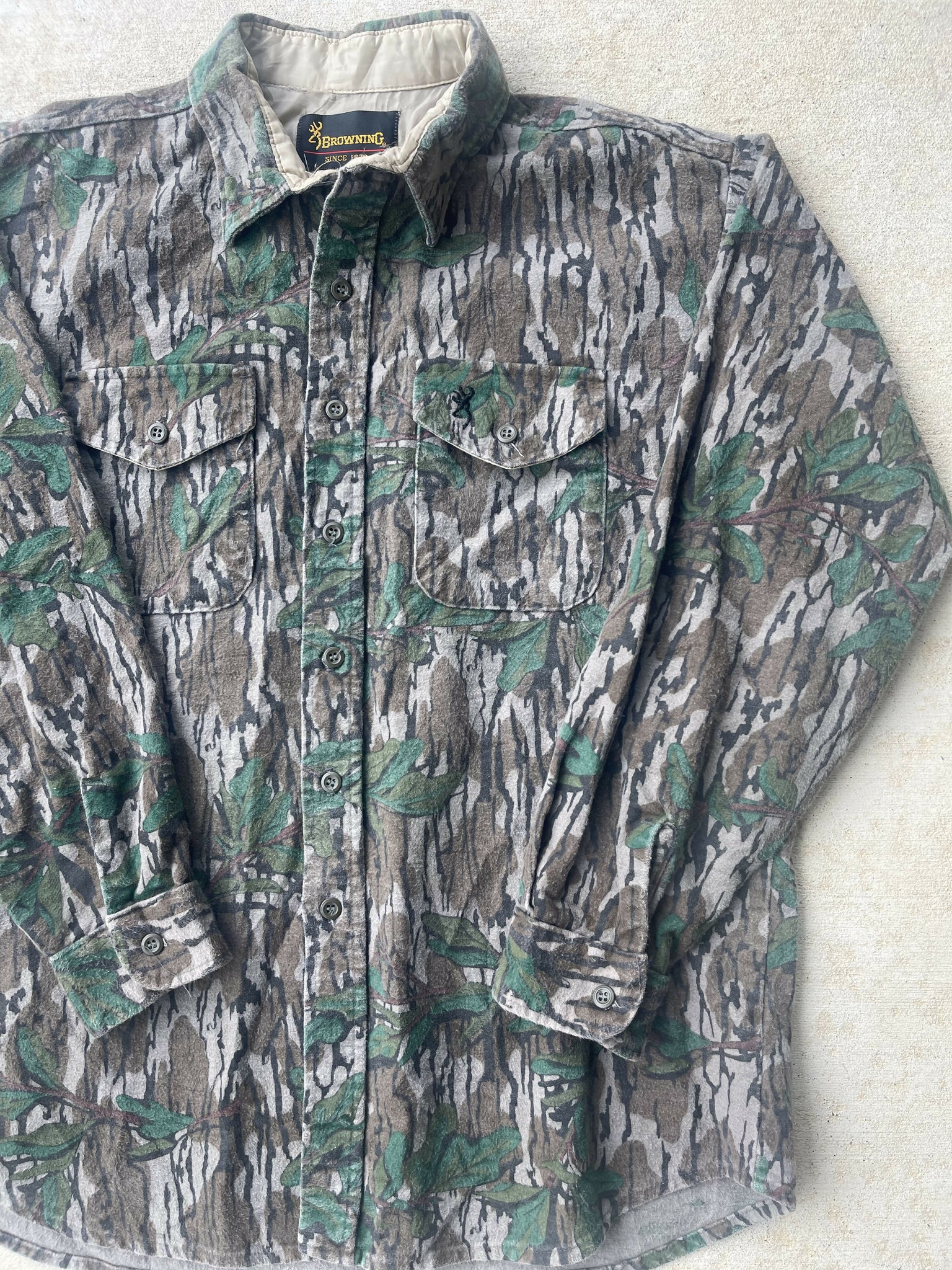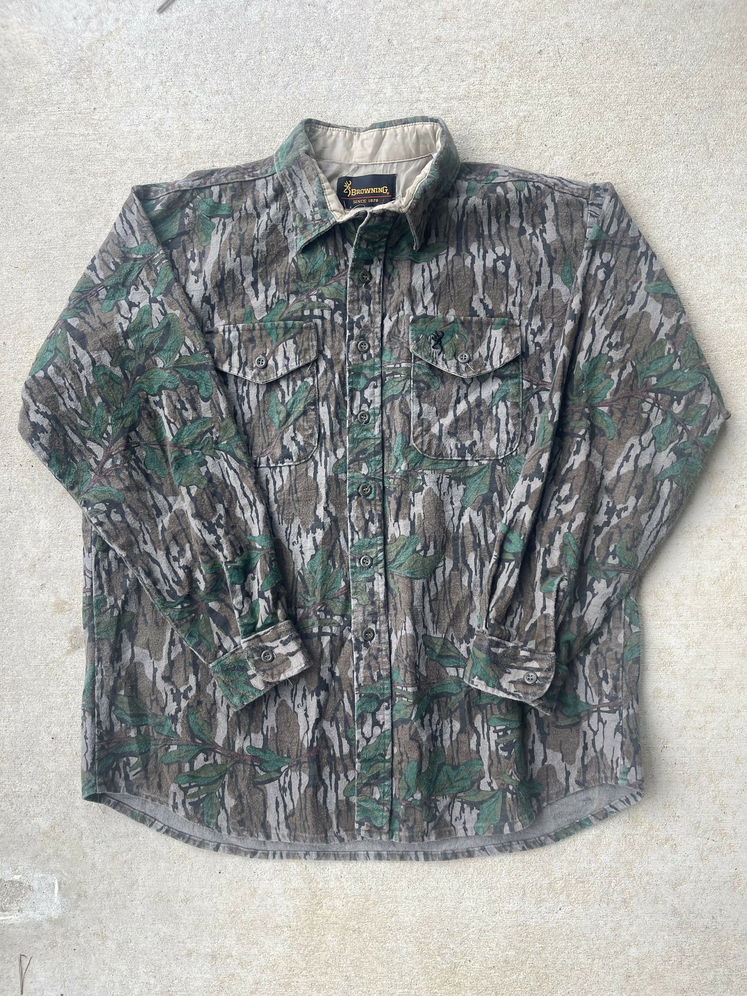 Vintage Browning Mossy Oak Greenleaf Camo Chamois Shirt (XL)