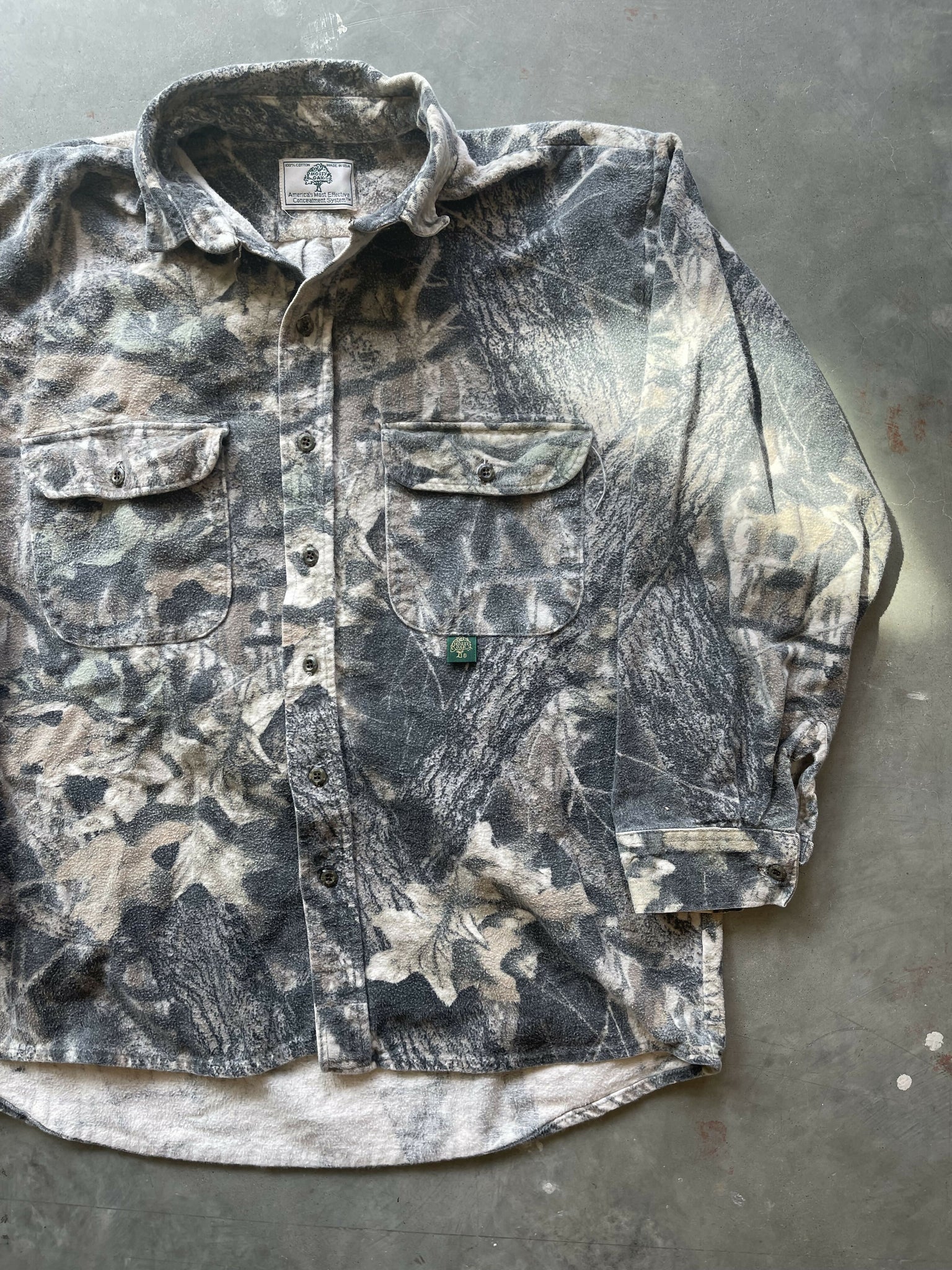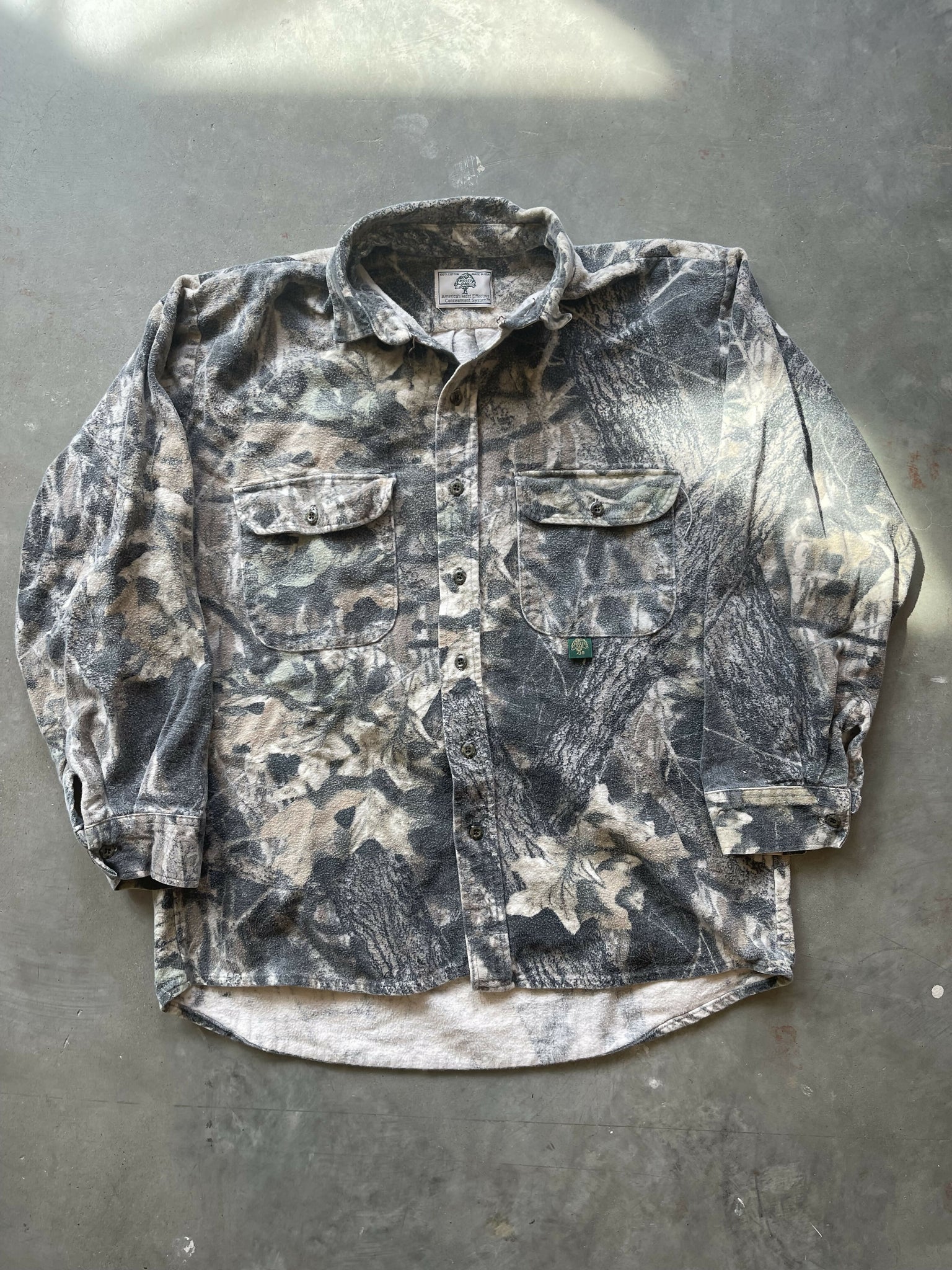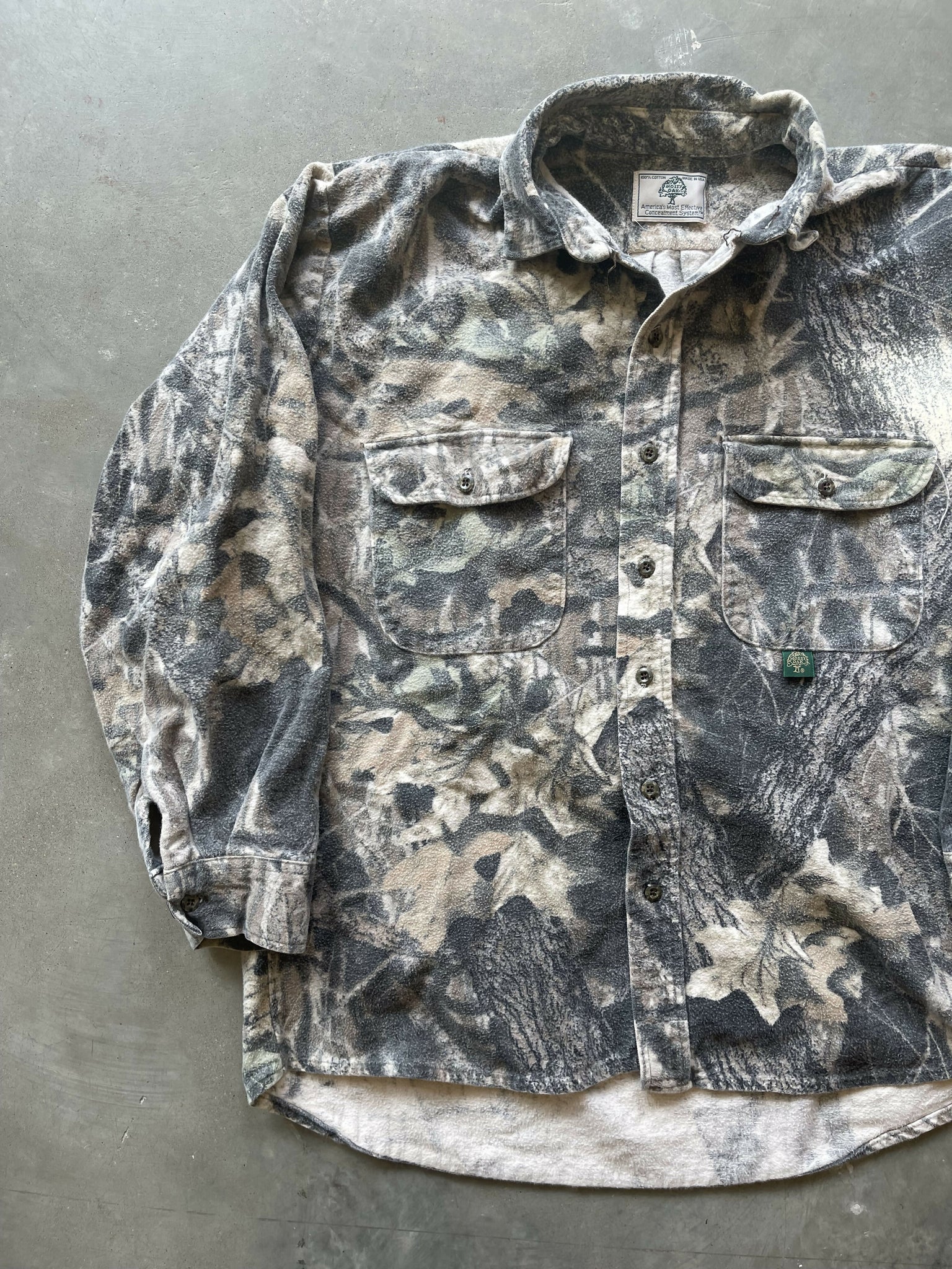 Vintage Faded Mossy Oak Breakup Camo Chamois Shirt (L)