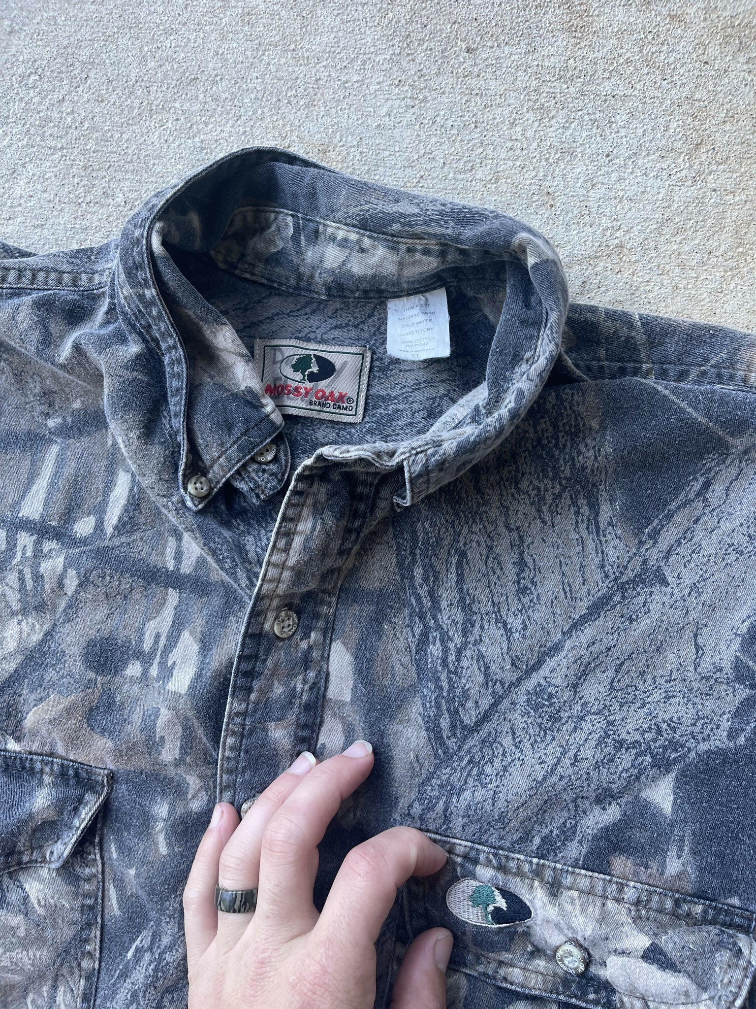 Vintage Mossy Oak Breakup Camo Button-Up Shirt (XL)