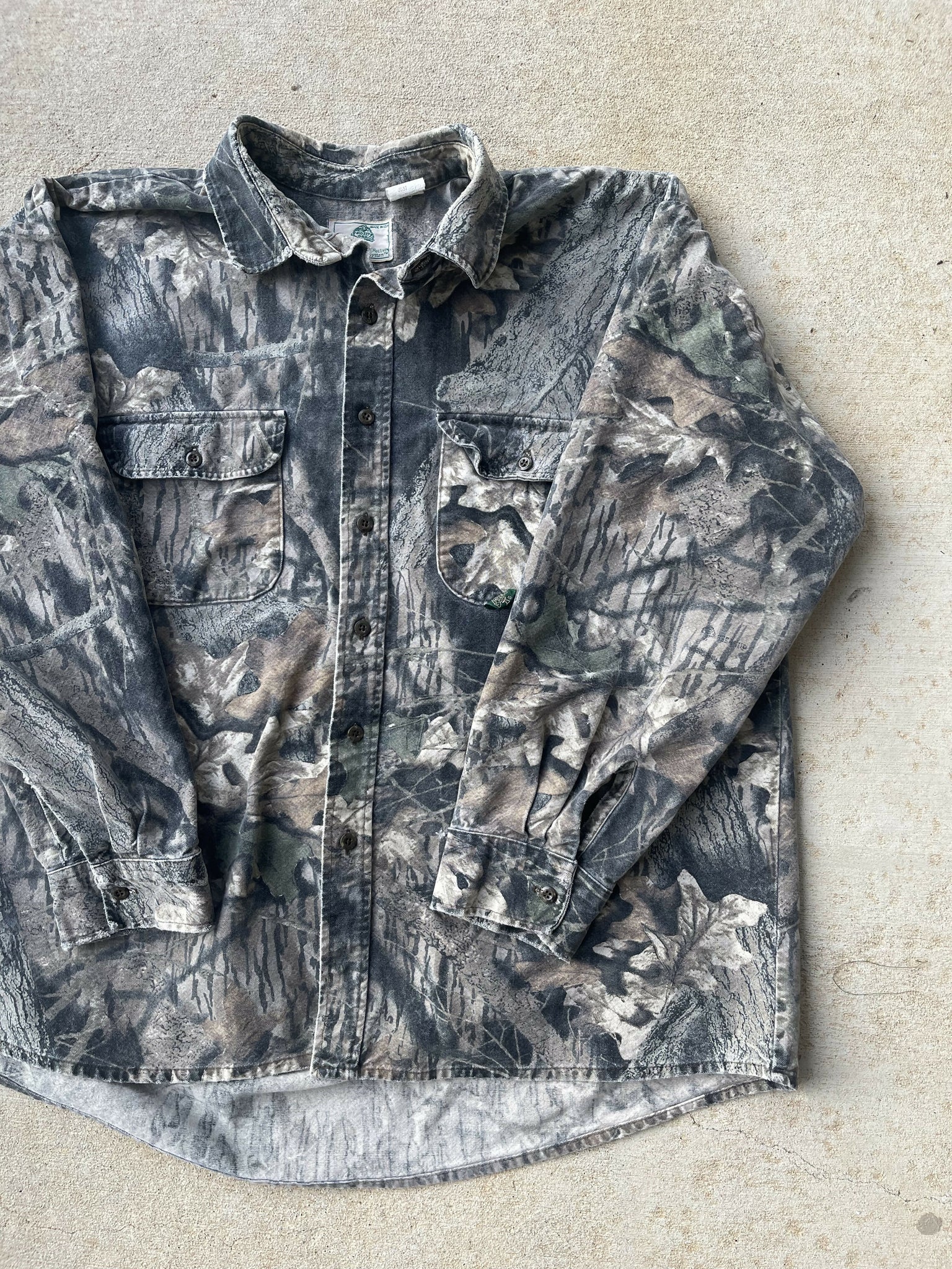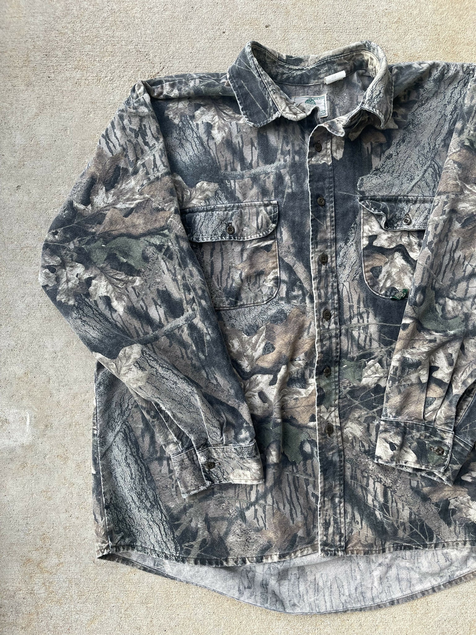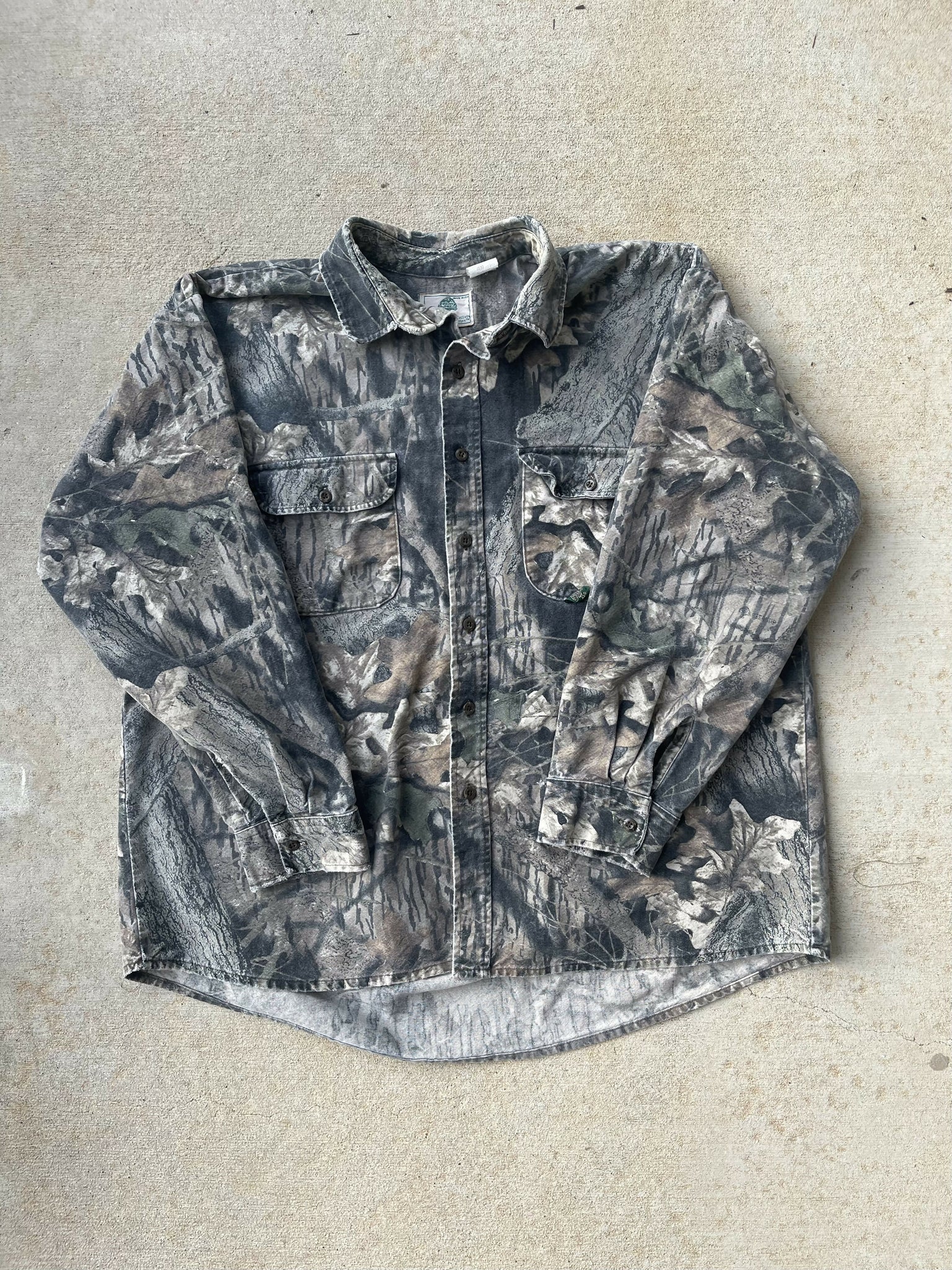 Vintage Mossy Oak Gen 1 Breakup Camo Chamois Shirt (2XL)