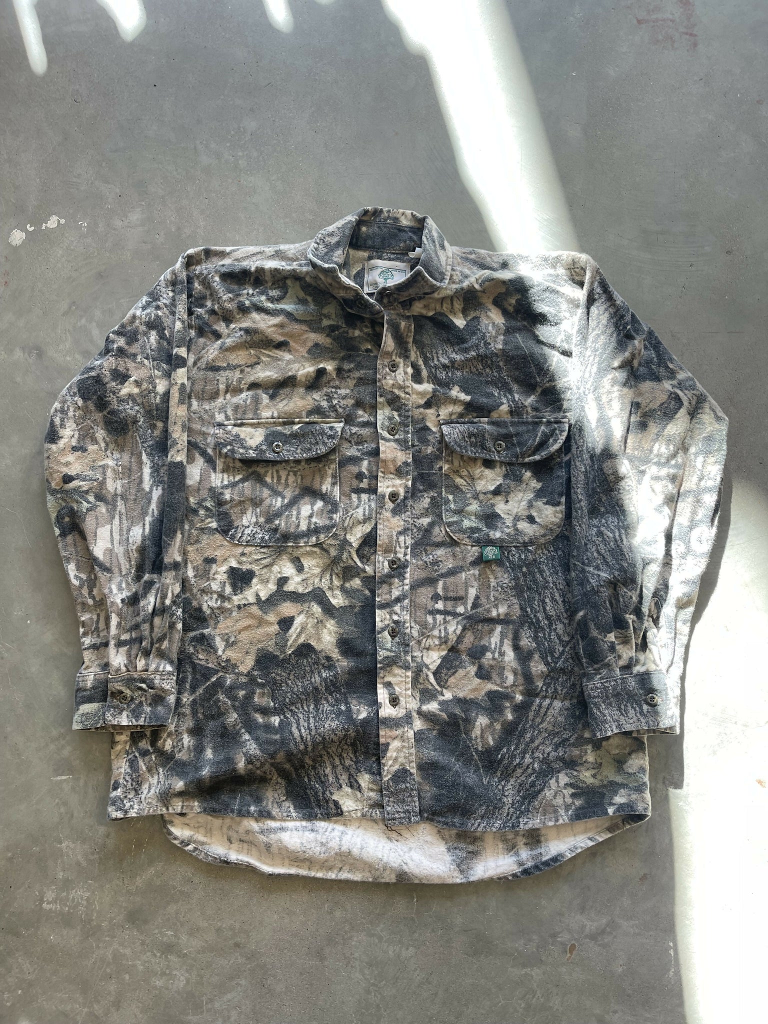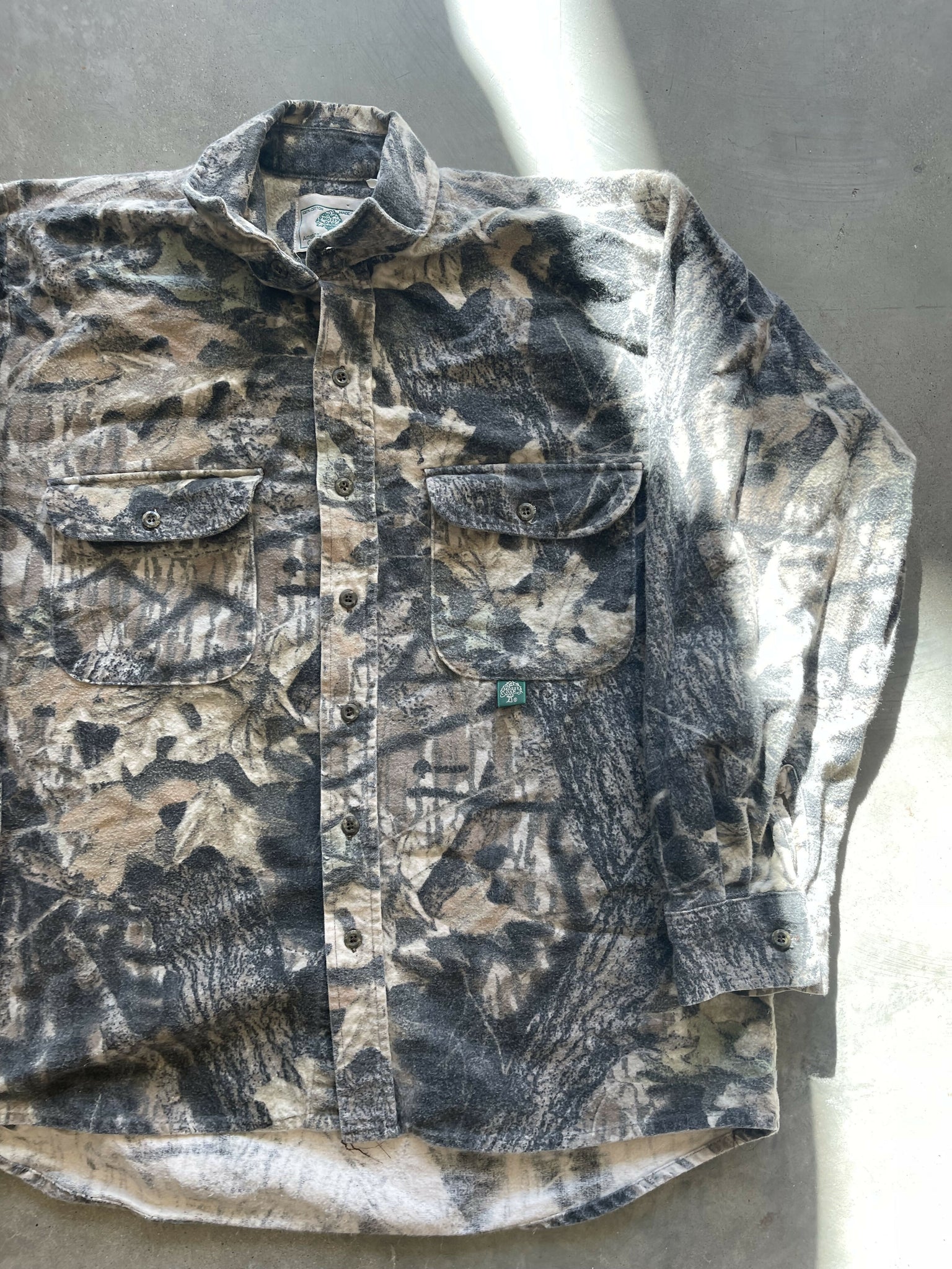 Vintage Mossy Oak Gen 1 Breakup Camo Chamois Shirt (L)
