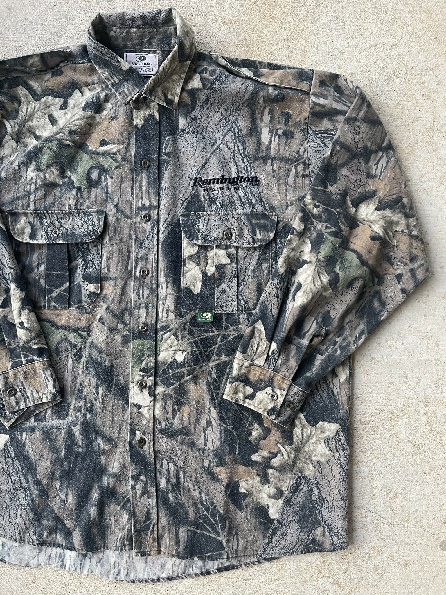 Vintage Mossy Oak Gen 1 Breakup Camo “Remington Racing” Strap Shirt (2XL)