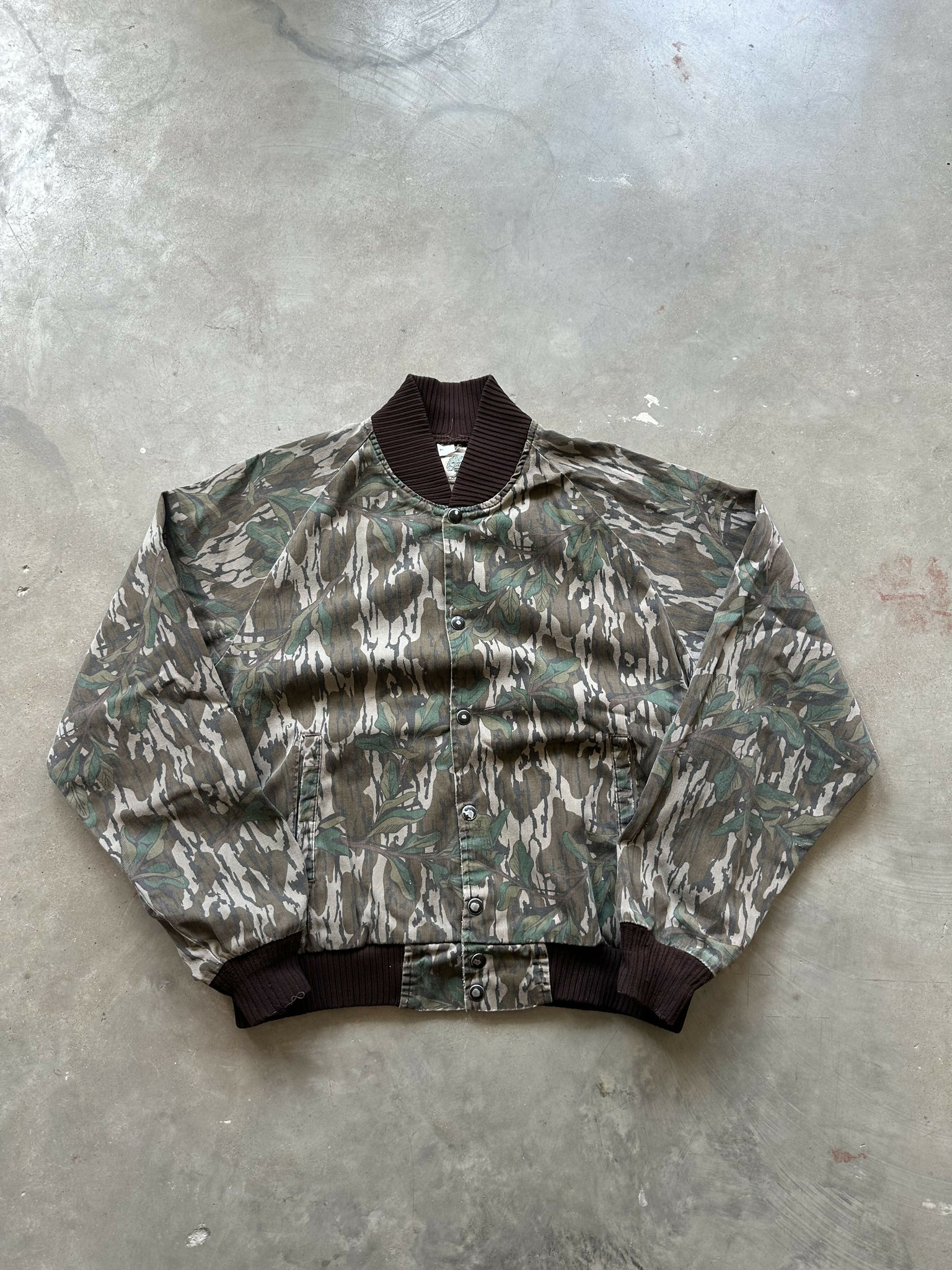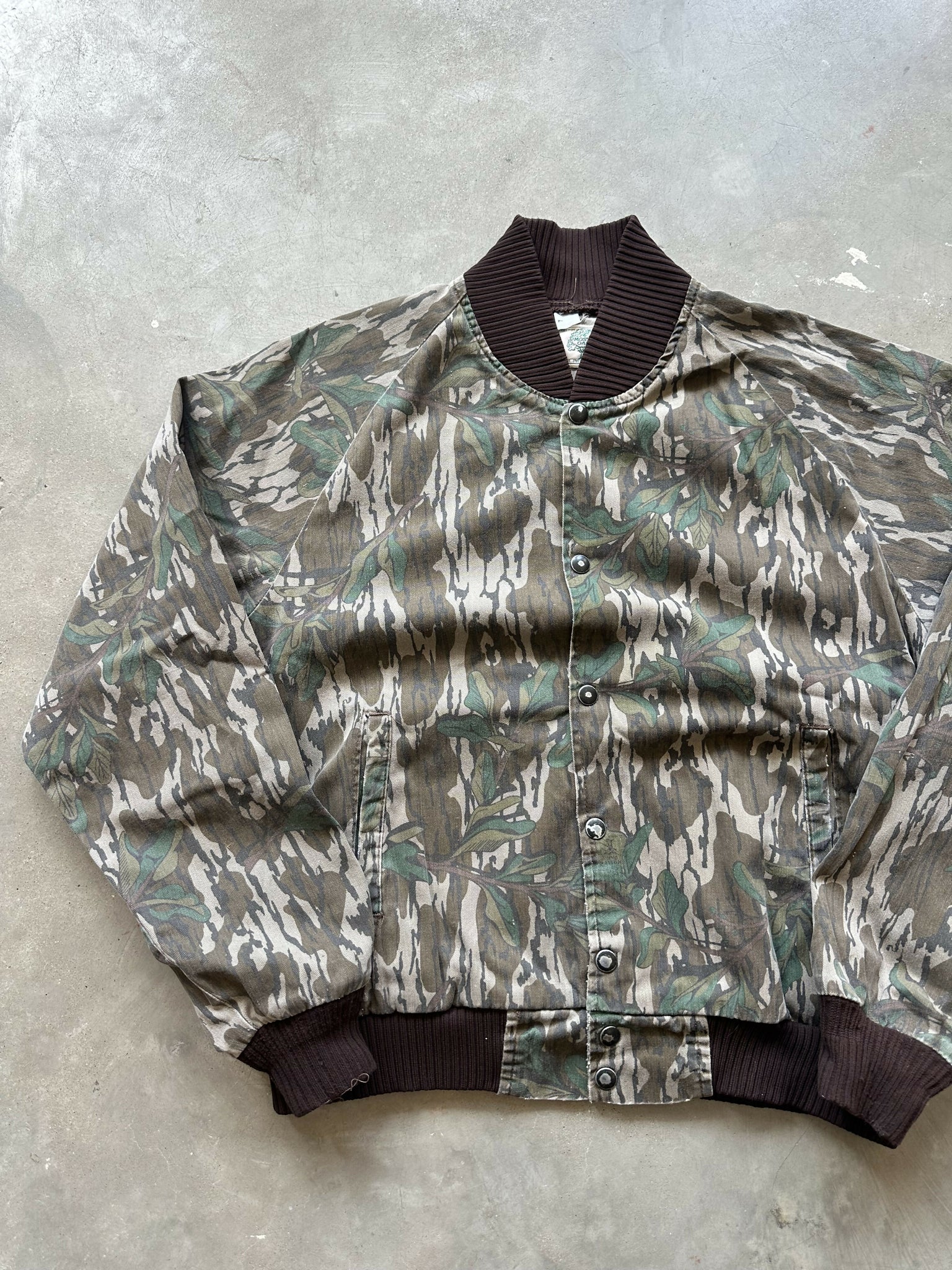Vintage Mossy Oak Greenleaf Camo Bomber Jacket (L)