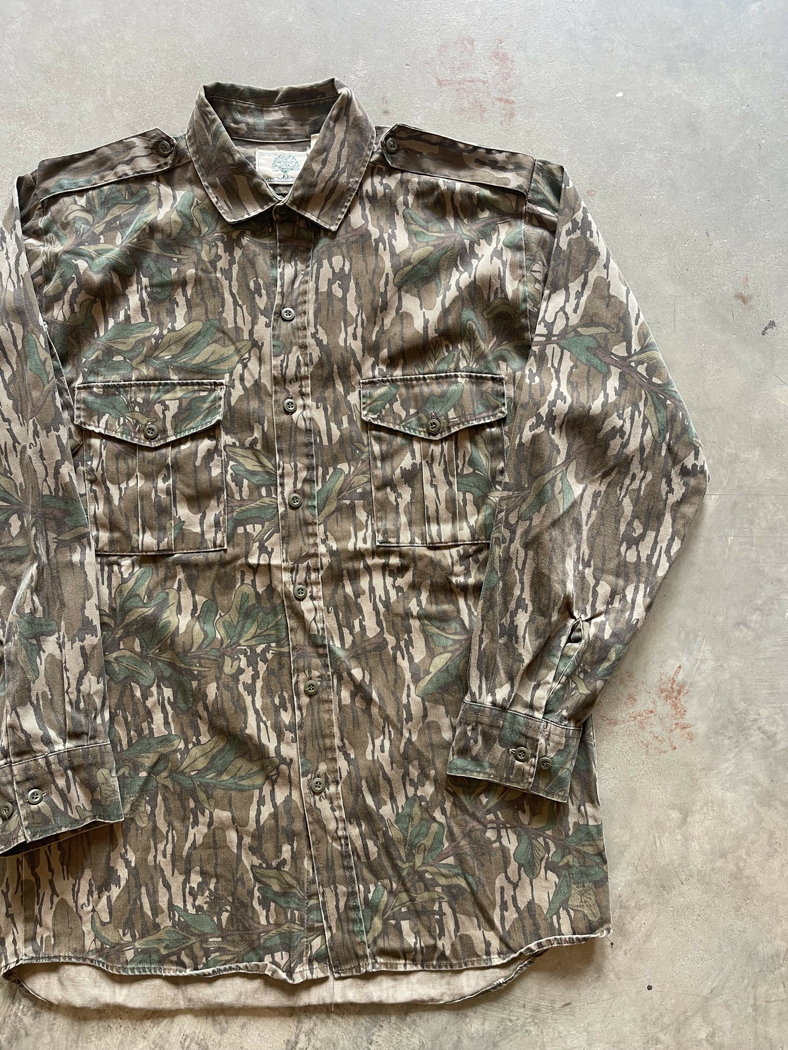 Vintage Mossy Oak Greenleaf Camo Strap Shirt (M)