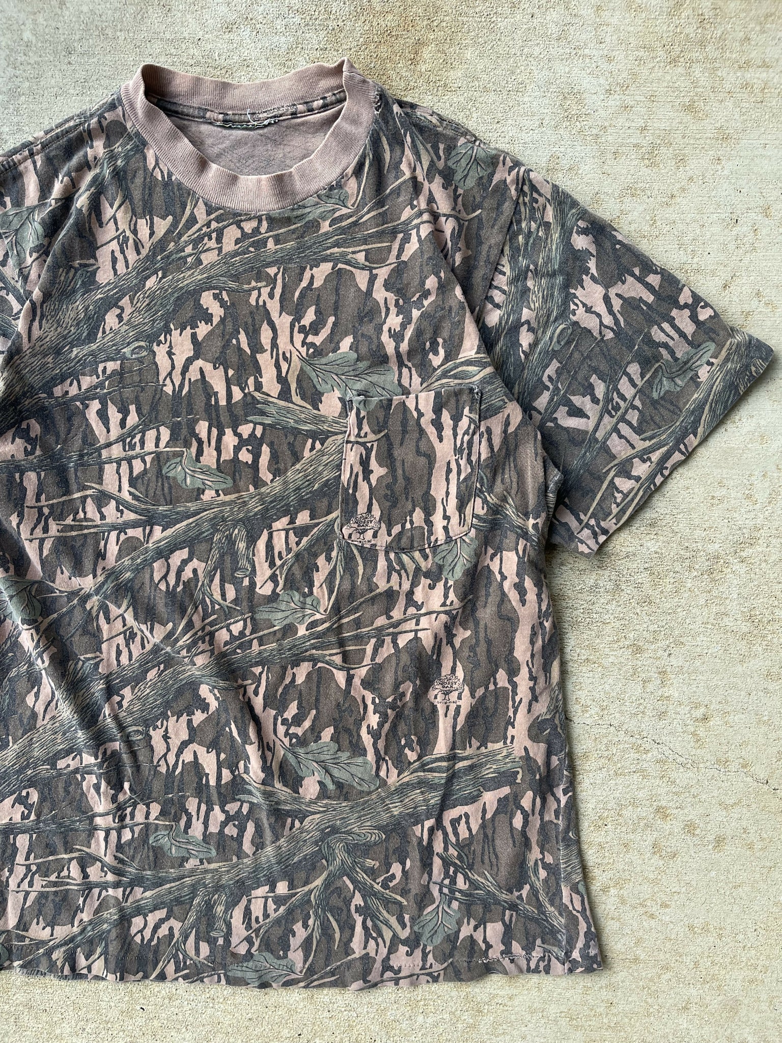 Vintage Mossy Oak Treestand Camo Distressed Pocket T-Shirt (M)