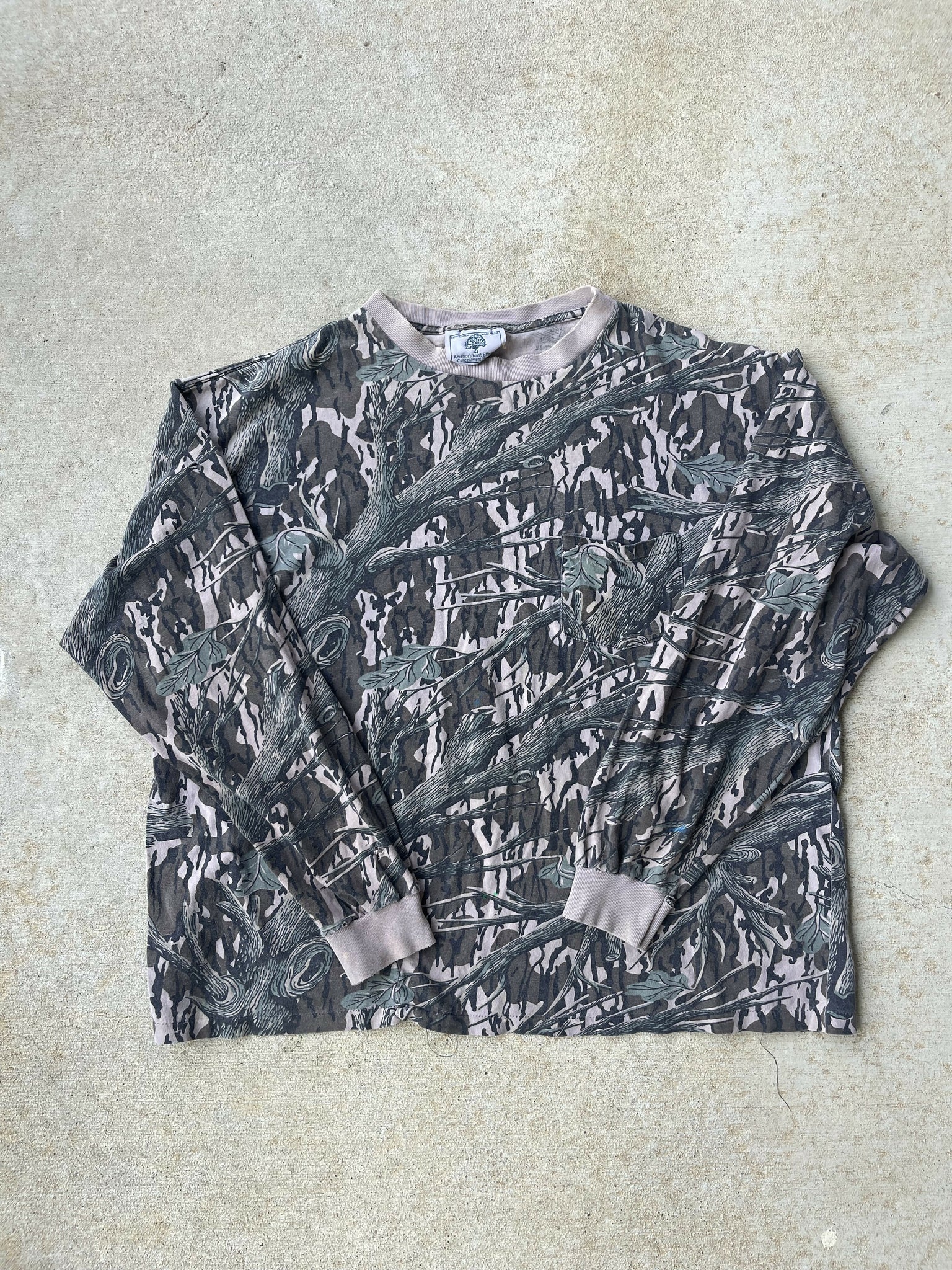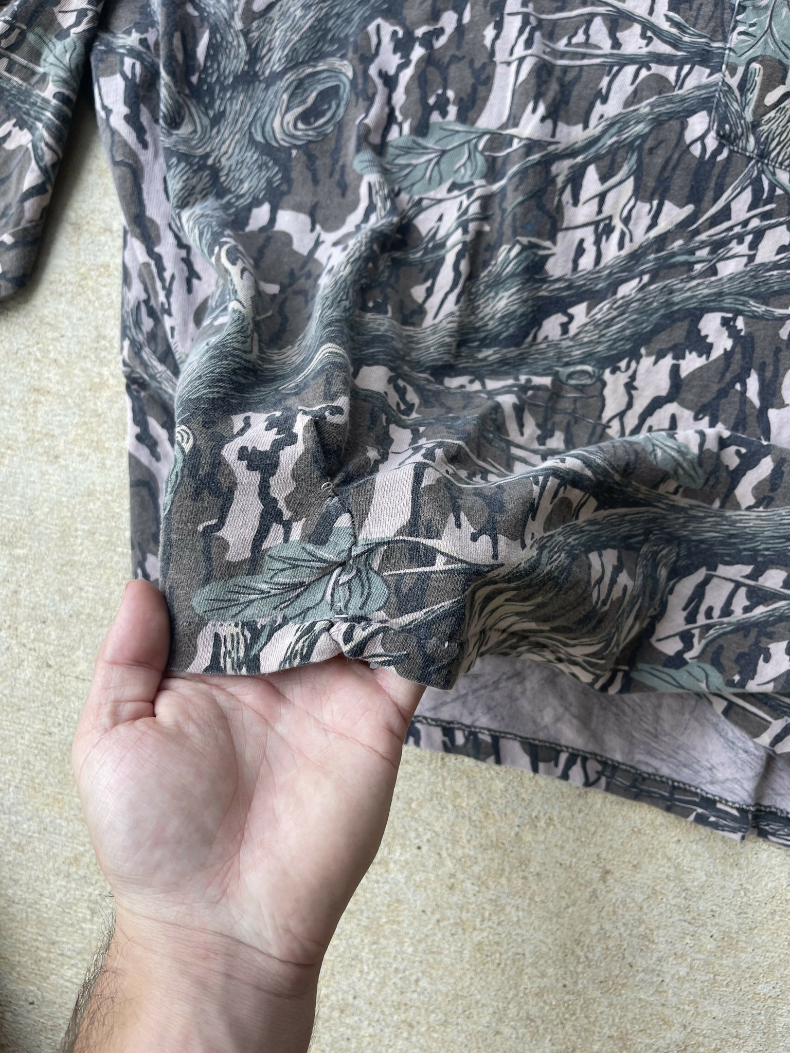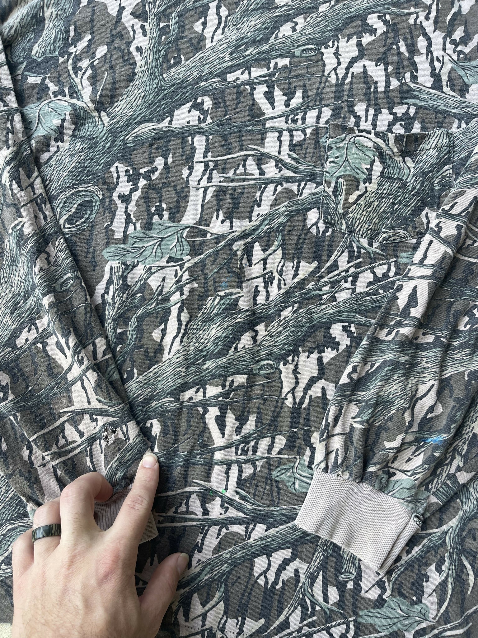 Vintage Thrashed Mossy Oak Treestand Camo Long Sleeve Shirt (2XL)