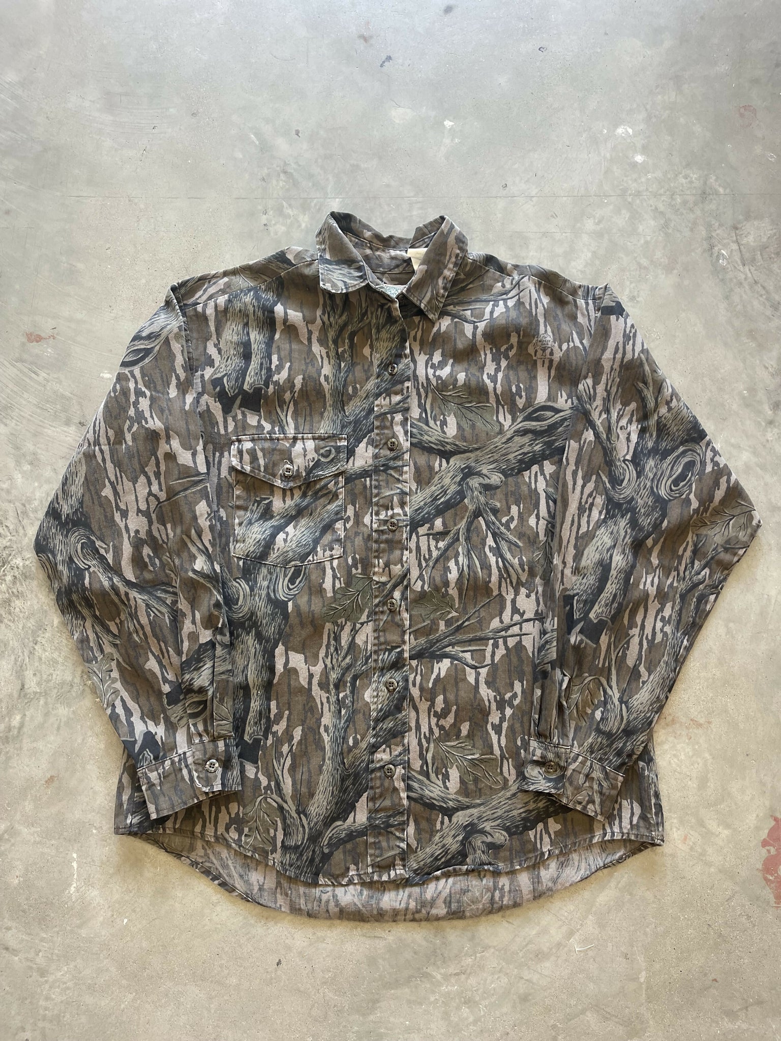 Vintage Women’s Mossy Oak Treestand Camo Button-Up Shirt (M/L)