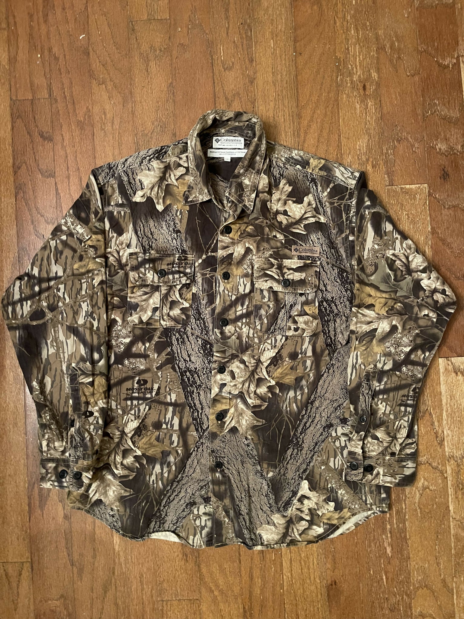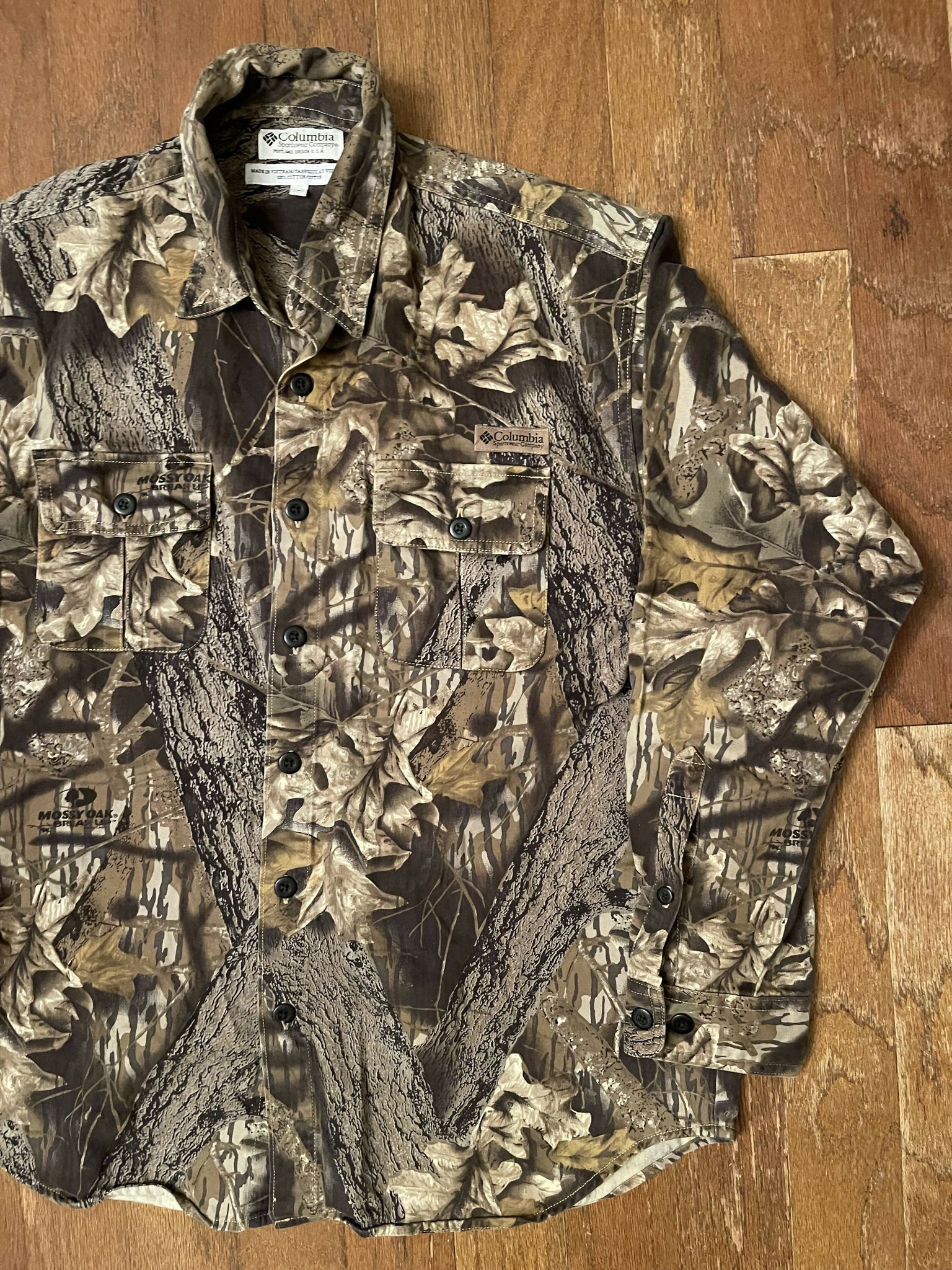Vintage Columbia Mossy Oak Breakup Camo Thick Button Up Shirt (M)