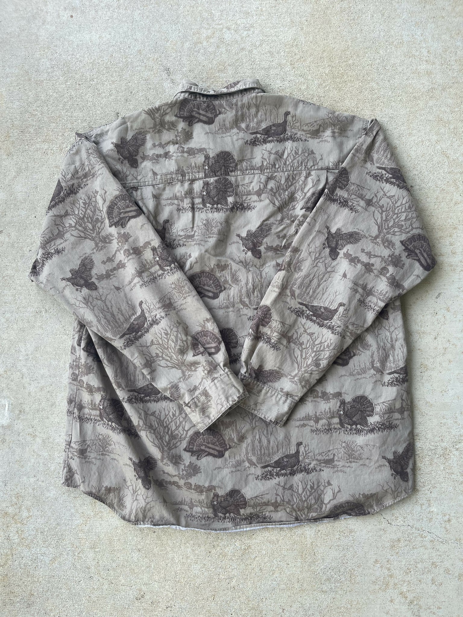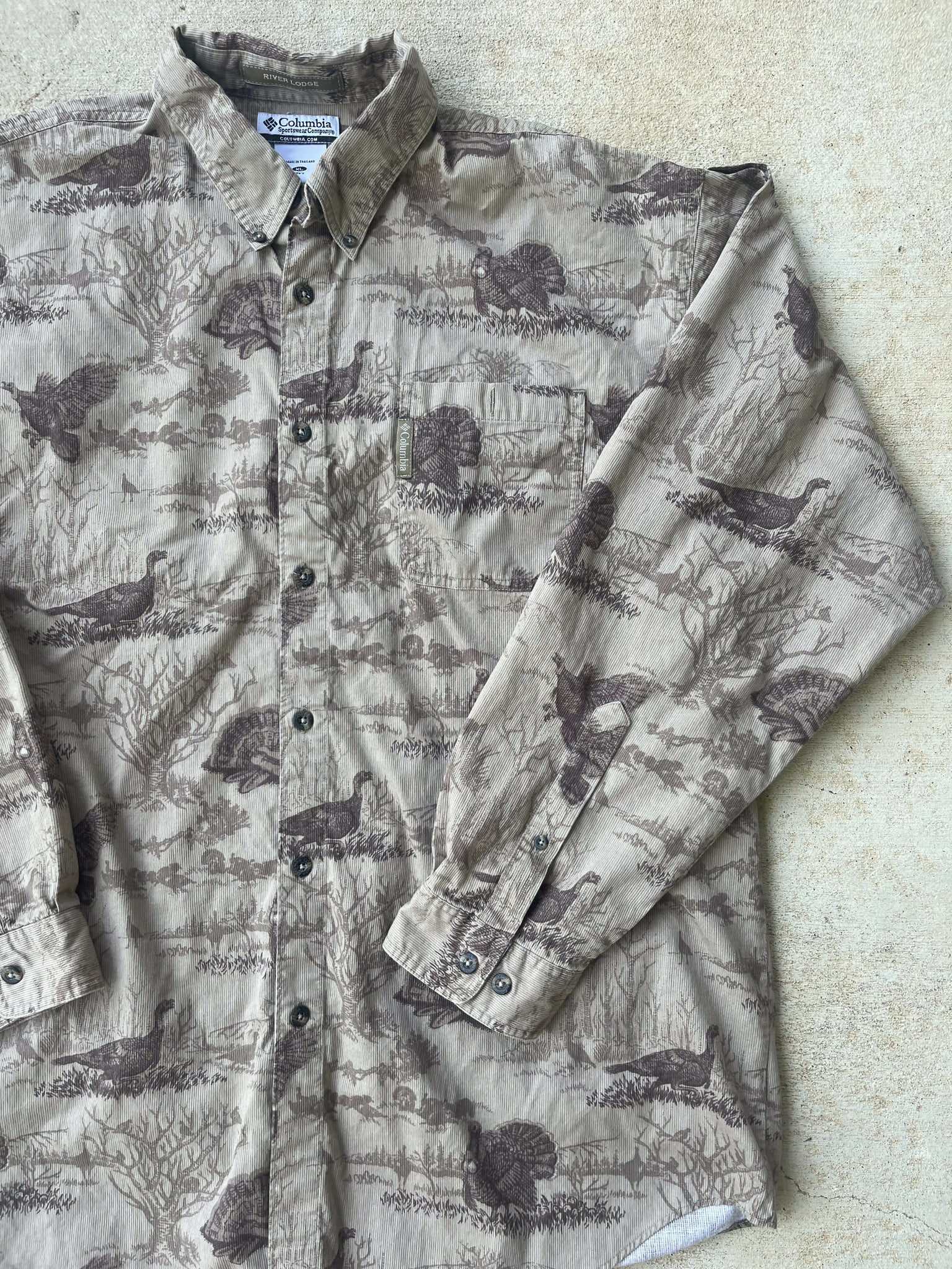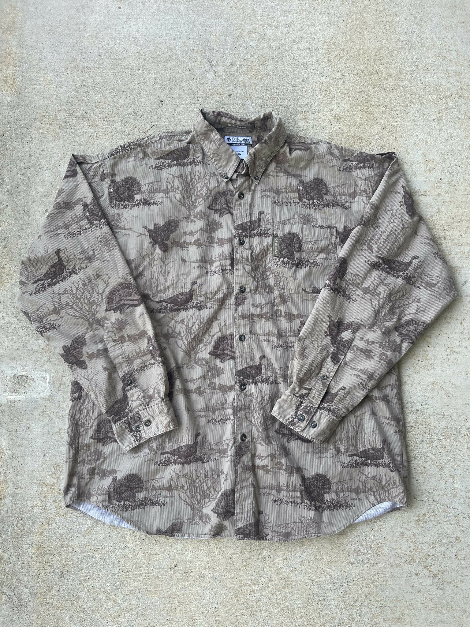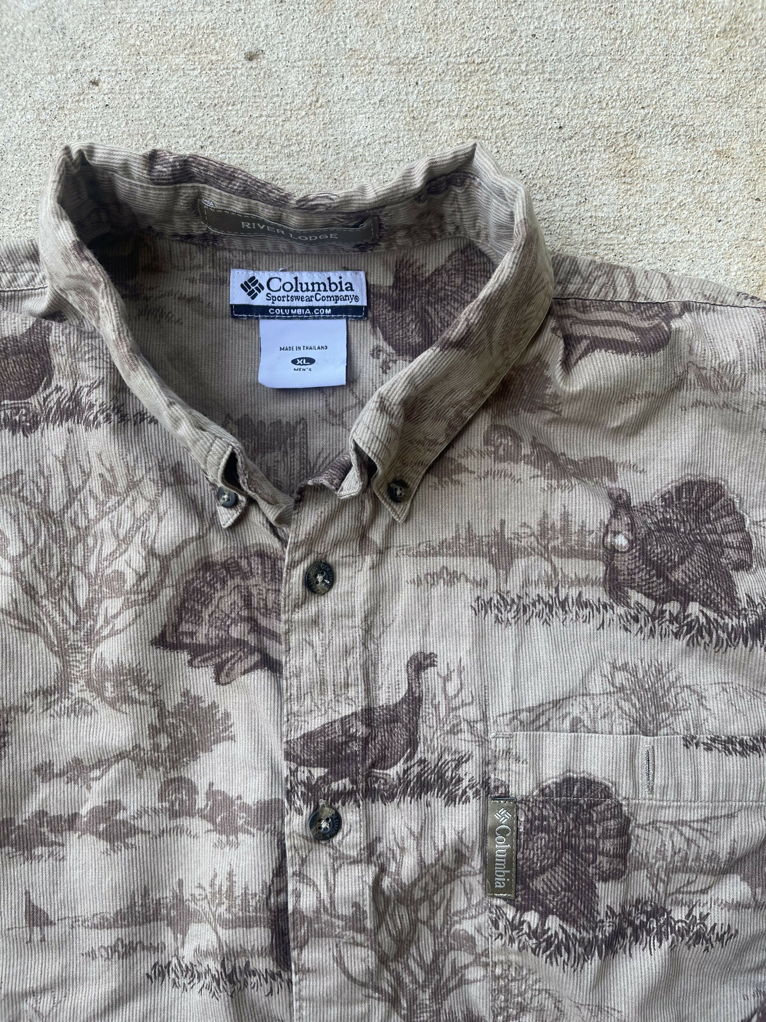 Vintage Columbia Turkey Print Button-Up Shirt (XL)