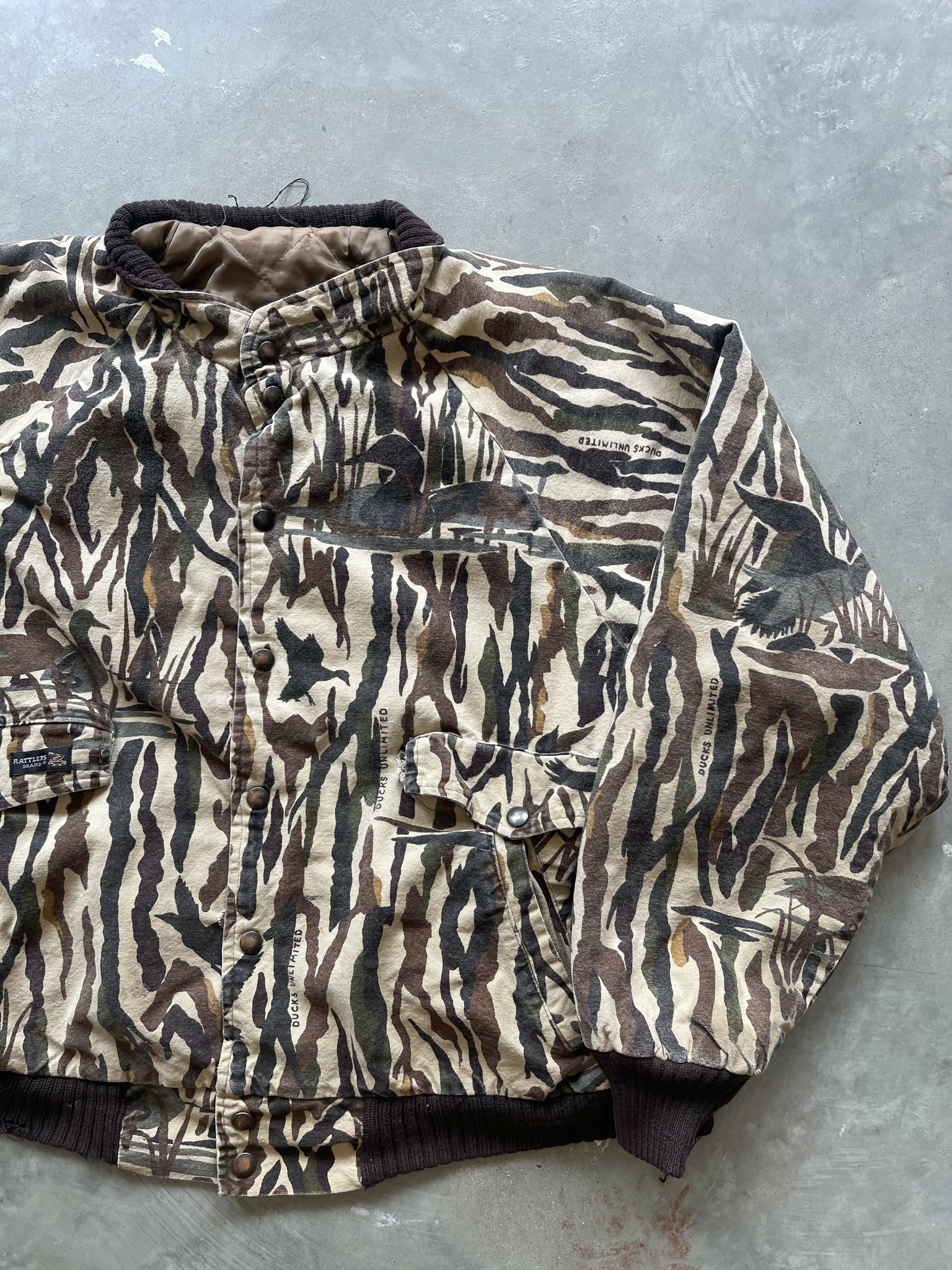 Vintage Distressed Ducks Unlimited Camo Insulated Bomber Jacket (L)