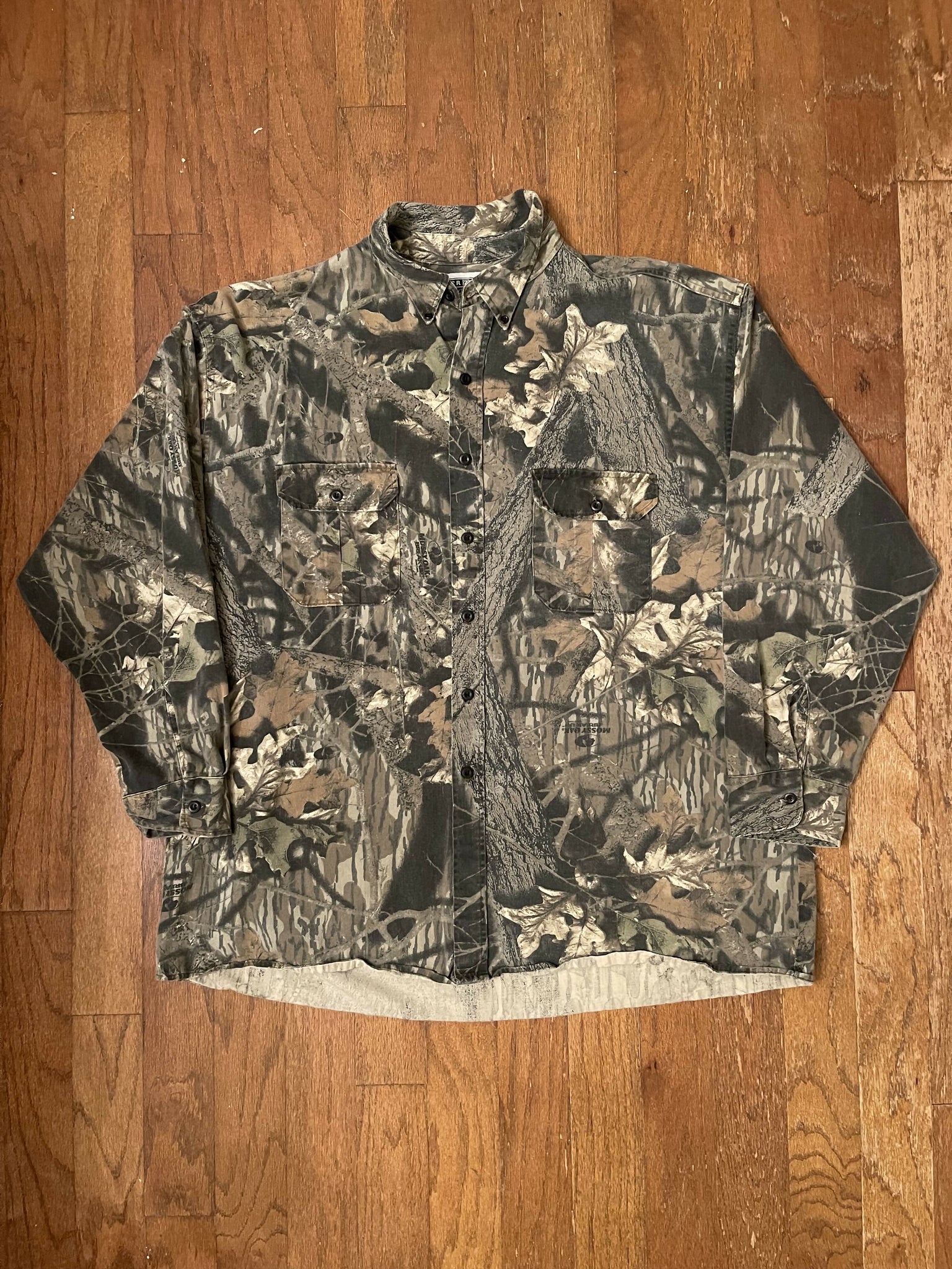 Vintage Jerzees Mossy Oak Breakup Camo Button Up Shirt (2XL)