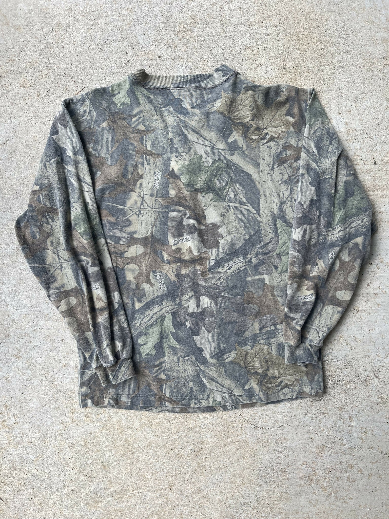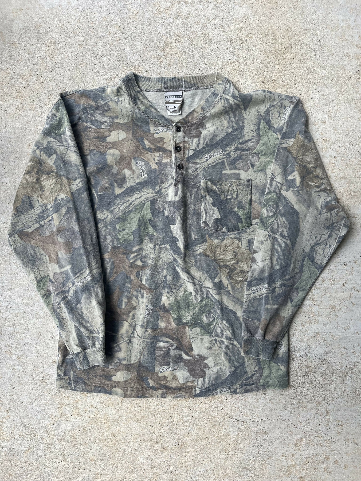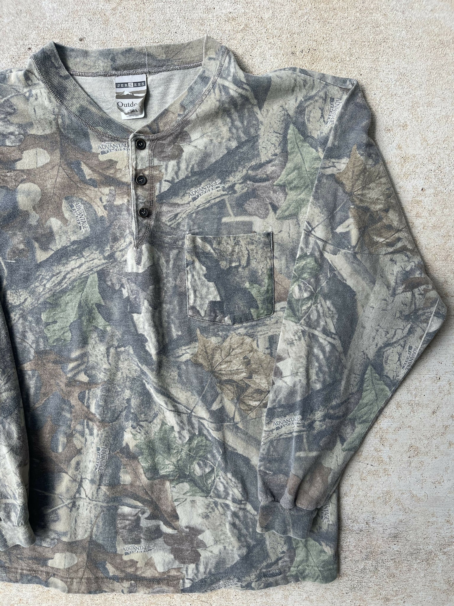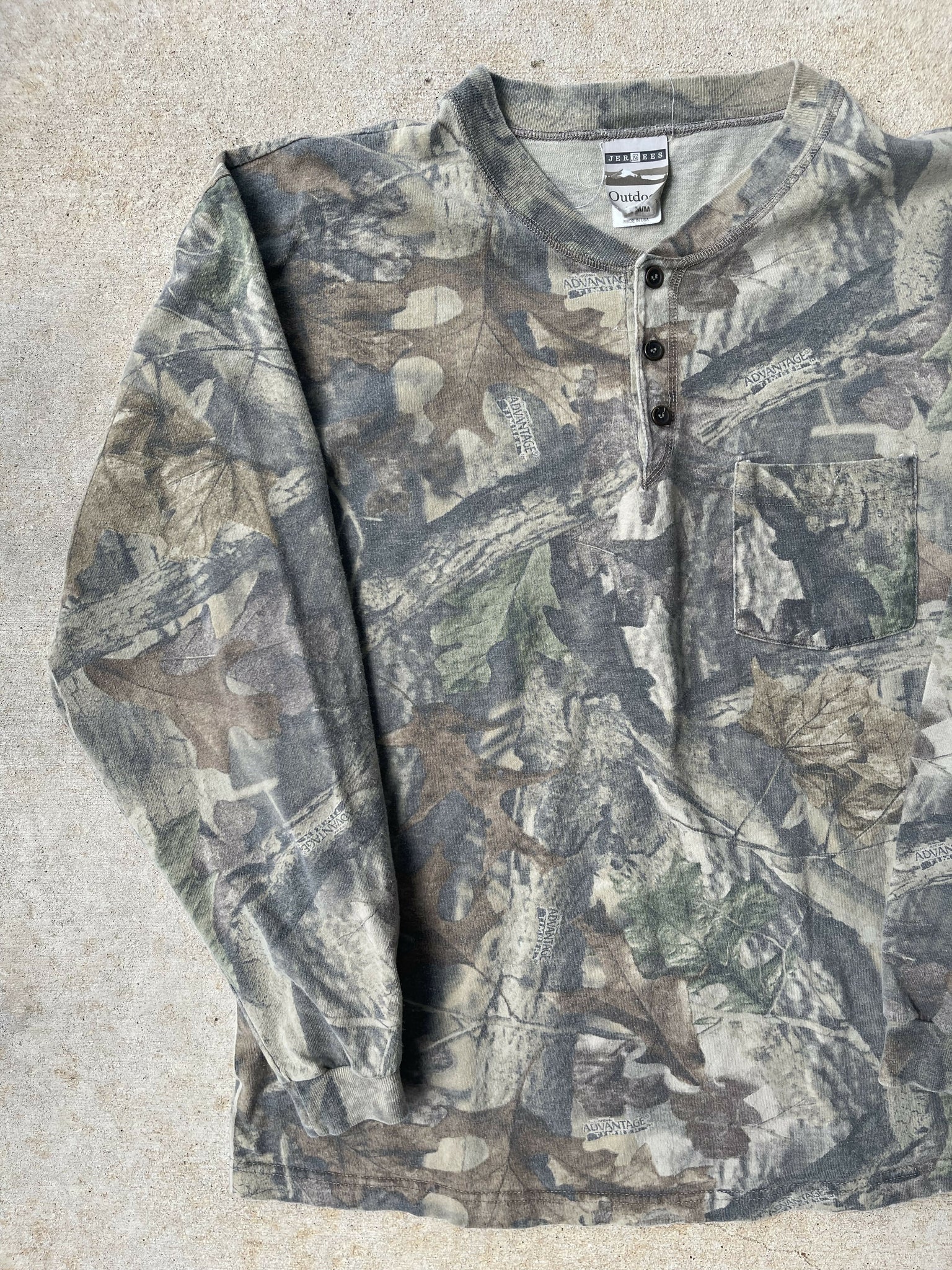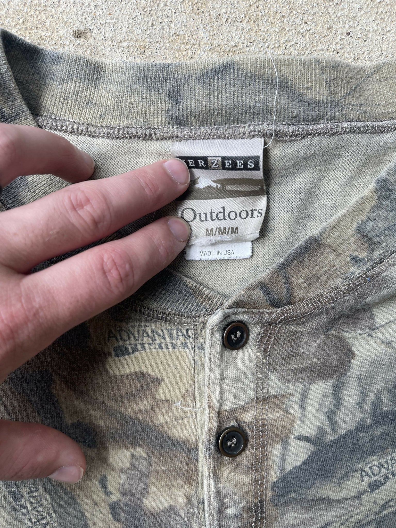 Vintage Jerzees Realtree Advantage Timber Camo Henley Shirt (M)