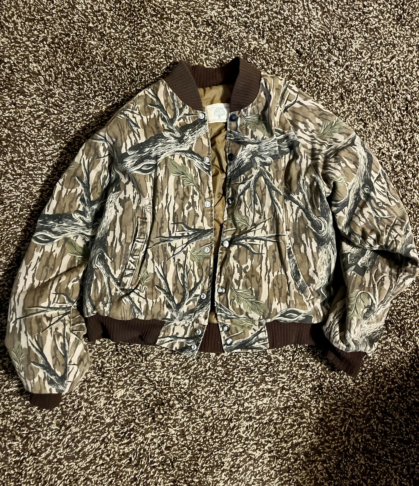 Vintage Mossy Oak Companions Tree Stand Bomber Jacket (M)