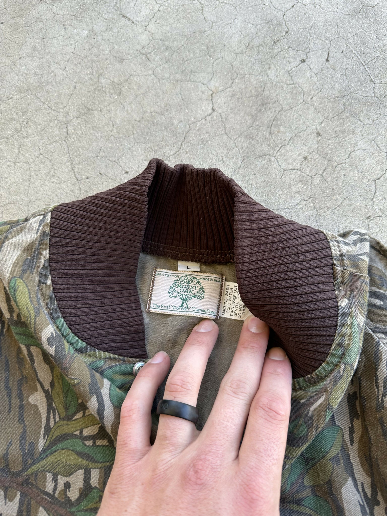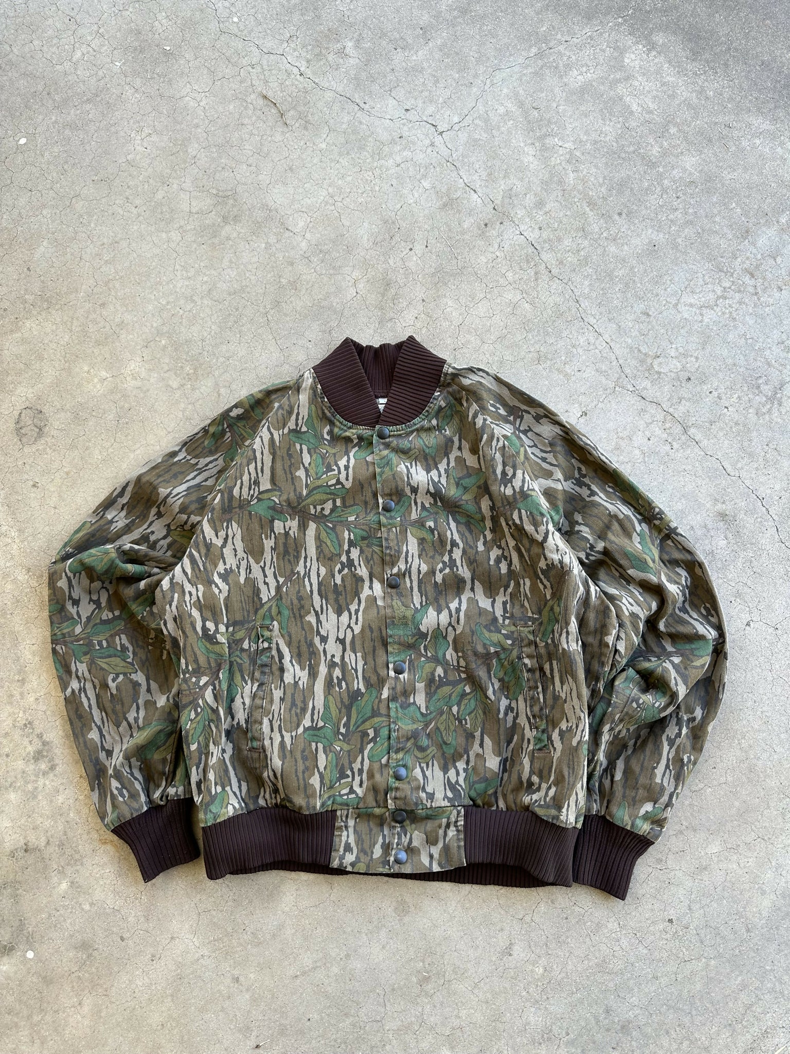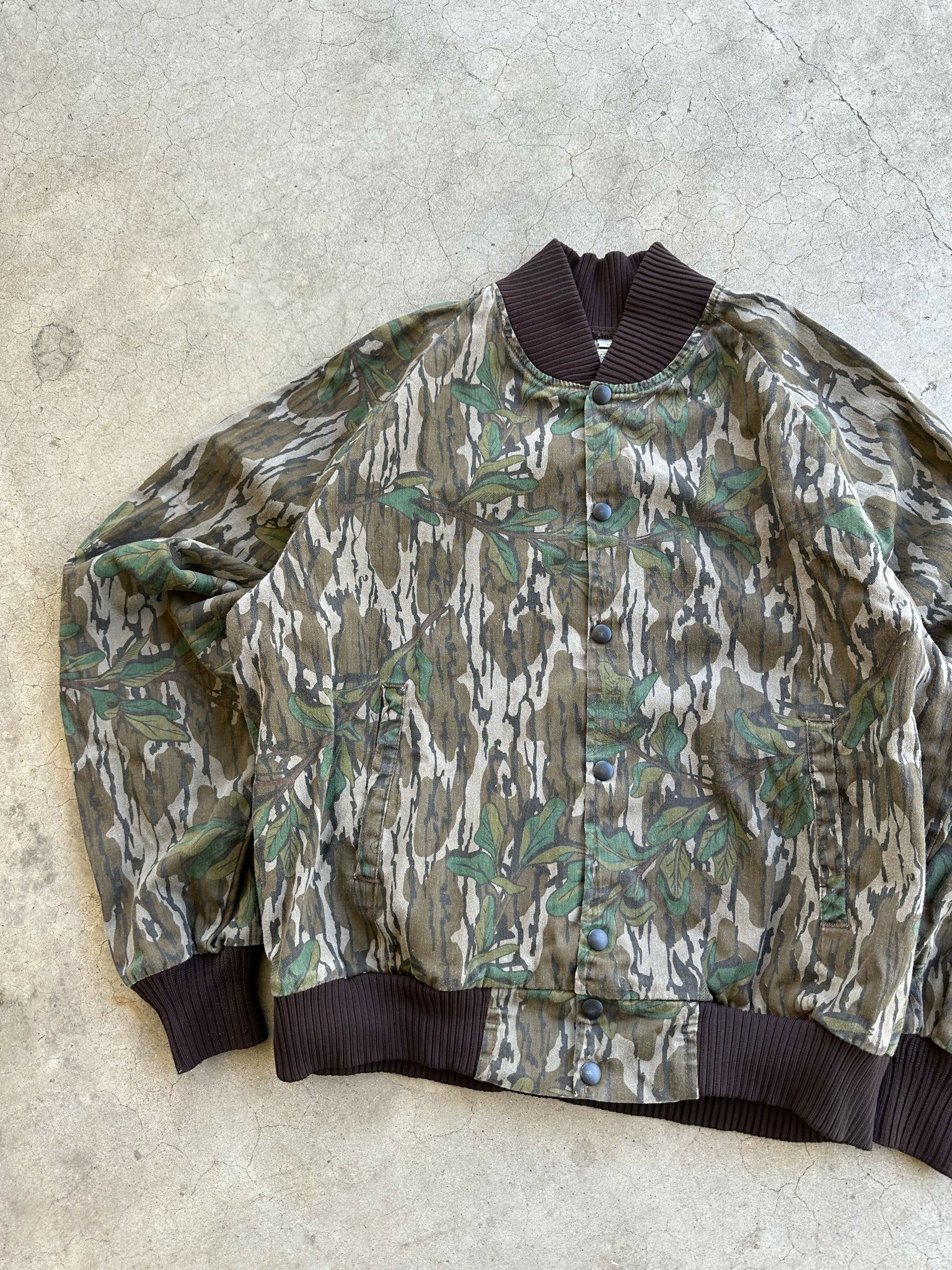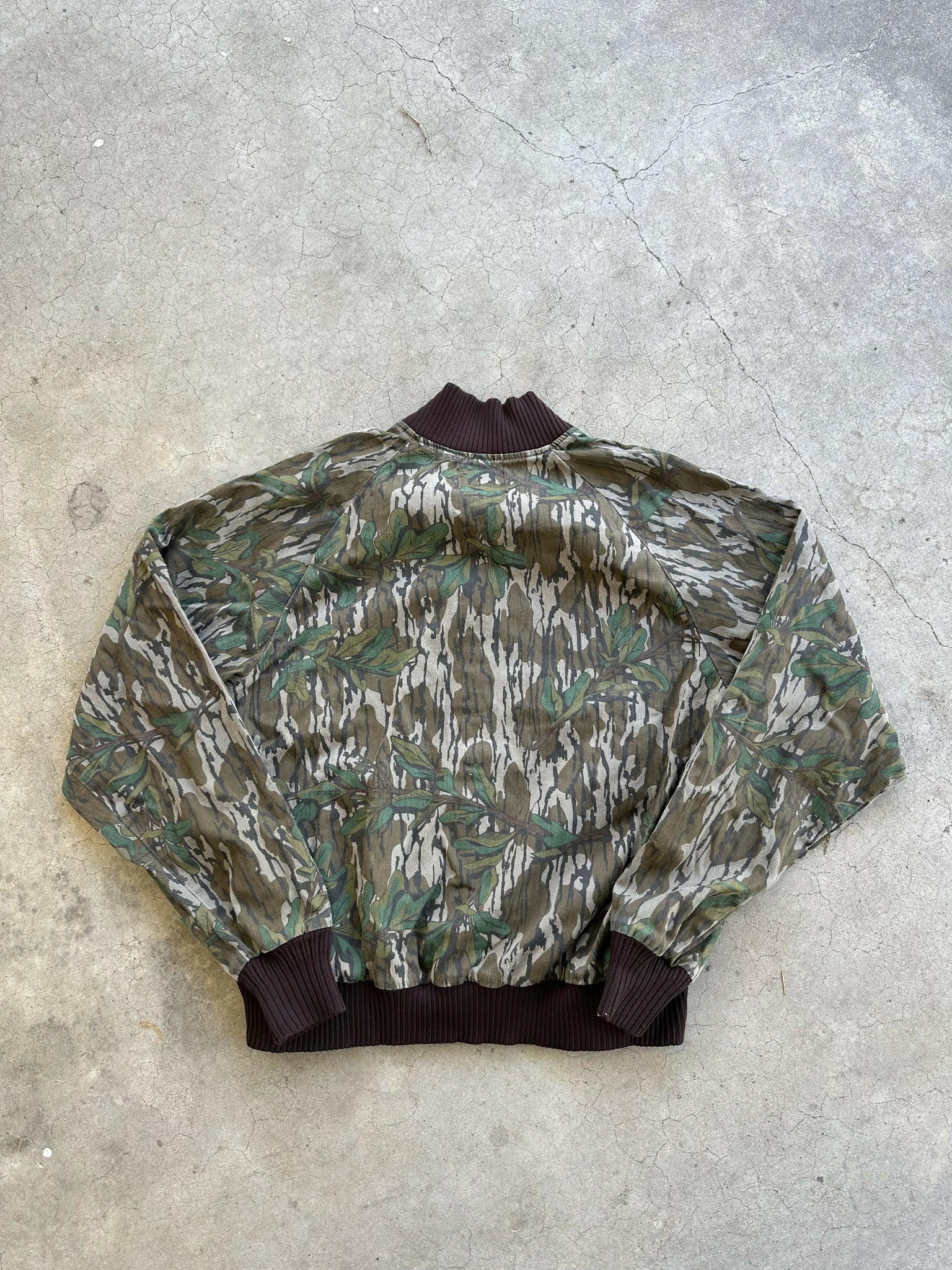 Vintage Mossy Oak Green Leaf Camo Bomber Jacket (L)