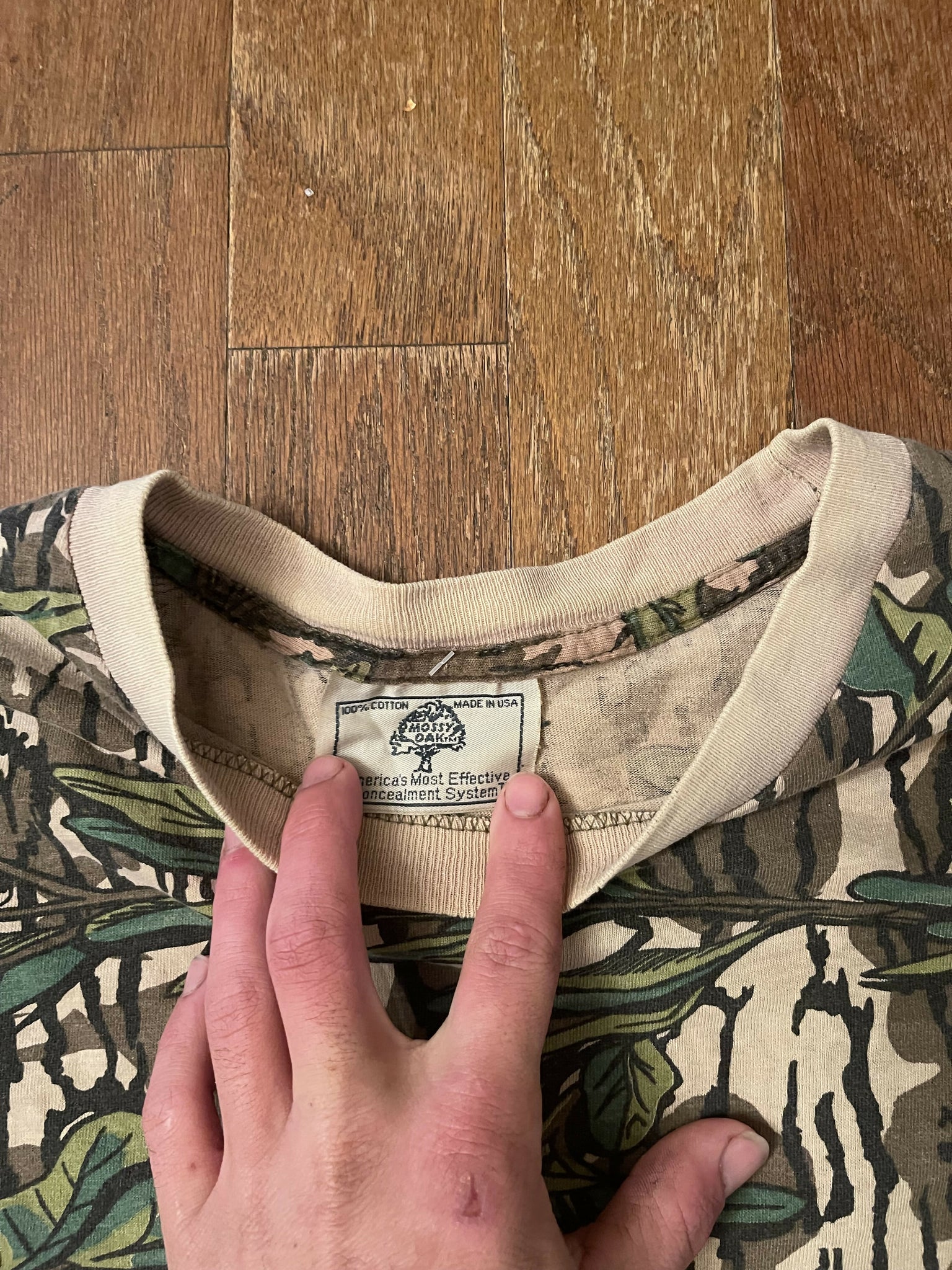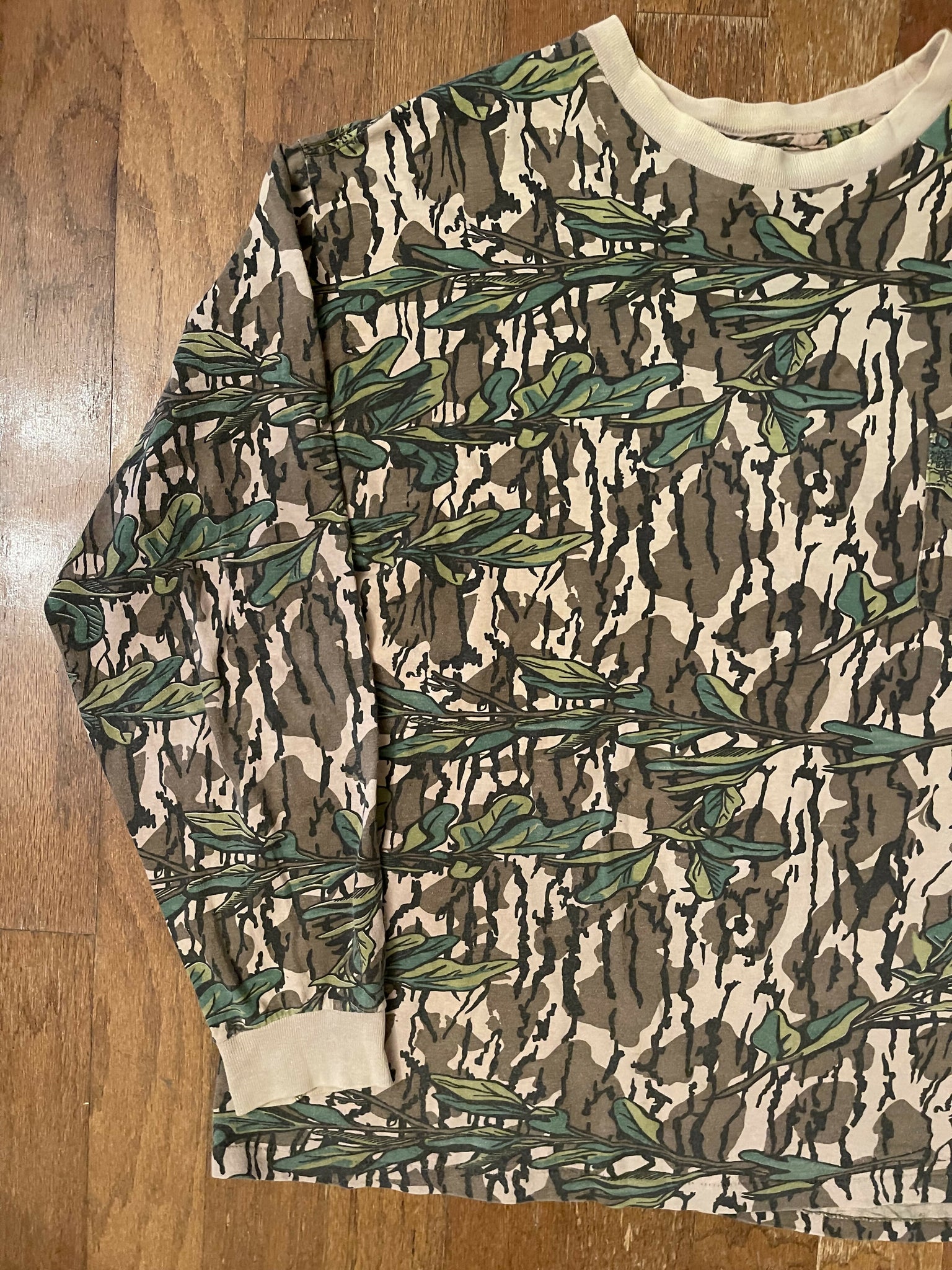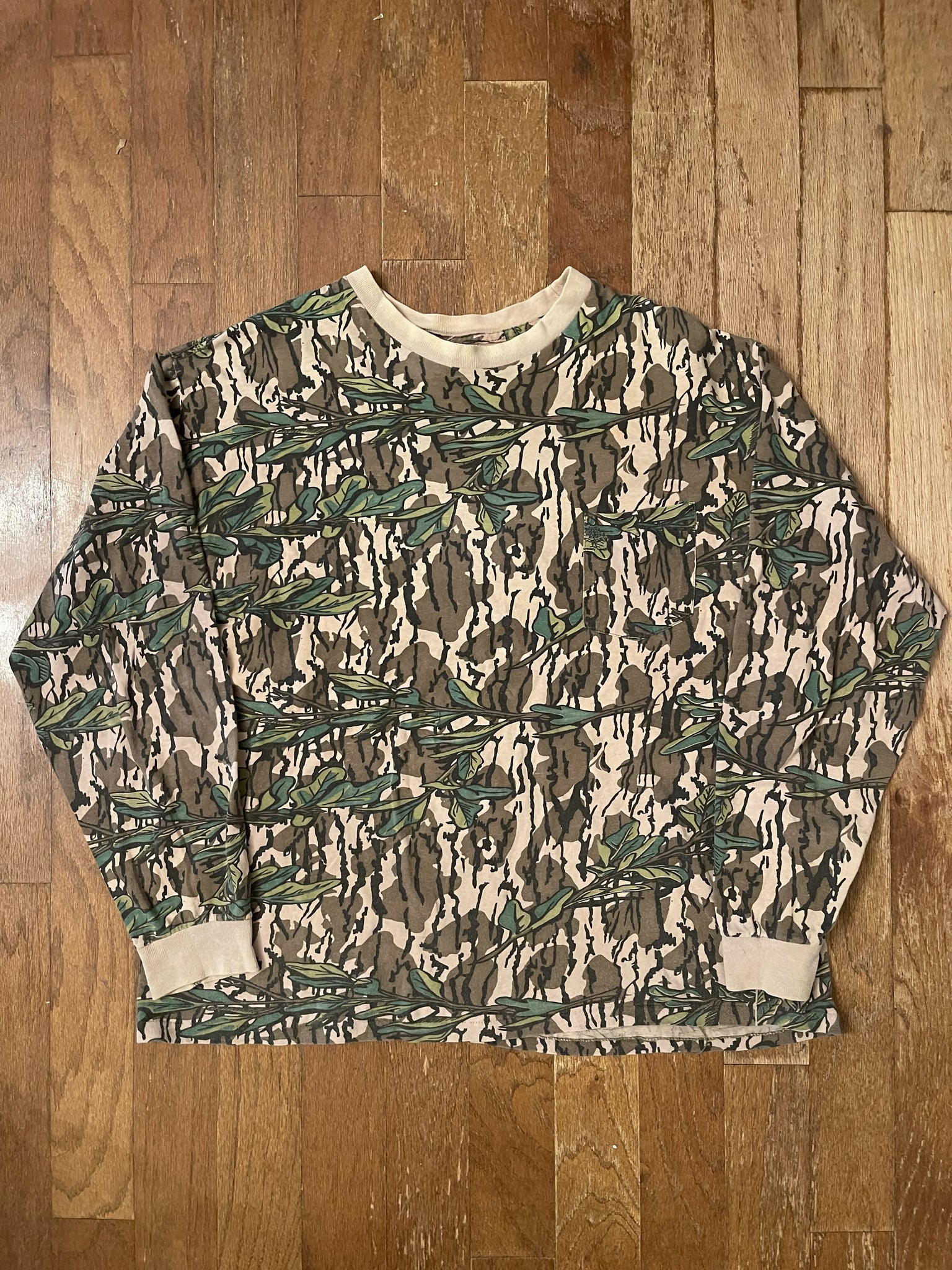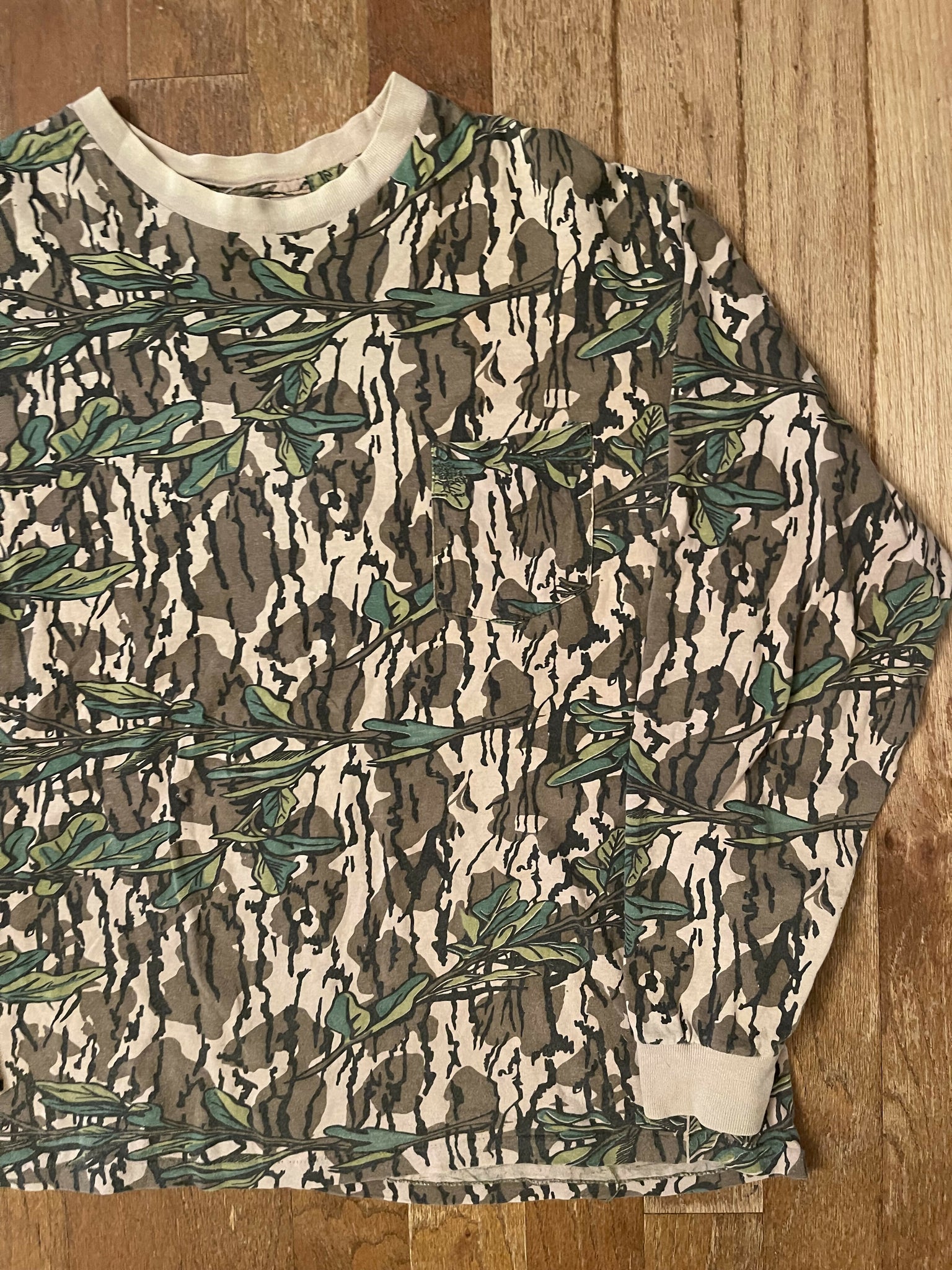 Vintage Mossy Oak Green Leaf Camo Long Sleeve Shirt (L/XL)