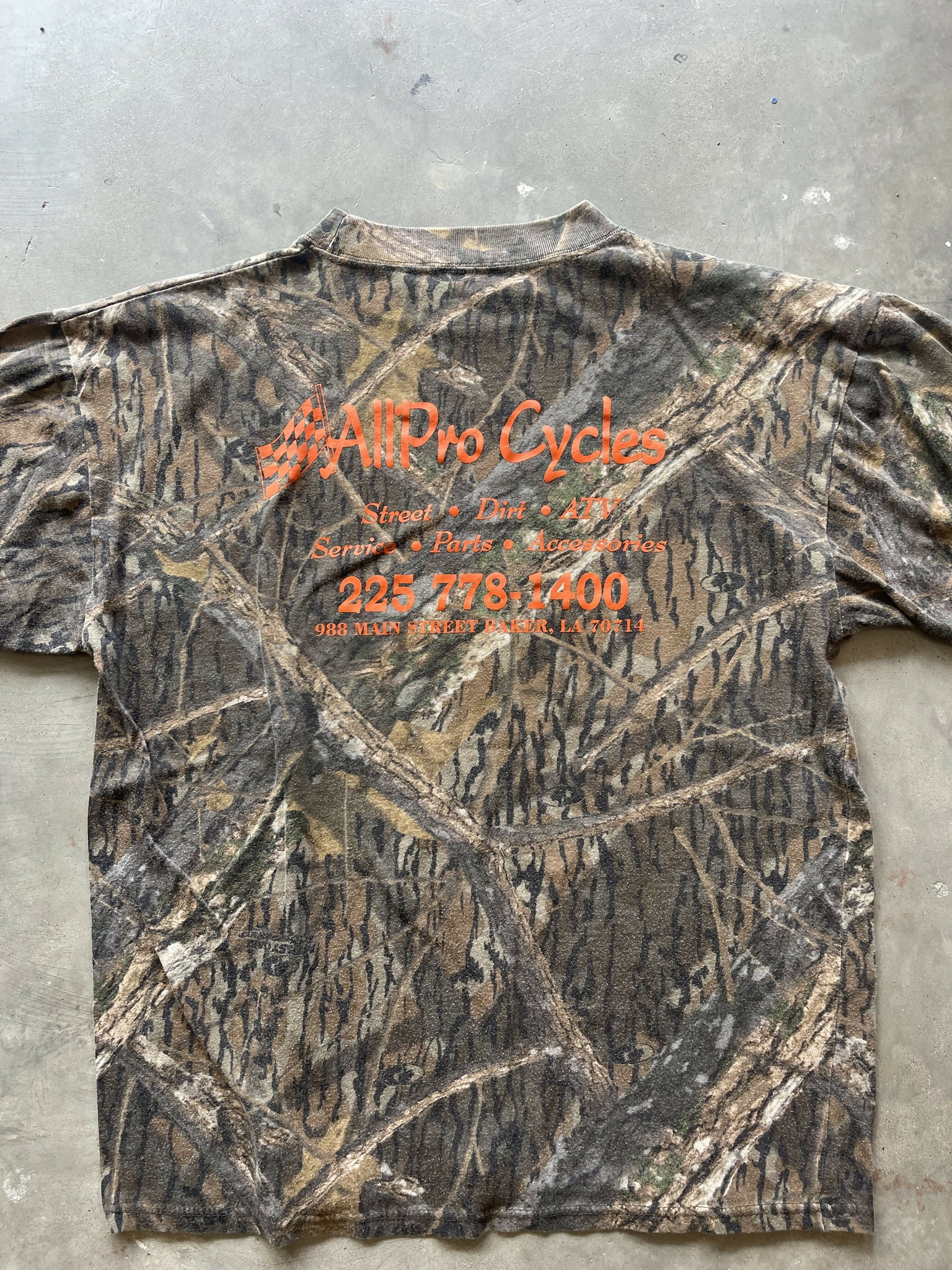 Vintage Mossy Oak Shadow Branch Camo All Pro Cycles T-Shirt (M)