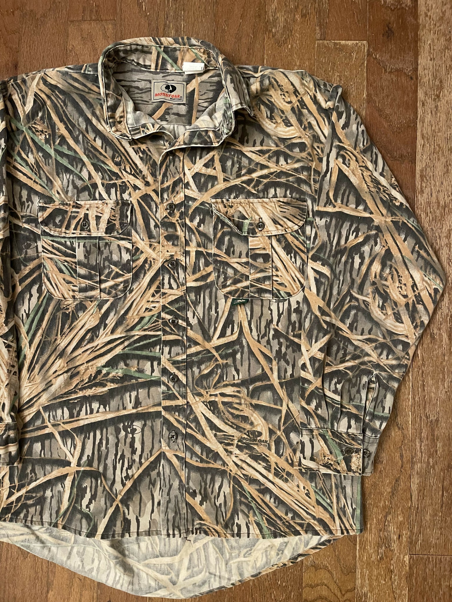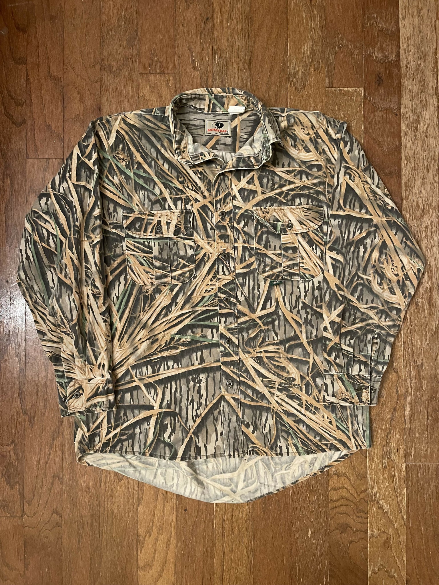 Vintage Mossy Oak Shadow Grass Camo Chamois Shirt (L)