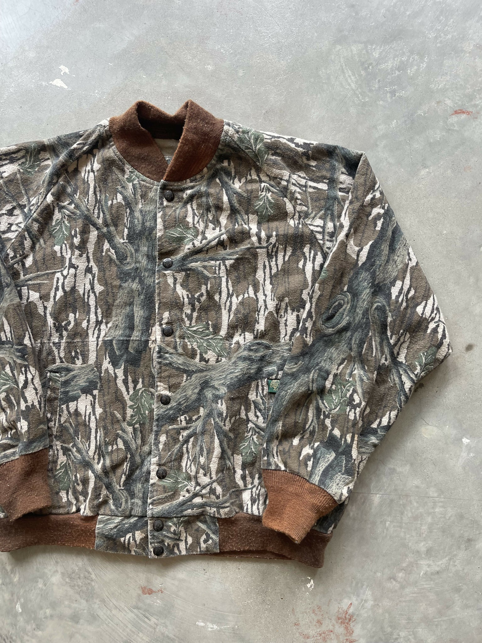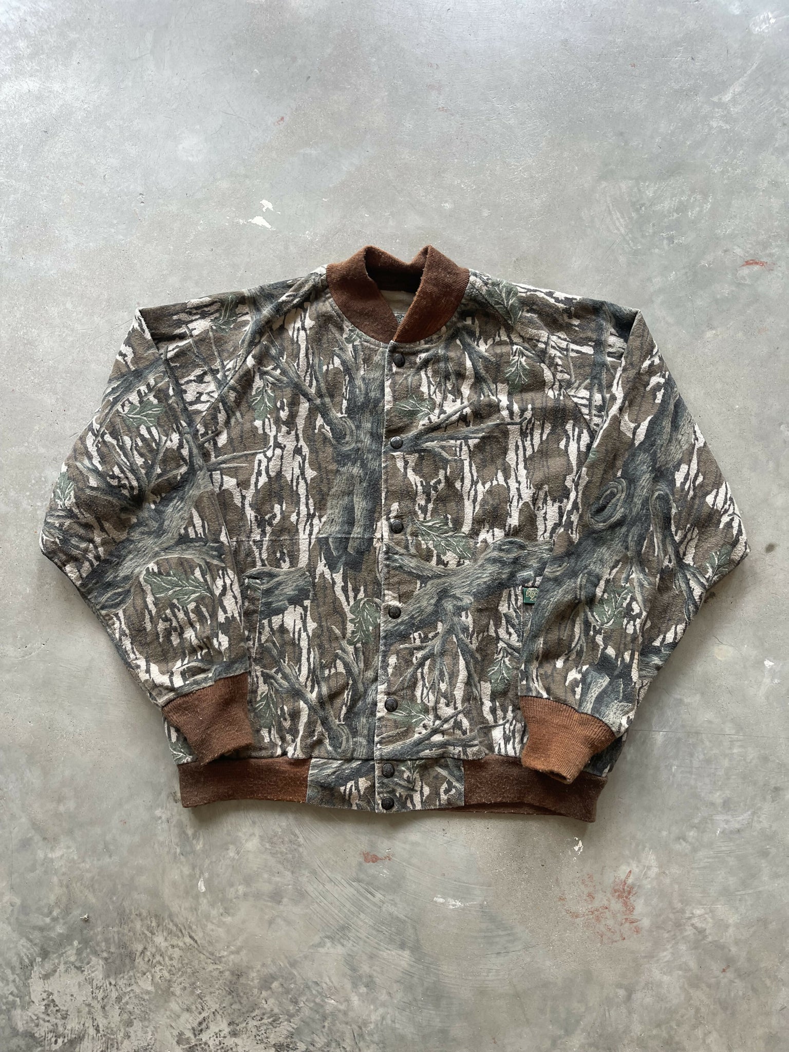 Vintage Mossy Oak Treestand Camo Bomber Jacket (M)