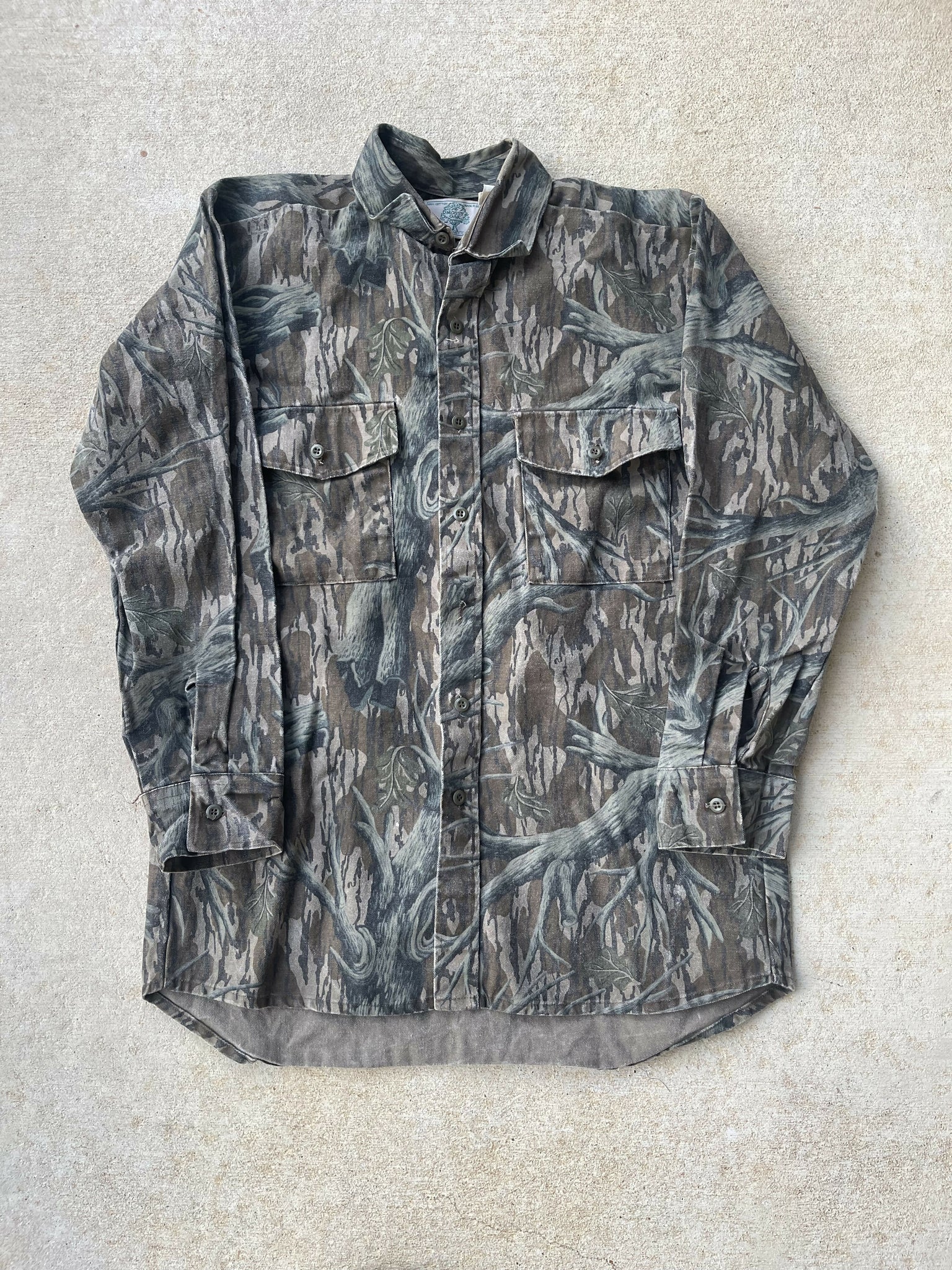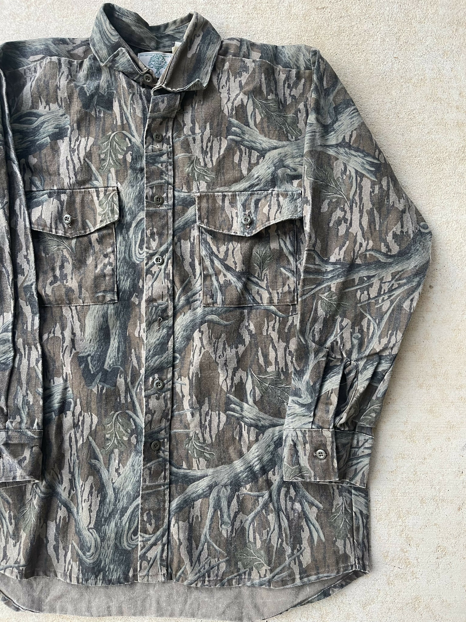 Vintage Mossy Oak Treestand Camo Canvas Button-Up Shirt (M)