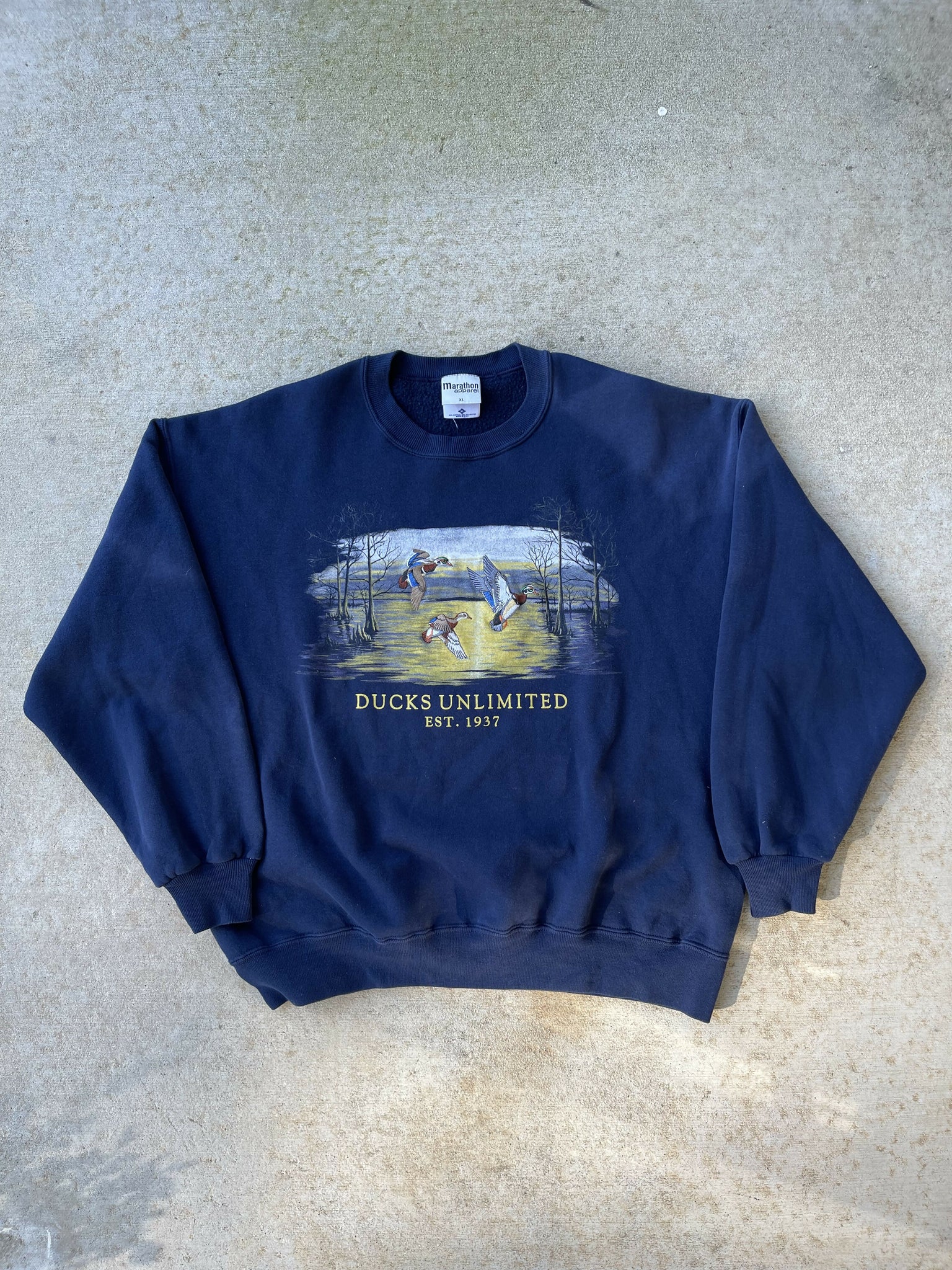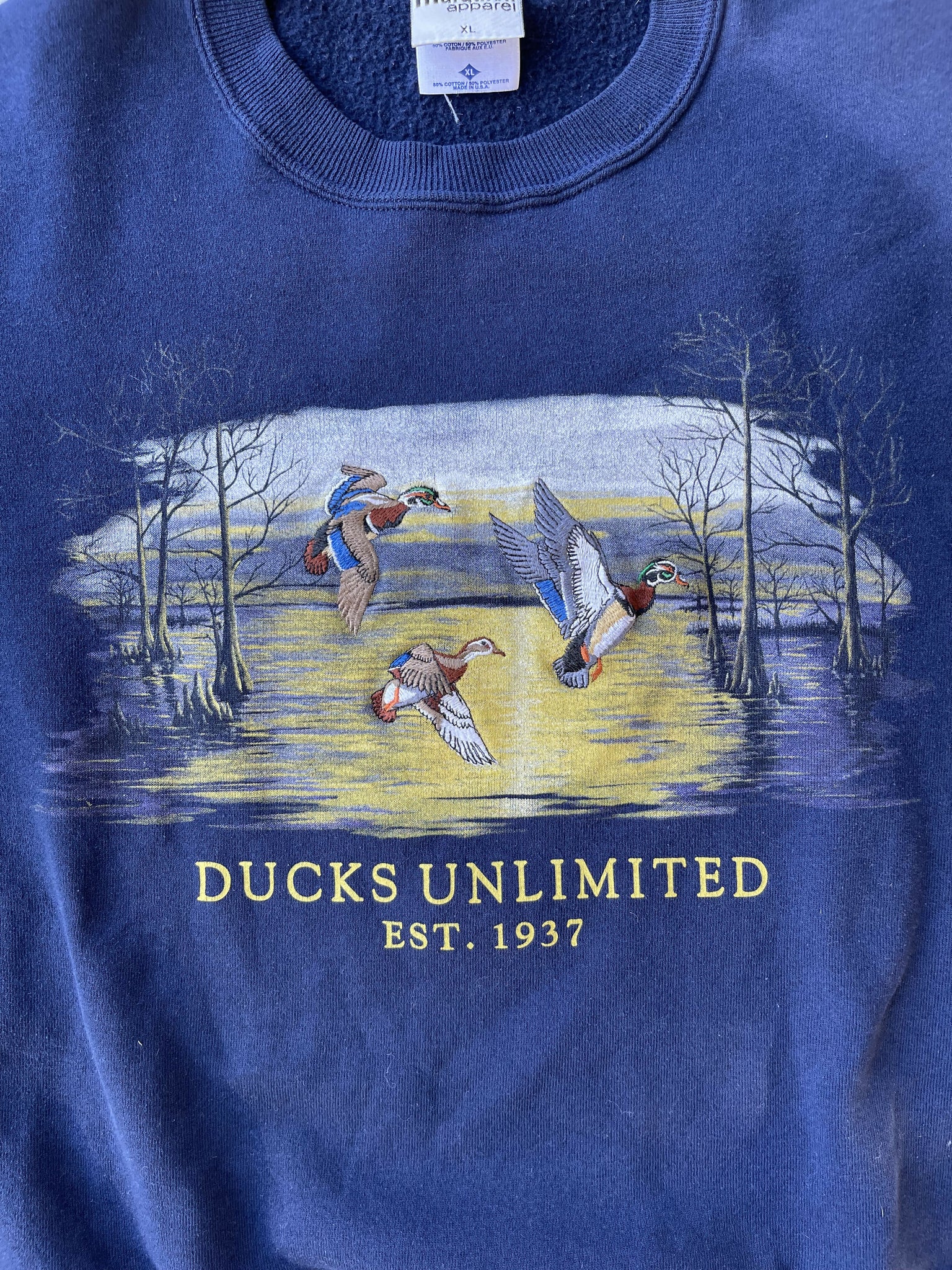 Vintage Sunfade Ducks Unlimited Wood Duck Embroidered Crewneck (XL)