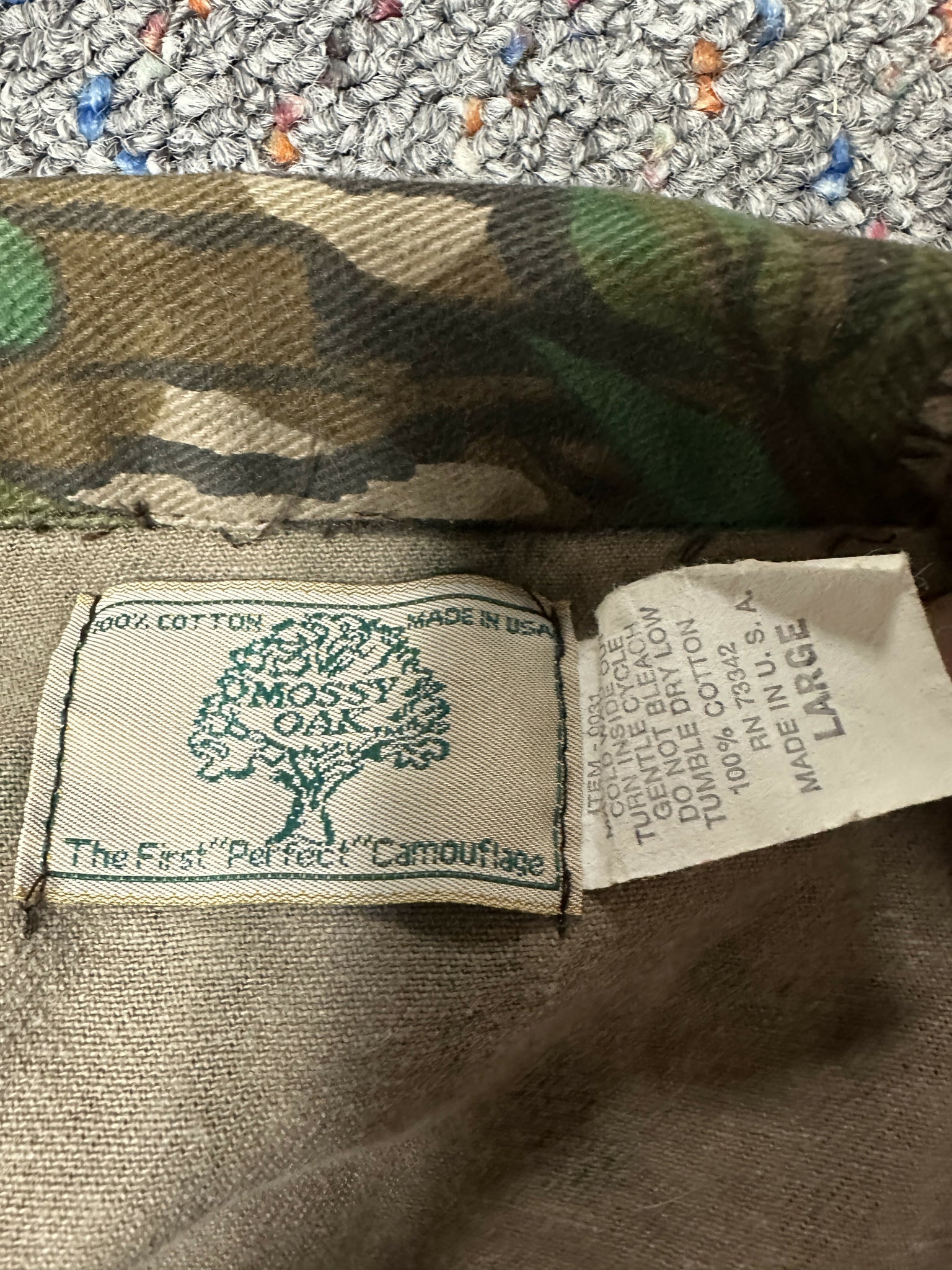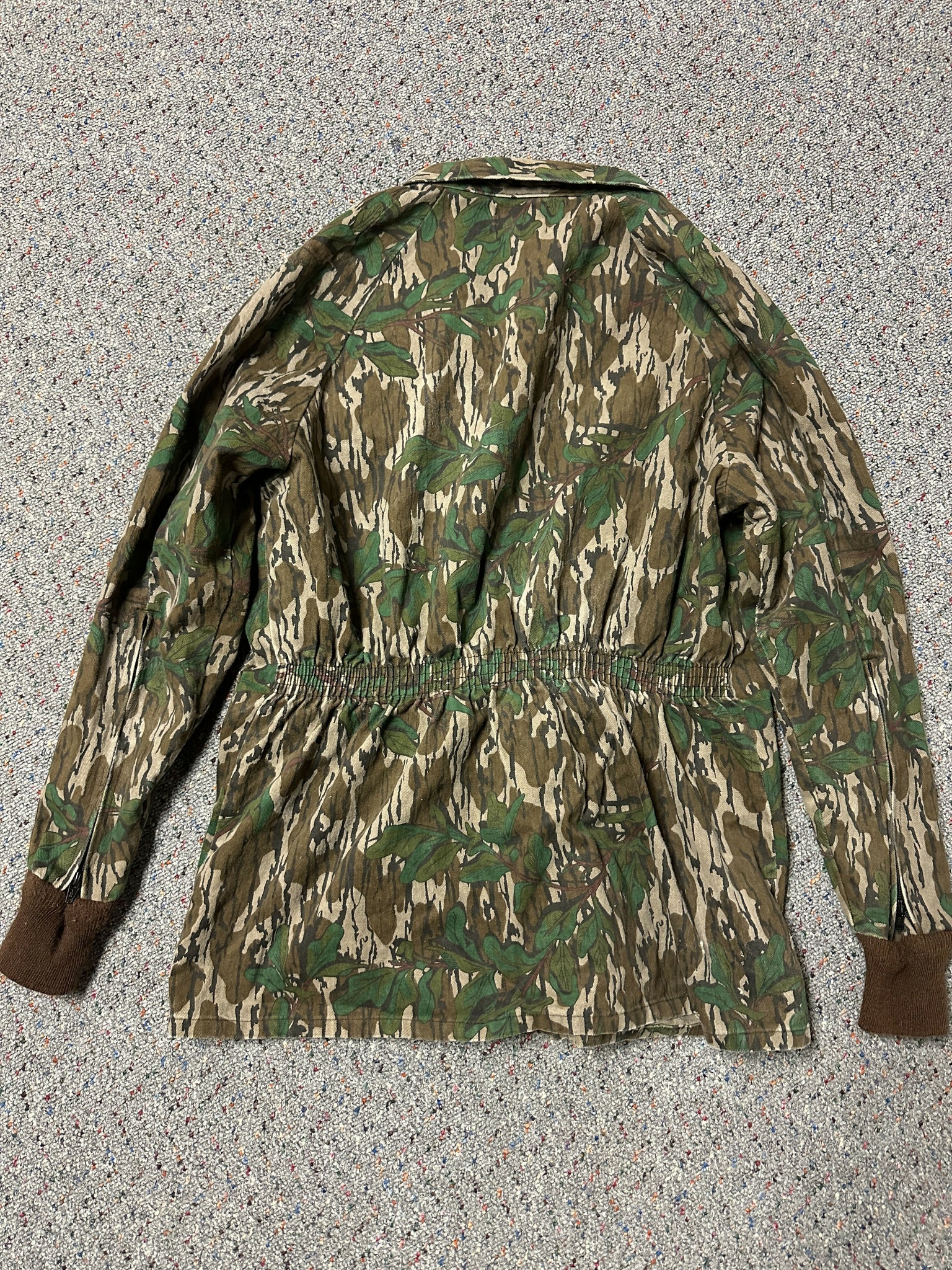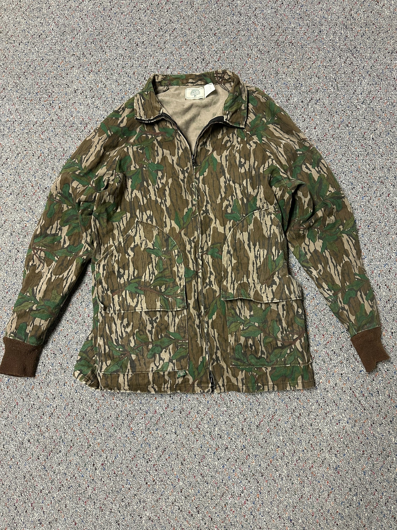 Vintage mossy oak greenleaf 4 pocket jacket. Size large. Zipper front and zipper on sleeves to expand. Excellent condition, not faded. Unlined, cotton and Made in USA. Thanks